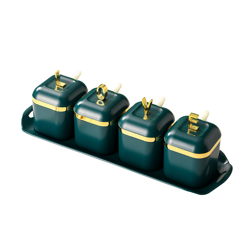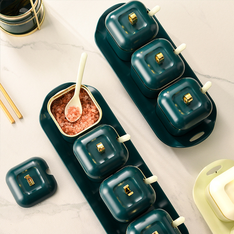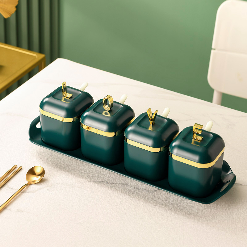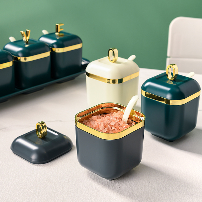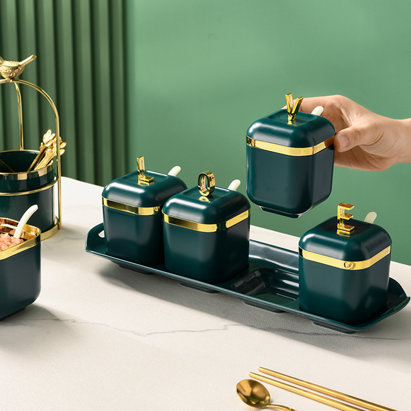 轻奢镀金调味盒套装 厨房盐味精收纳瓶 分格家用时尚调味罐组合装