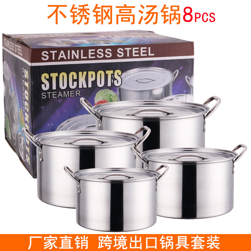 跨境外贸不锈钢锅具8件套 多功能蒸锅高汤锅汤桶锅礼品套装12PCS