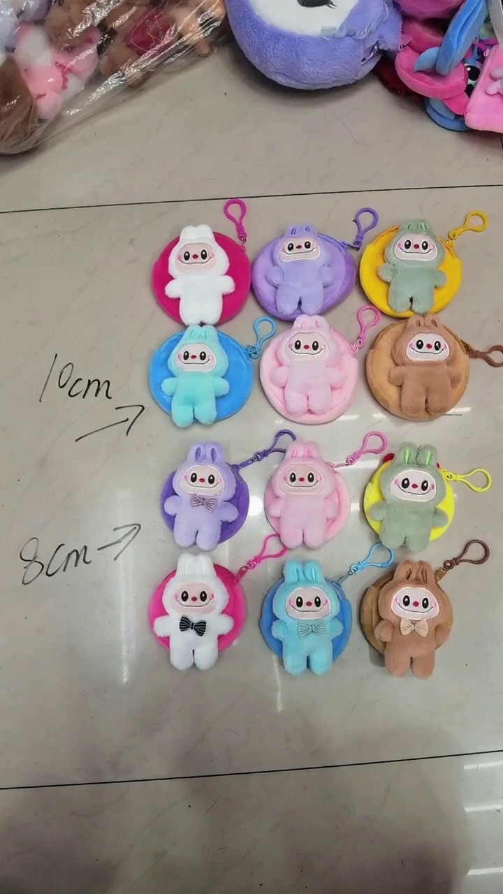 圆形毛绒儿童零钱包硬币收纳包便携耳机包挂件背包毛绒钥匙扣挂饰