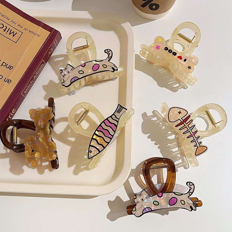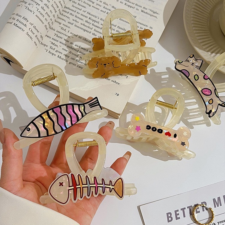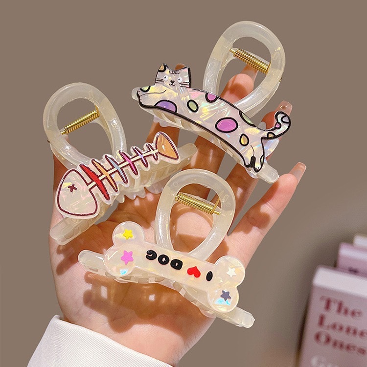亚马逊新款卡通动物贴片抓夹幻彩学生发夹爆款鲨鱼夹发夹批发