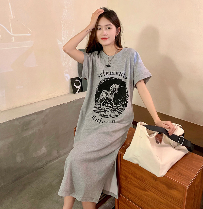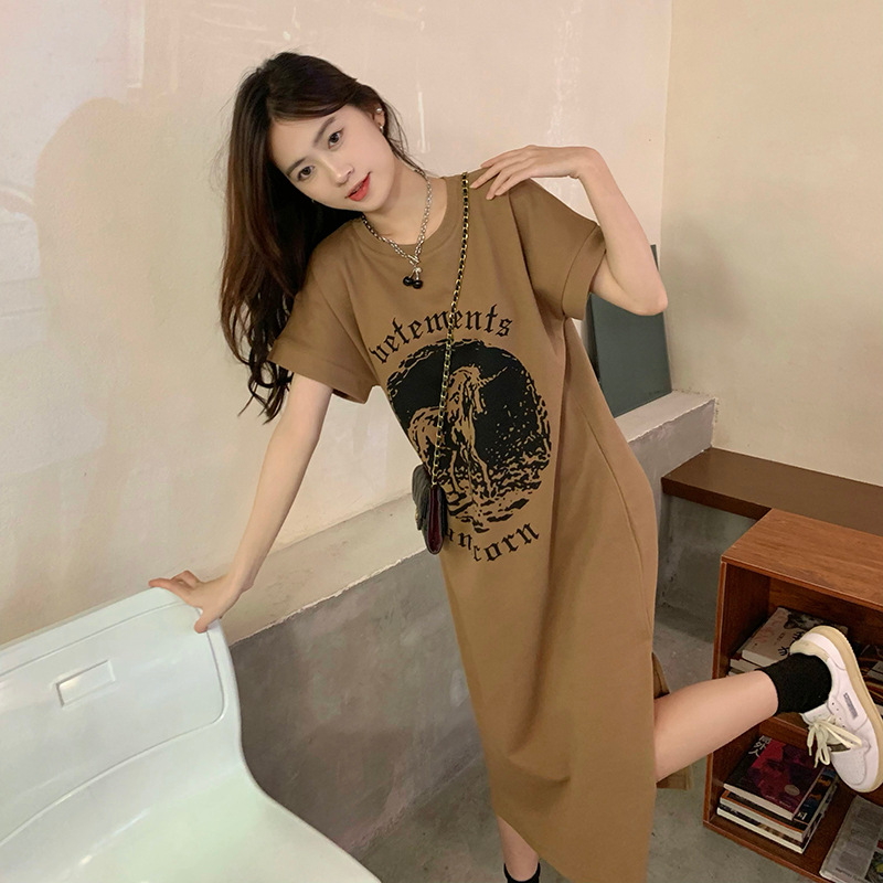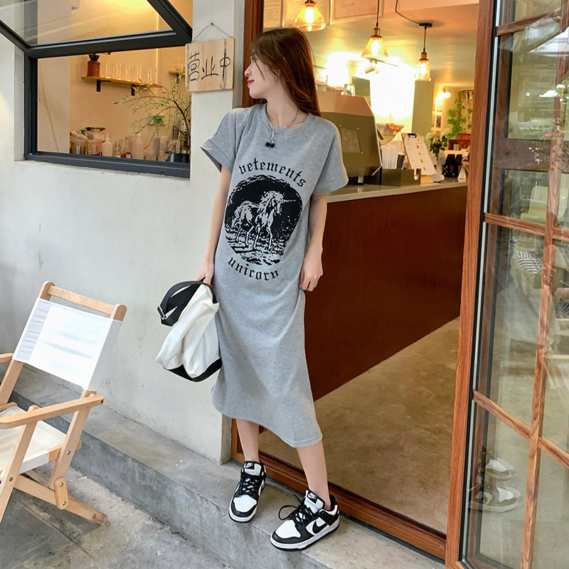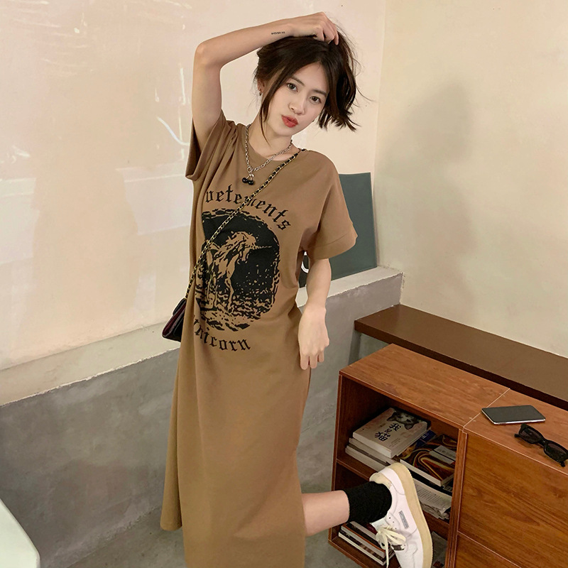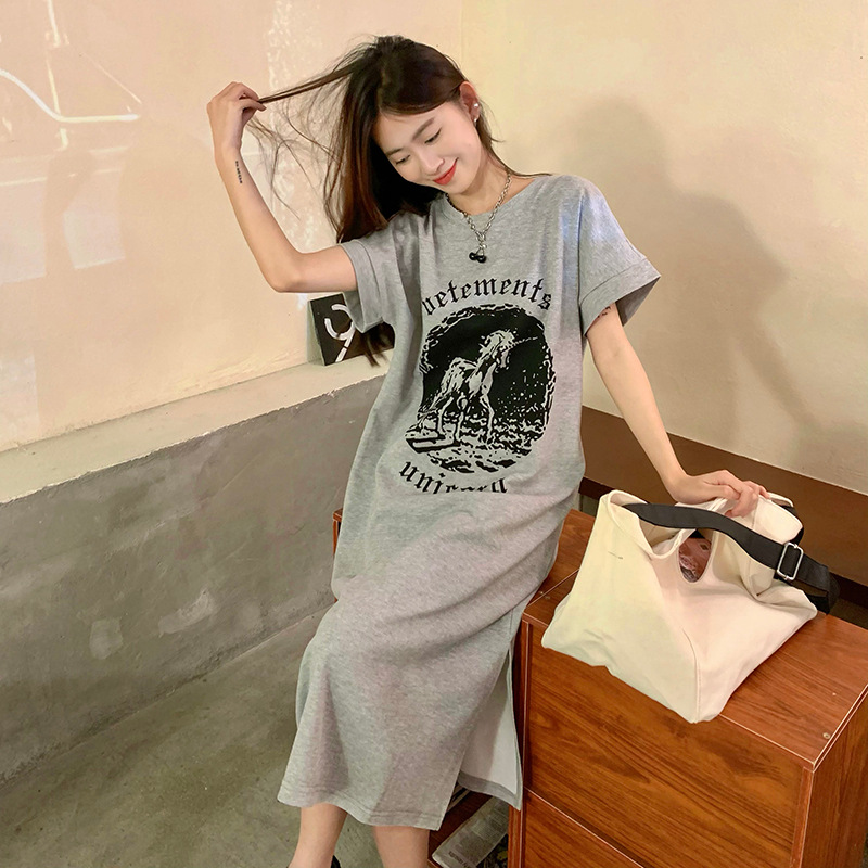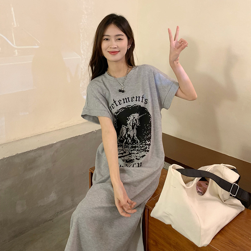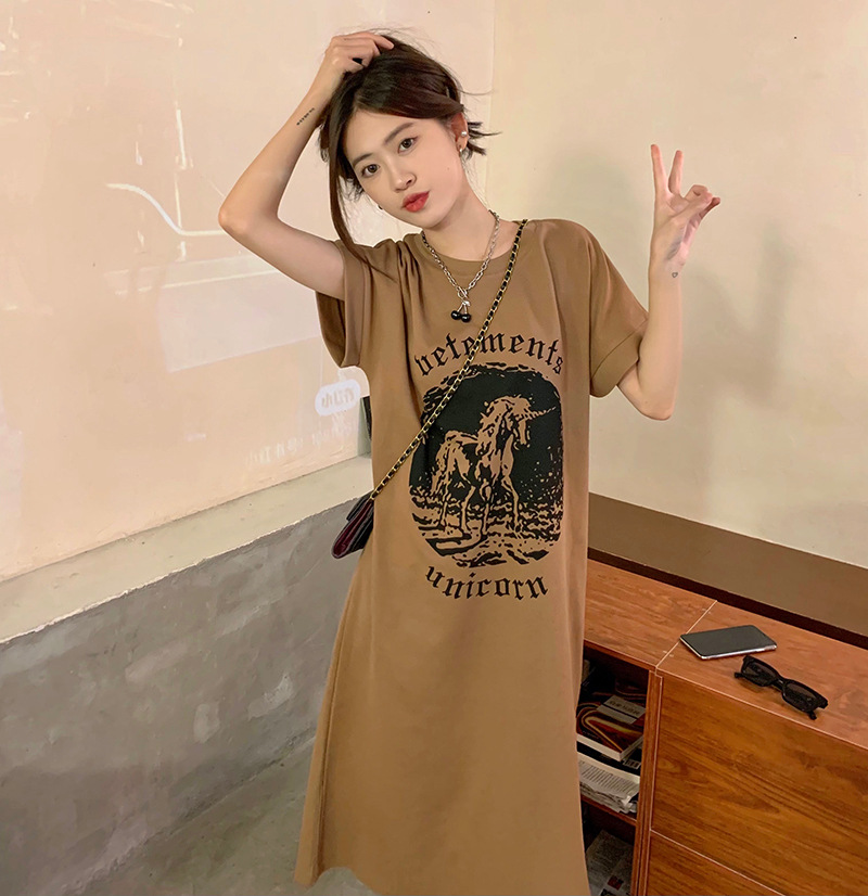 欧洲站小清新连衣裙2023夏季女装薄款炸街气质休闲直筒t恤长裙子