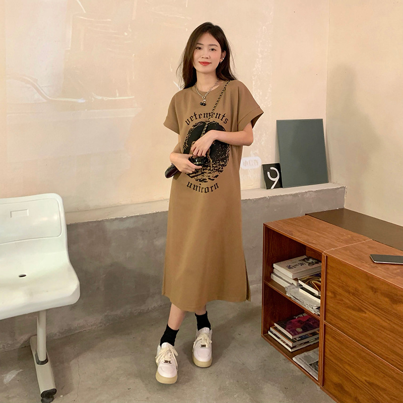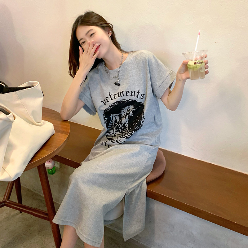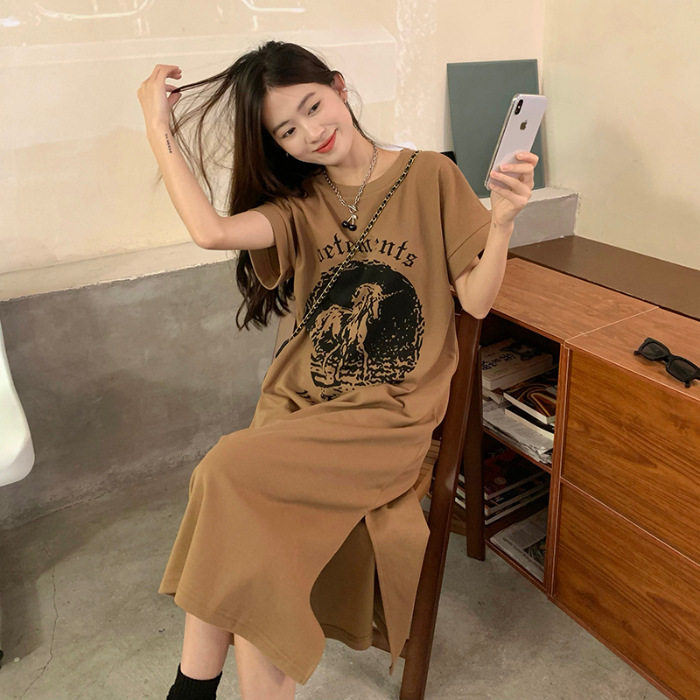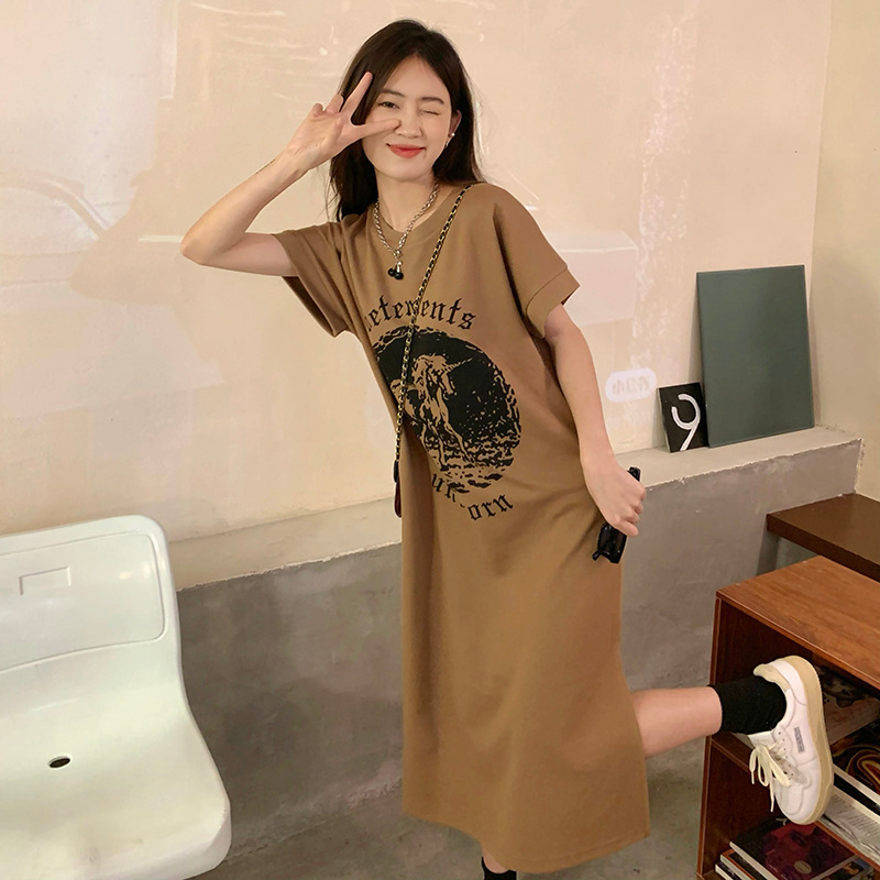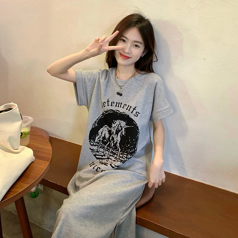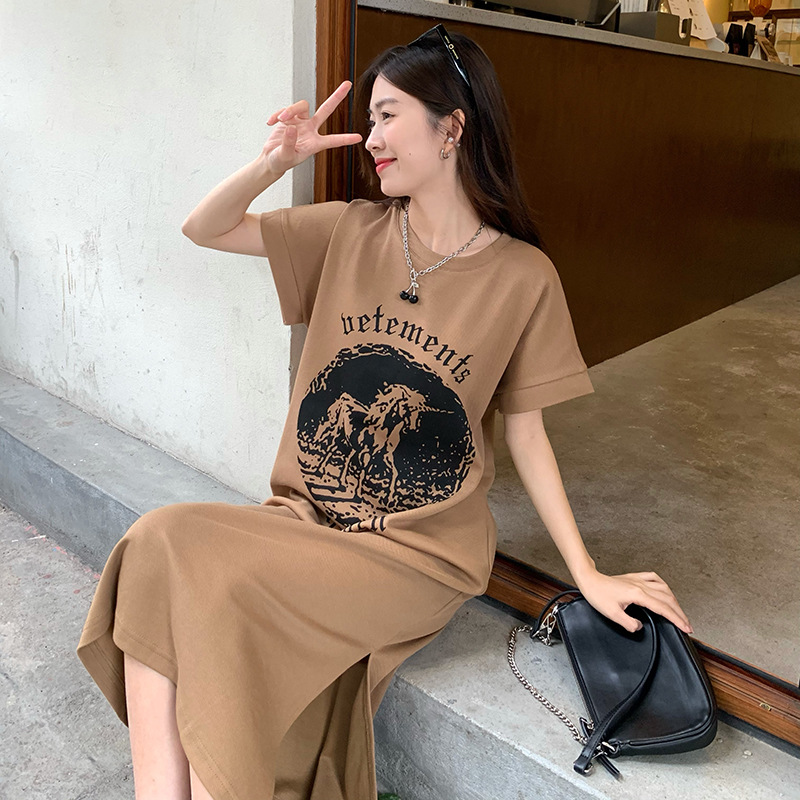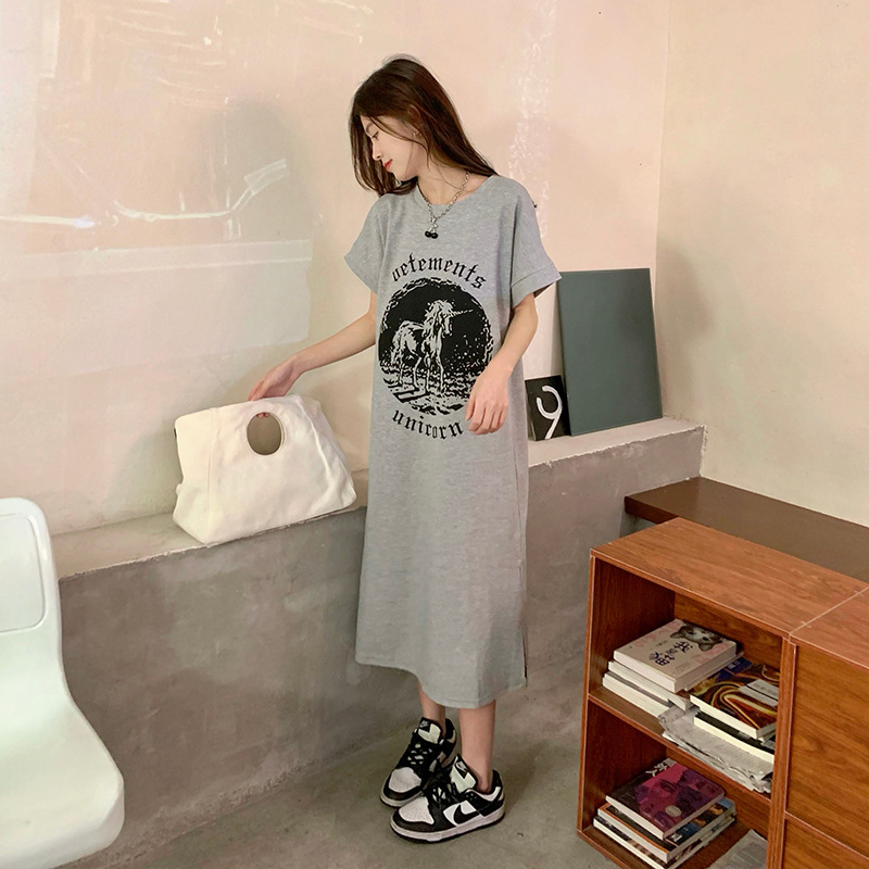 欧洲站小清新连衣裙2023夏季女装薄款炸街气质休闲直筒t恤长裙子