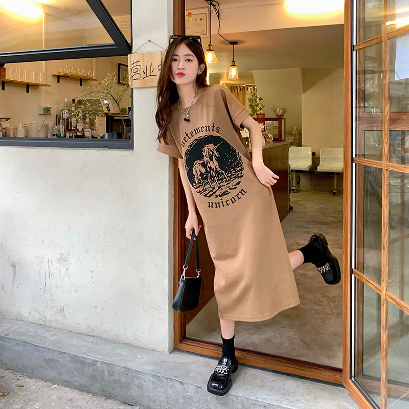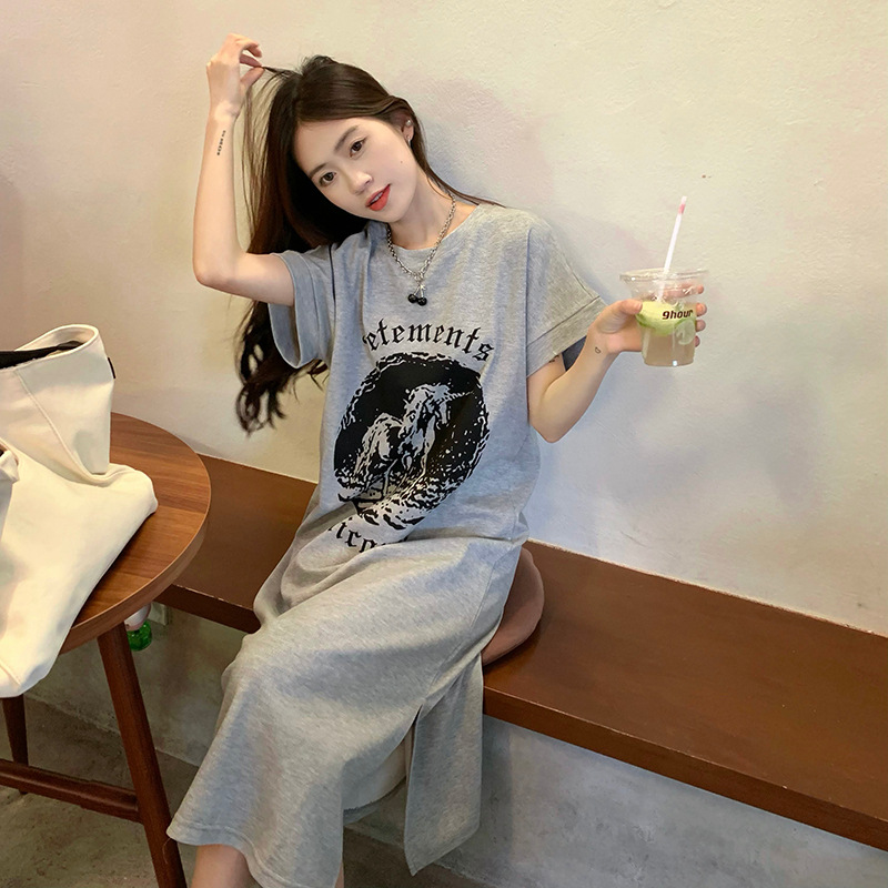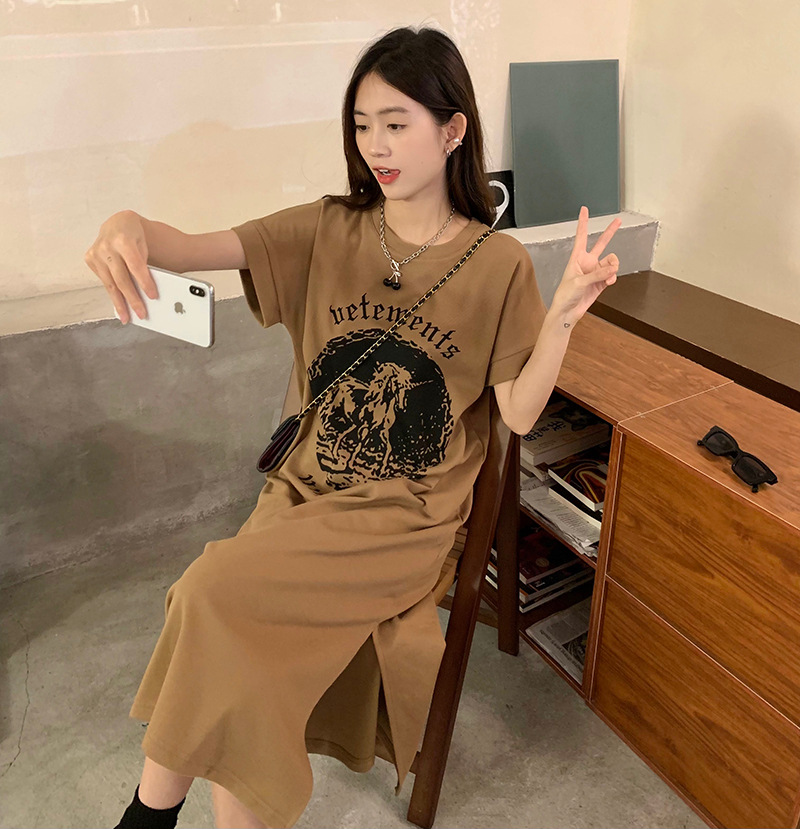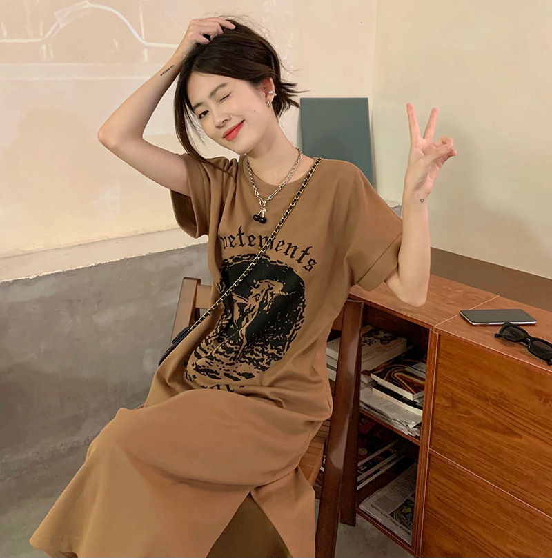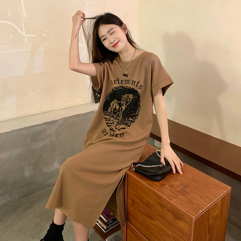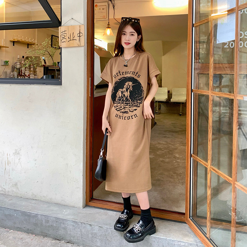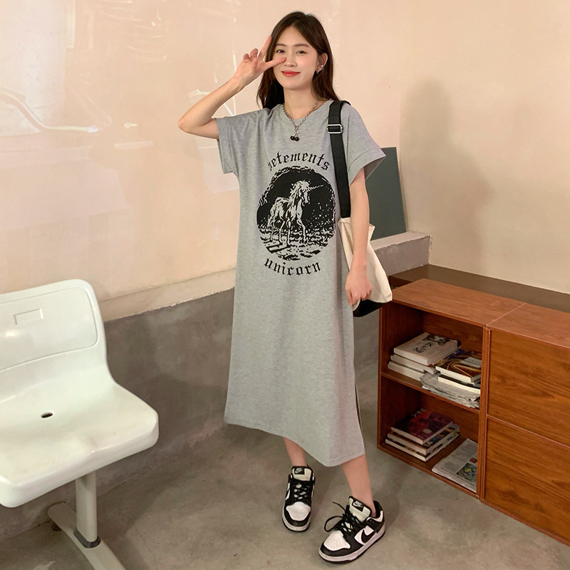 欧洲站小清新连衣裙2023夏季女装薄款炸街气质休闲直筒t恤长裙子