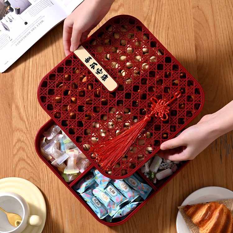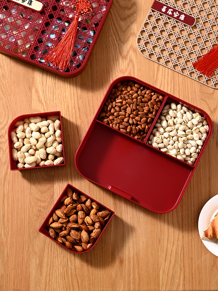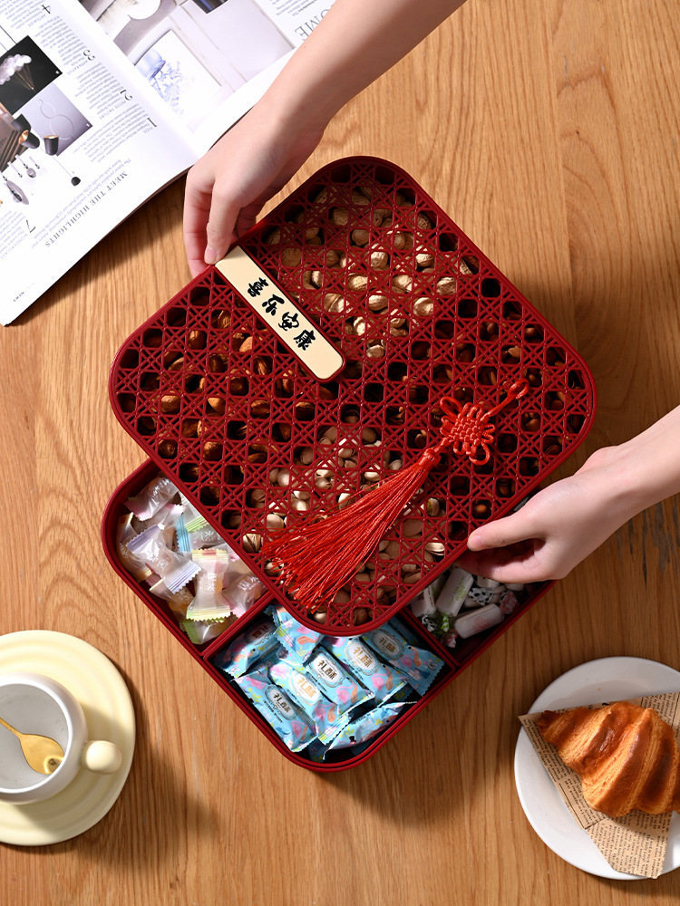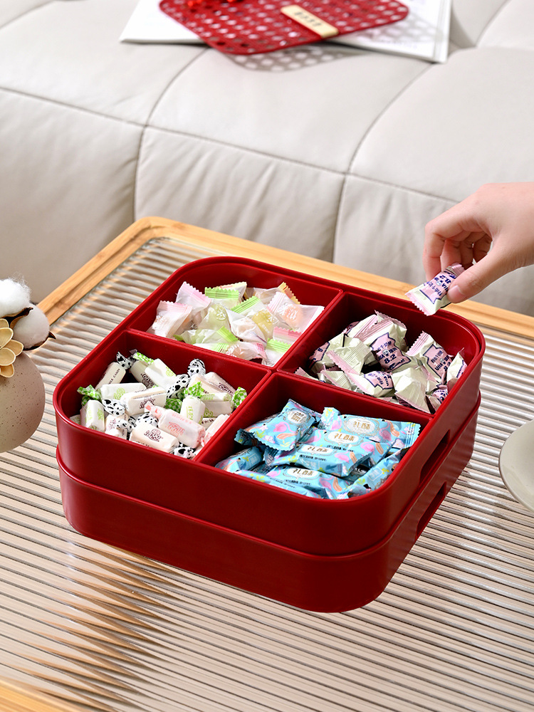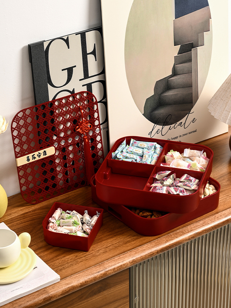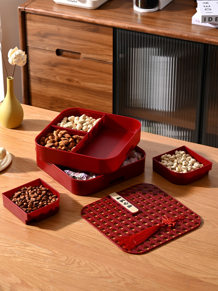 新年干果盒家用分格瓜子盘红色糖果盘子客厅茶几多层果盘批发
