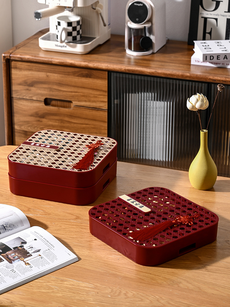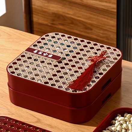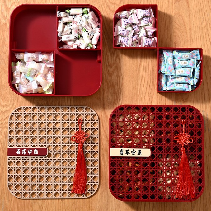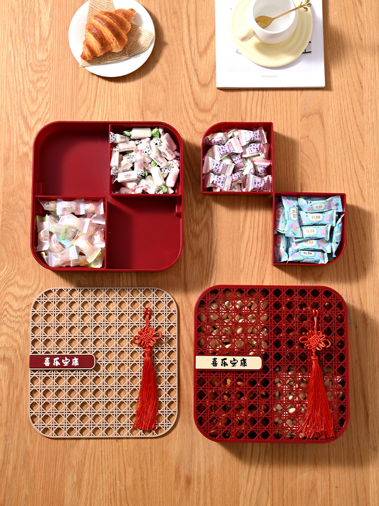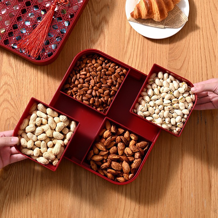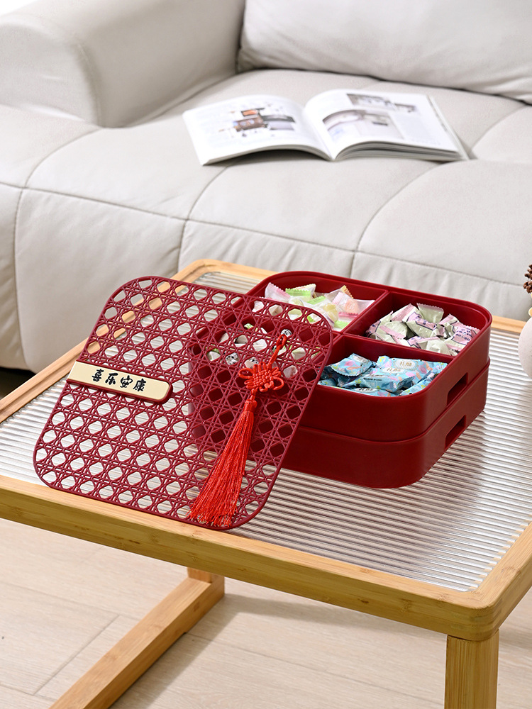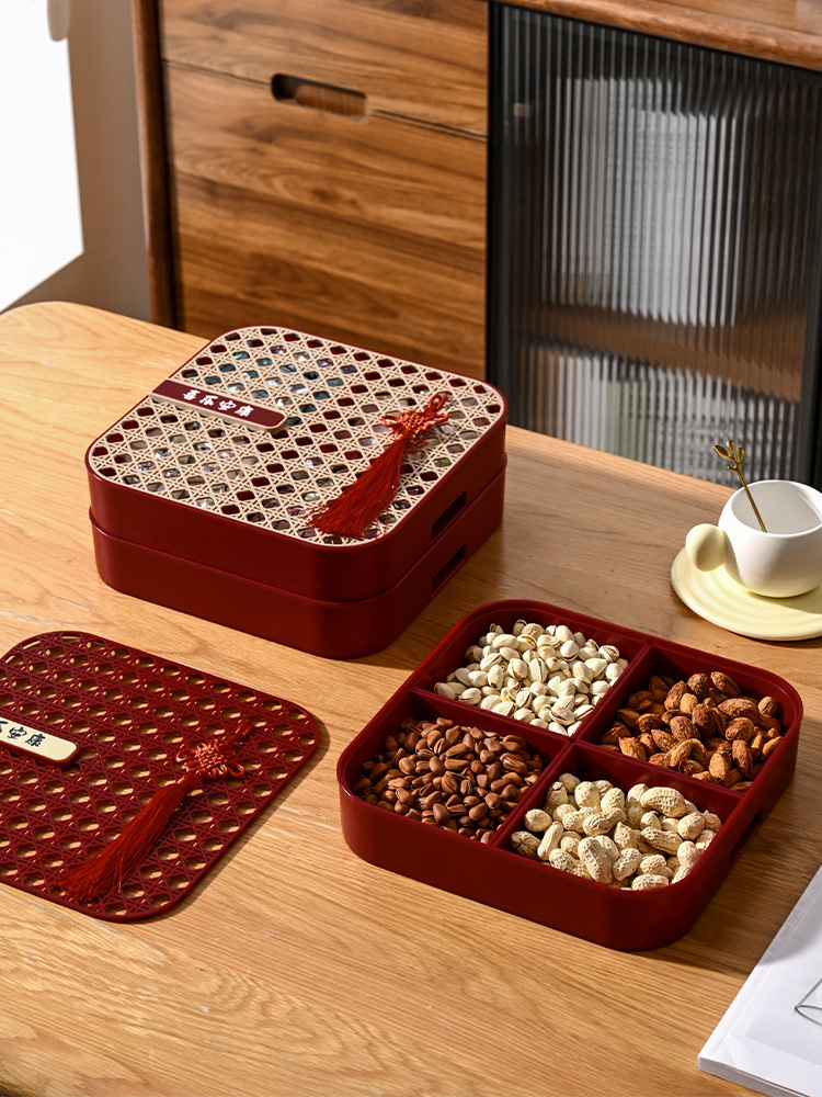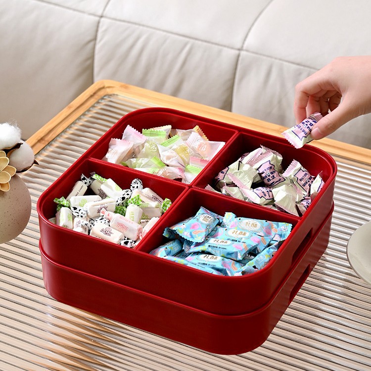 新年干果盒家用分格瓜子盘红色糖果盘子客厅茶几多层果盘批发
