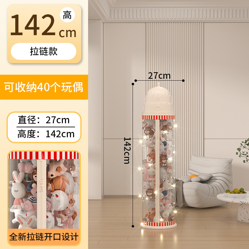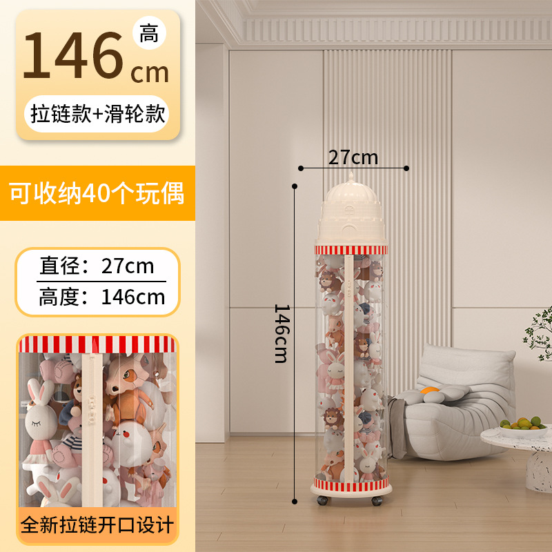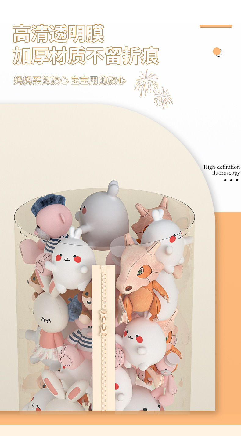 娃娃收纳桶透明大容量儿童玩偶公仔收纳拉链款玩具收纳神器批发