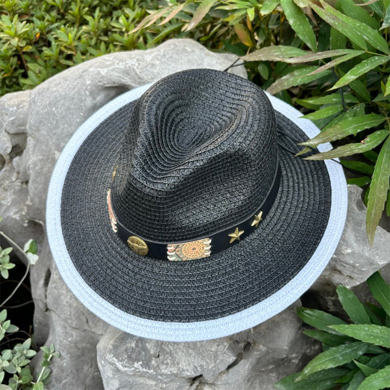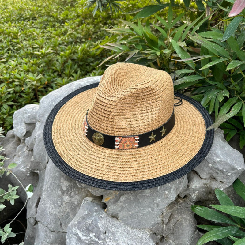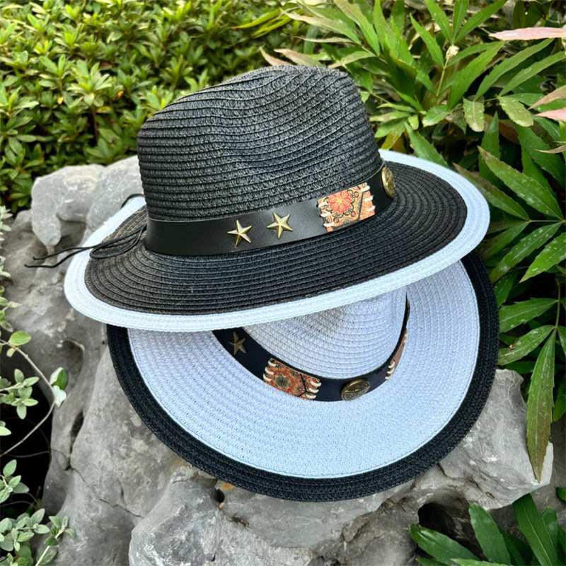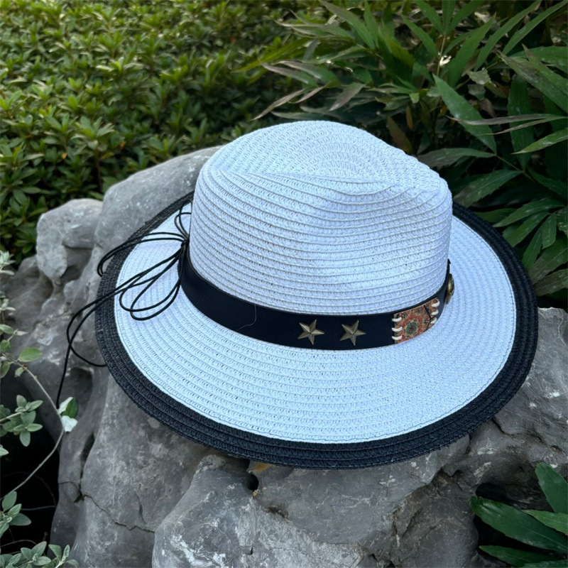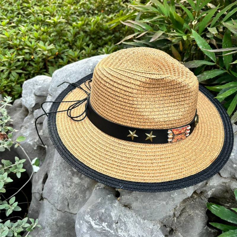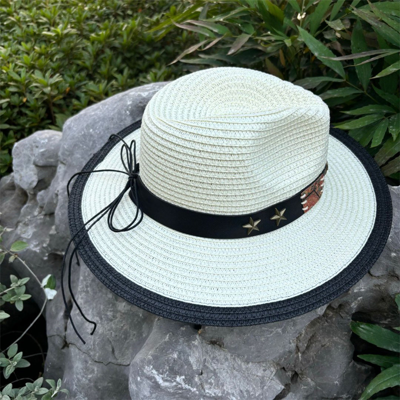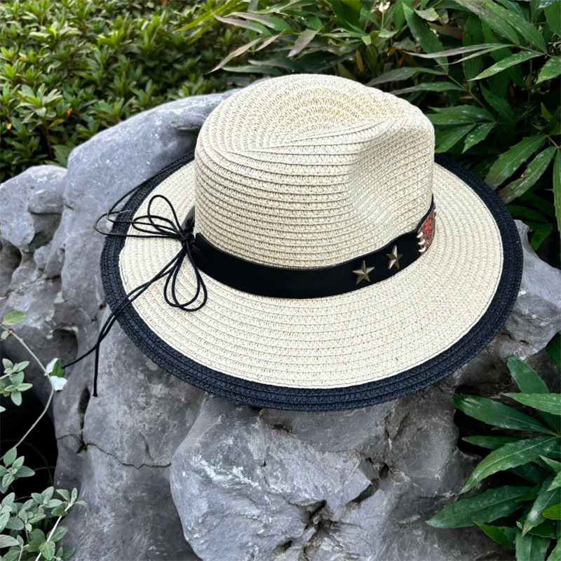 防晒帽子夏季草帽编织女大帽檐遮阳帽英伦皮带礼帽海边度假沙滩帽