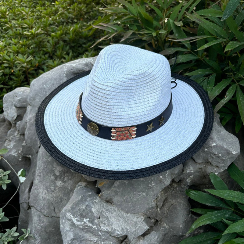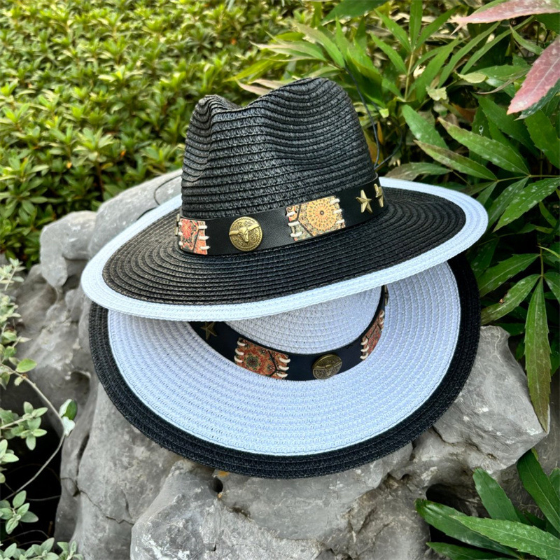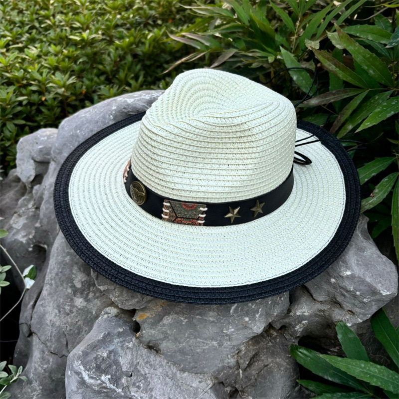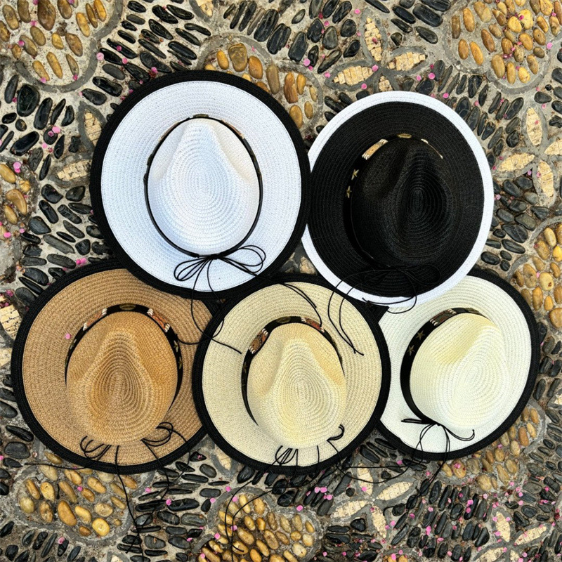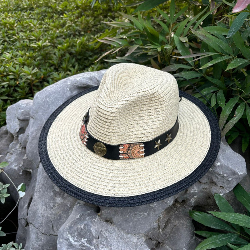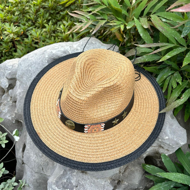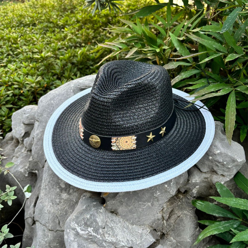 防晒帽子夏季草帽编织女大帽檐遮阳帽英伦皮带礼帽海边度假沙滩帽