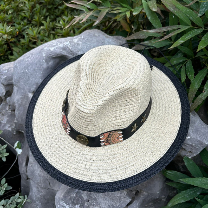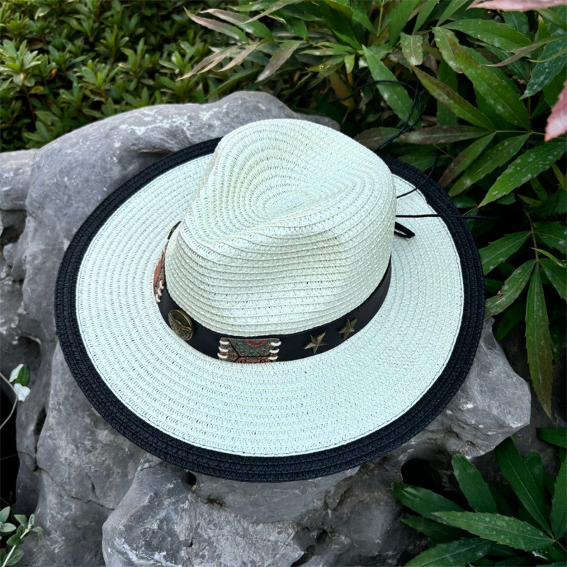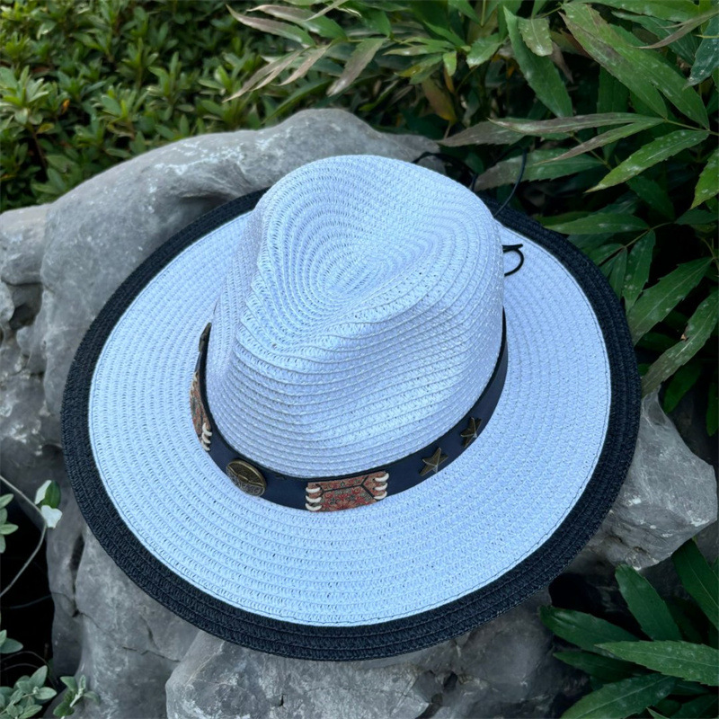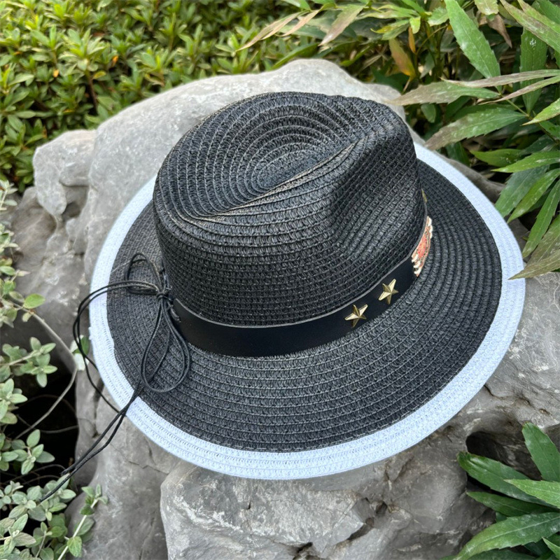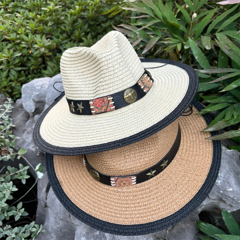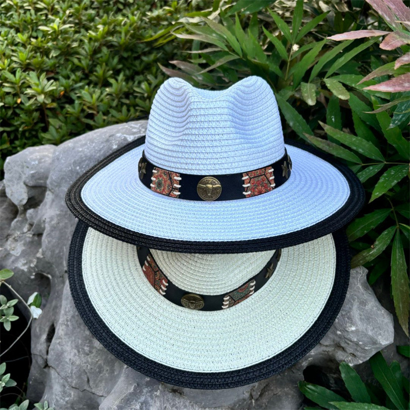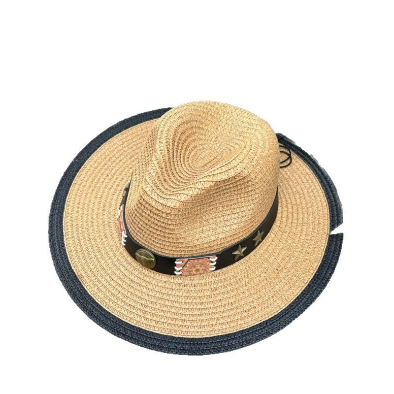 防晒帽子夏季草帽编织女大帽檐遮阳帽英伦皮带礼帽海边度假沙滩帽