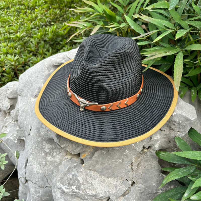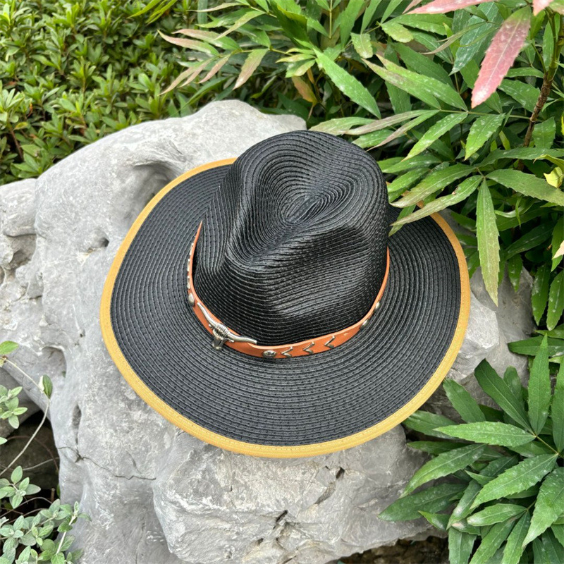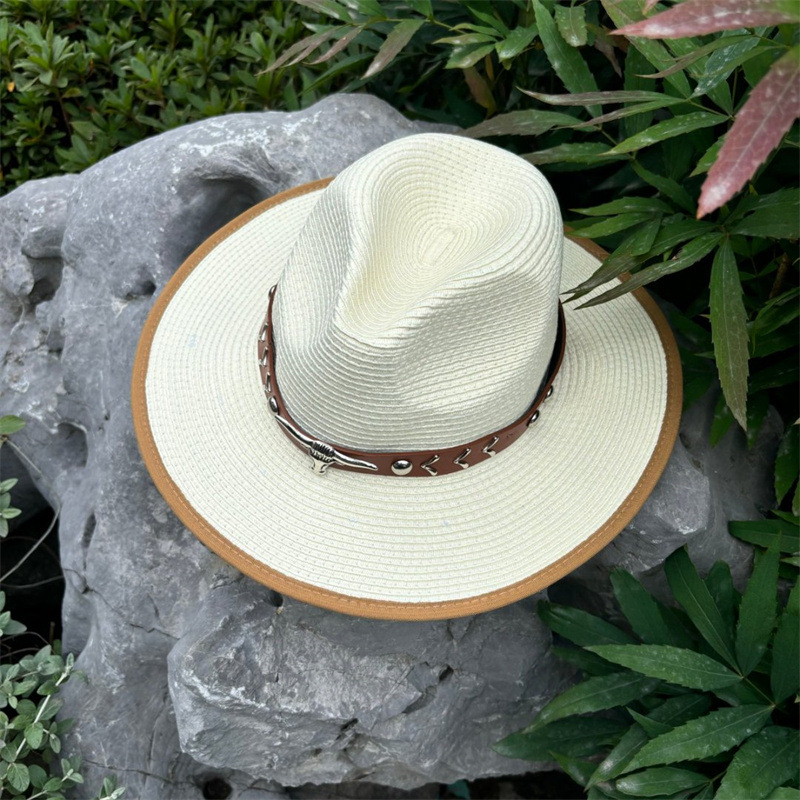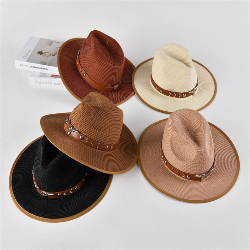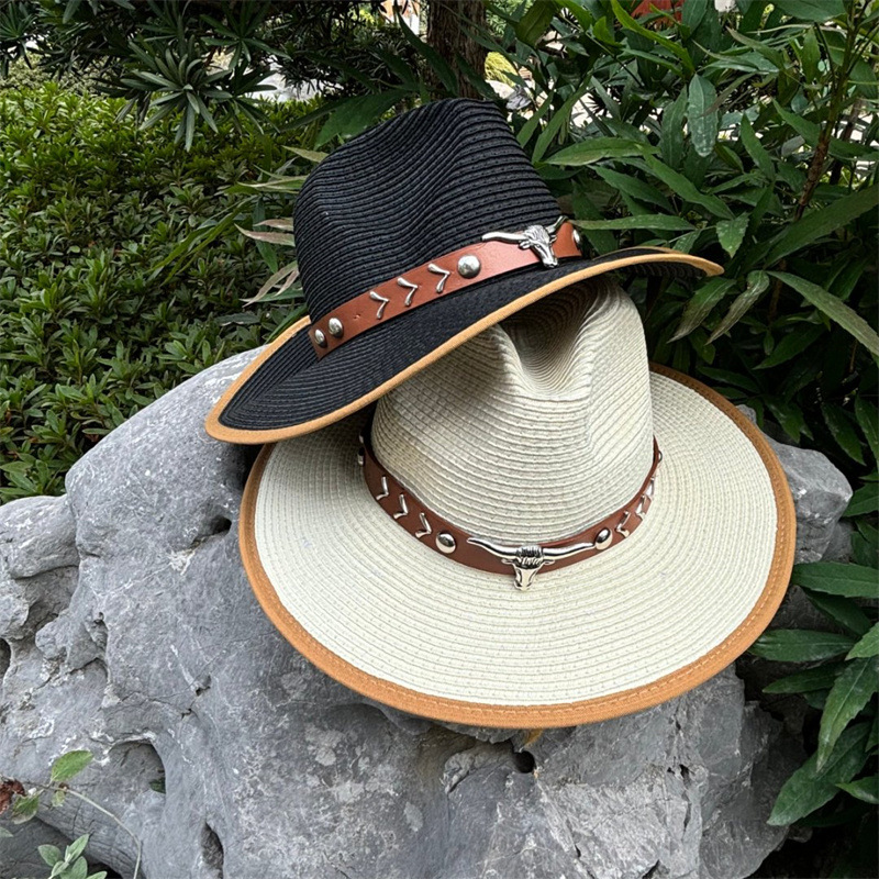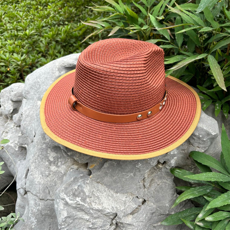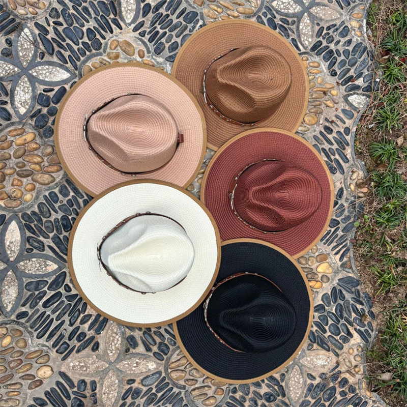 欧美爵士帽皮带牛仔礼帽女士大檐户外遮阳帽登山帽男旅游防晒帽潮