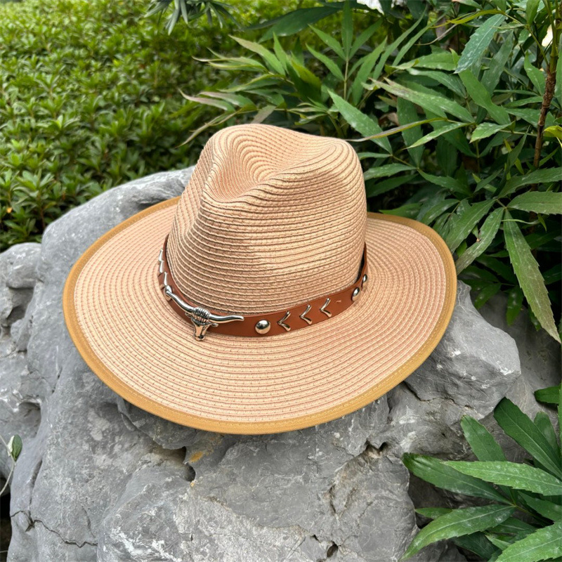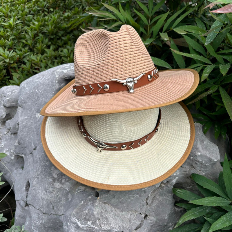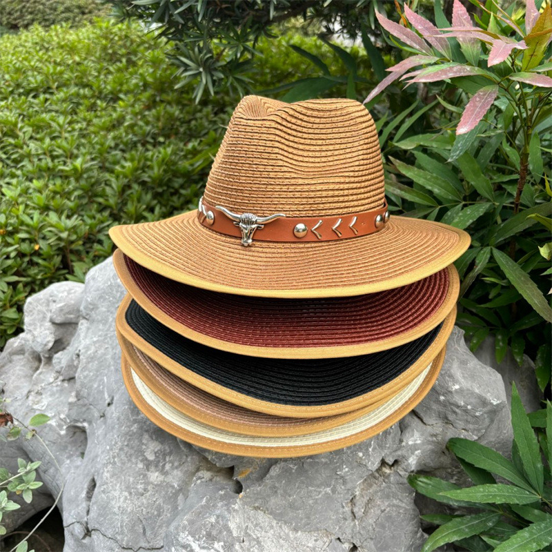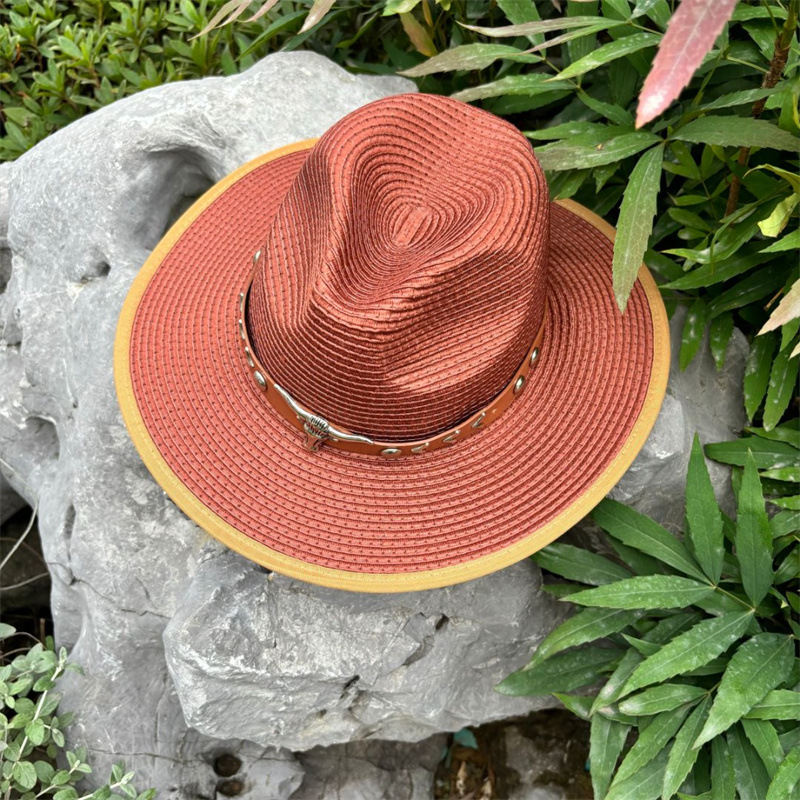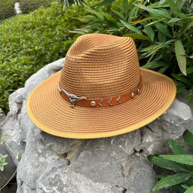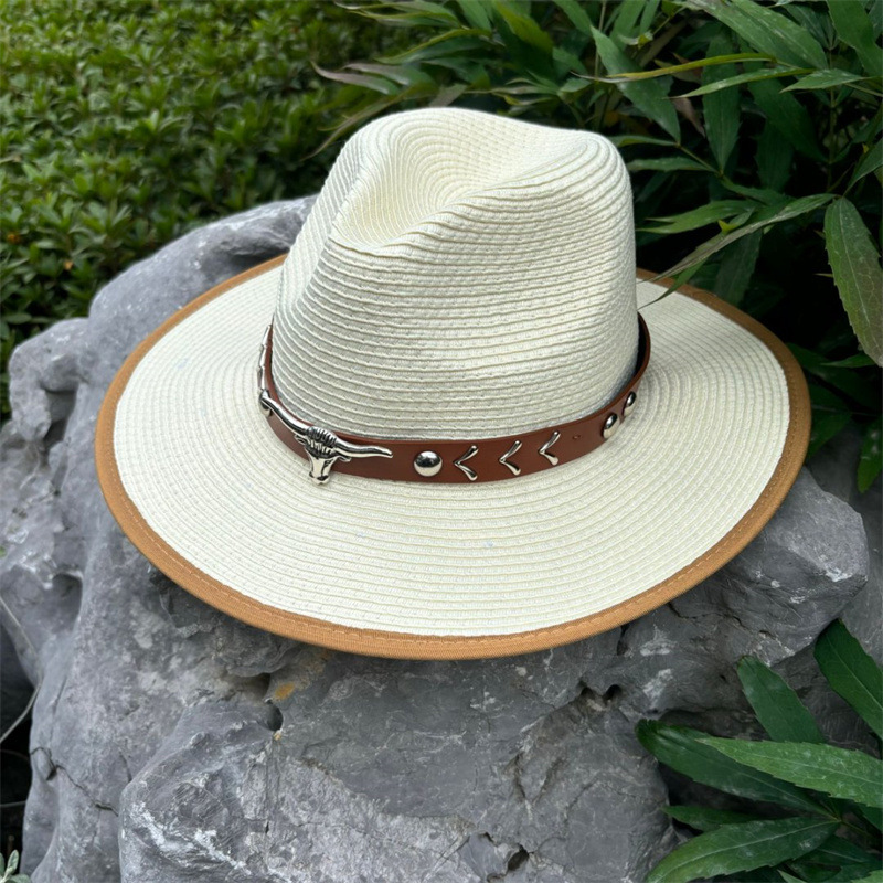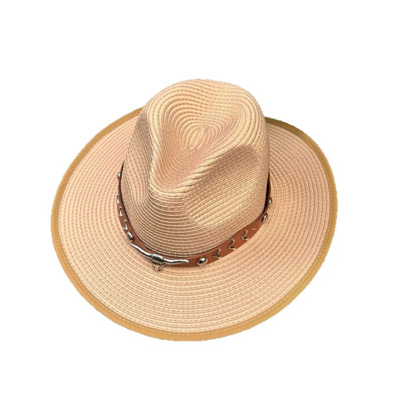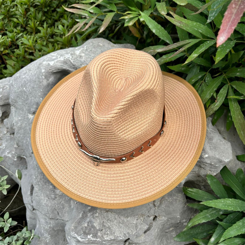 欧美爵士帽皮带牛仔礼帽女士大檐户外遮阳帽登山帽男旅游防晒帽潮
