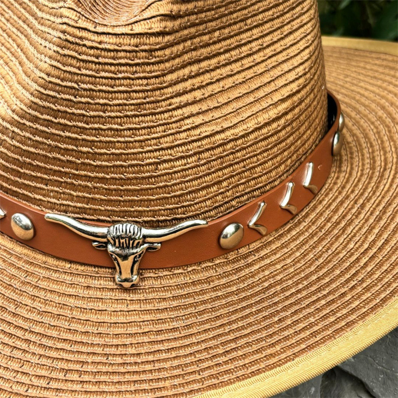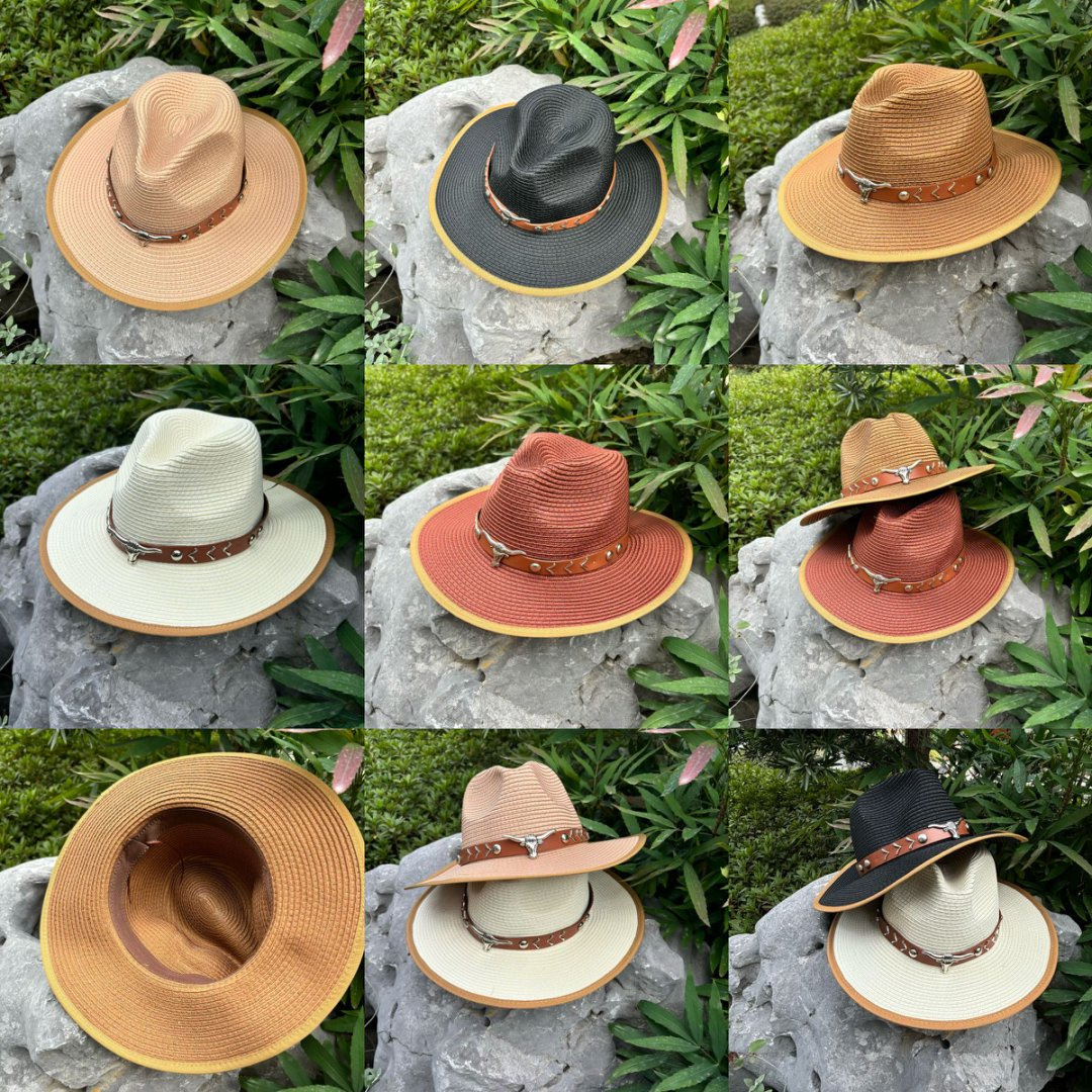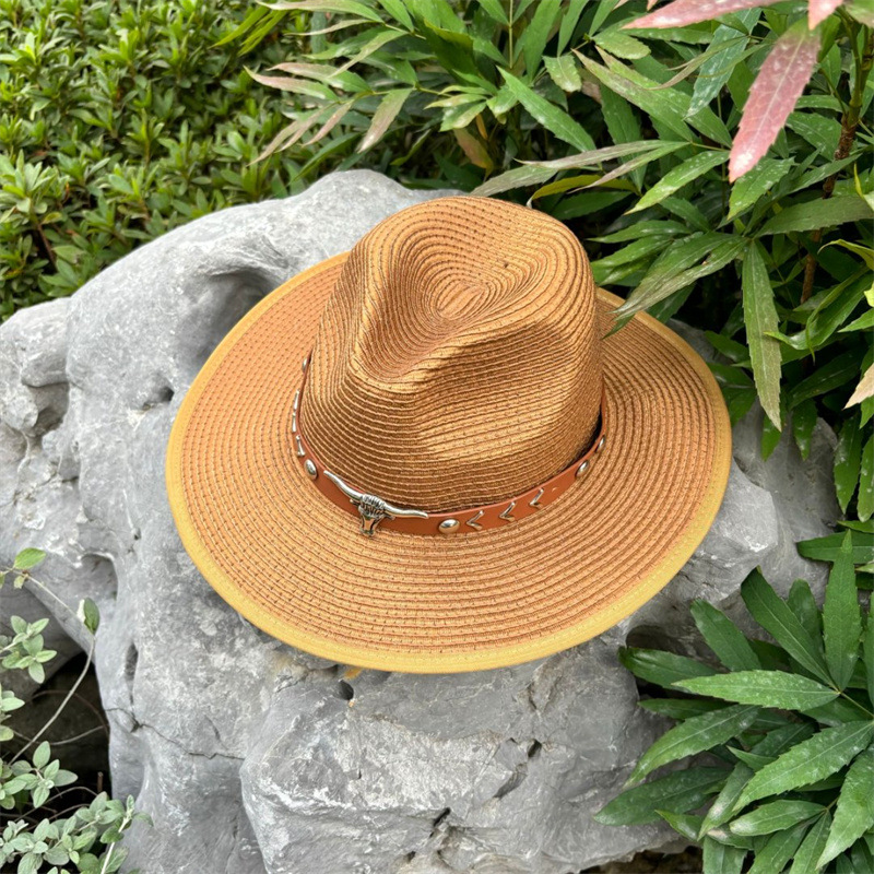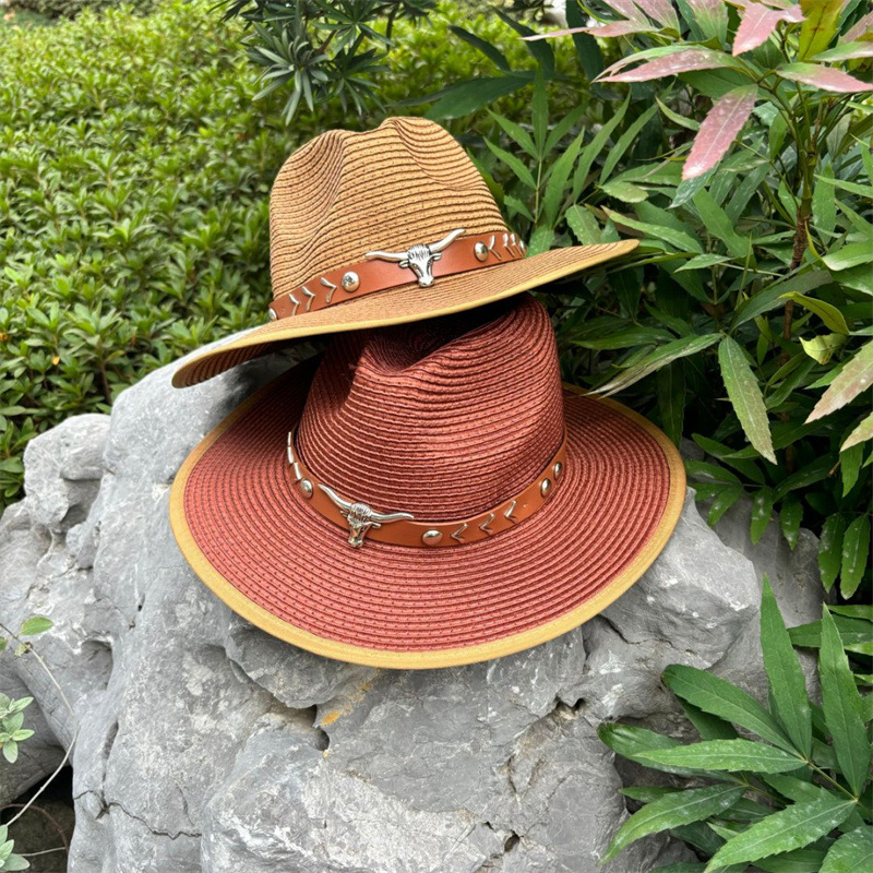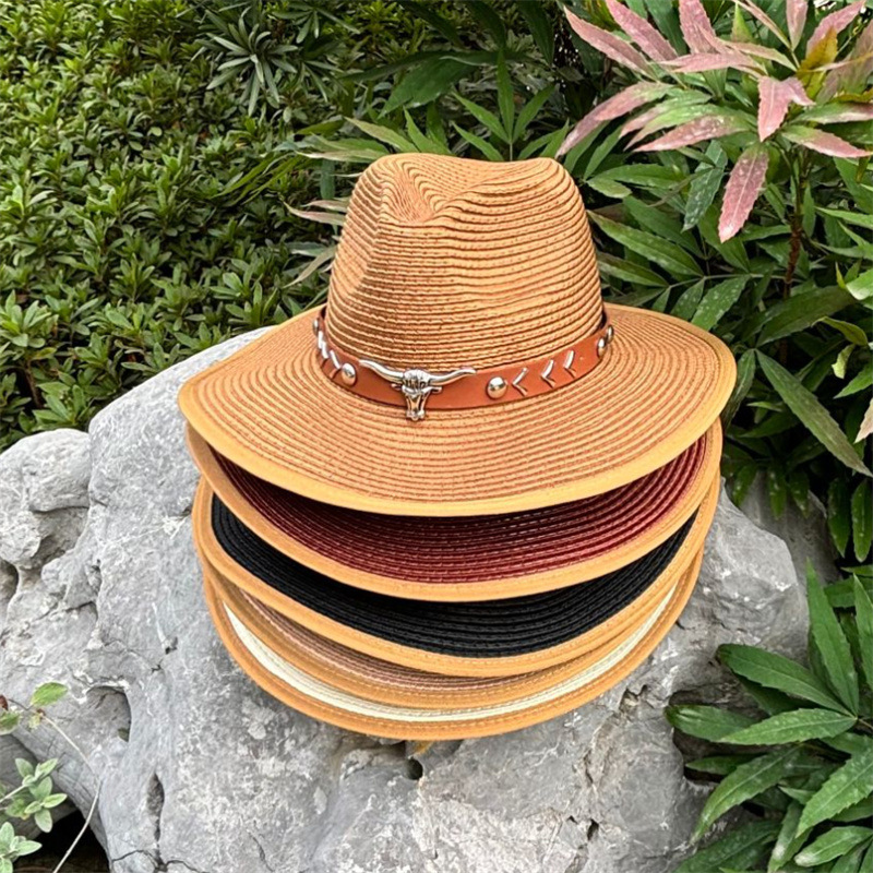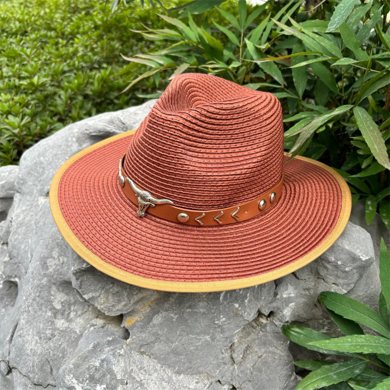 欧美爵士帽皮带牛仔礼帽女士大檐户外遮阳帽登山帽男旅游防晒帽潮