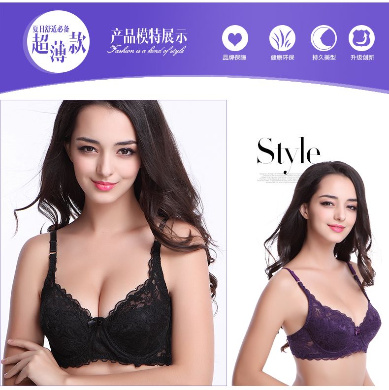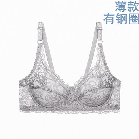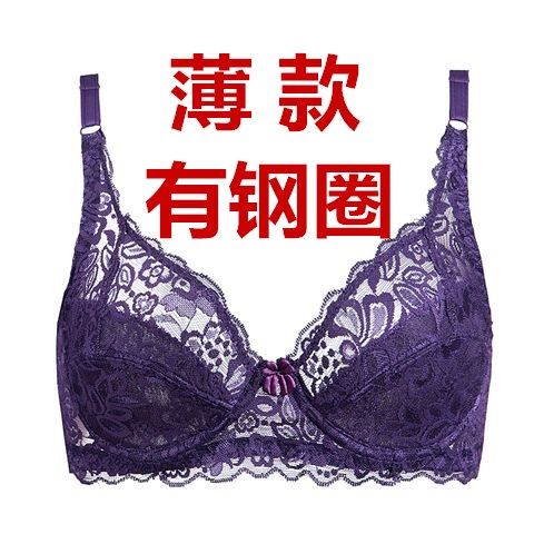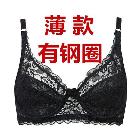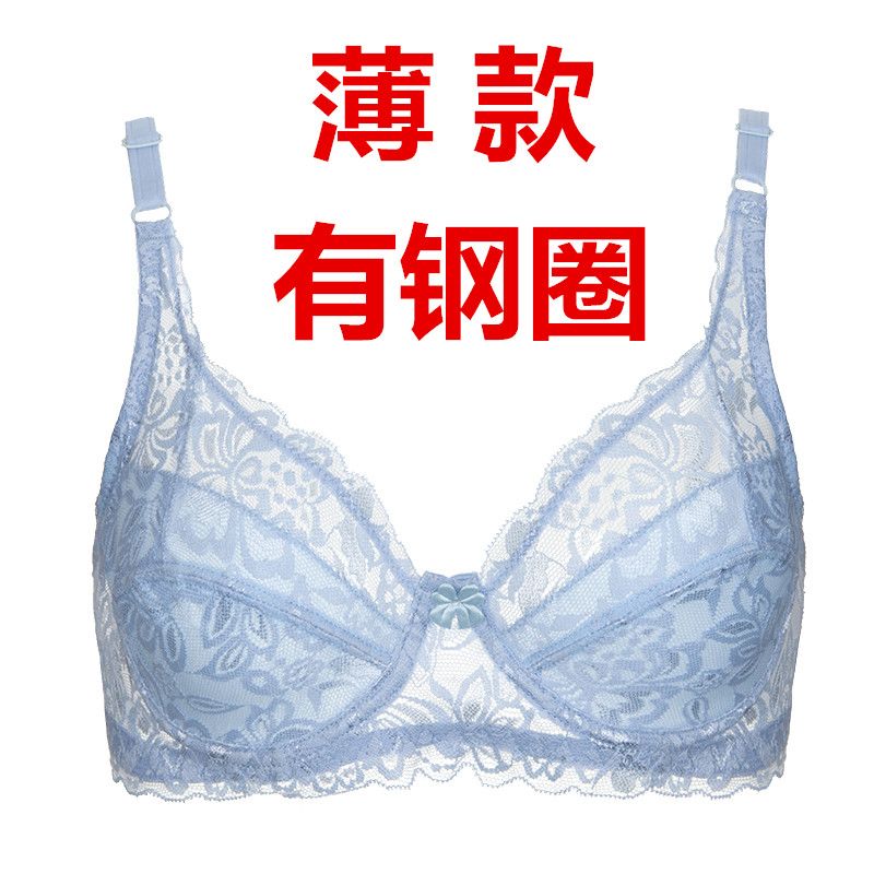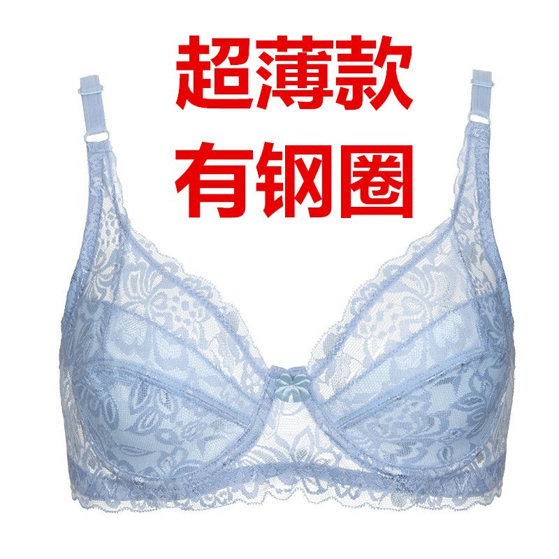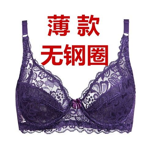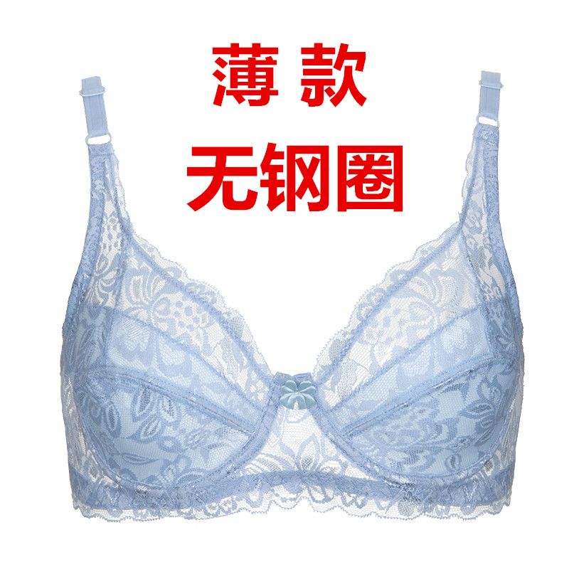 无钢圈超薄文胸薄款内衣女士聚拢蕾丝性感大胸显小无海绵大码胸罩
