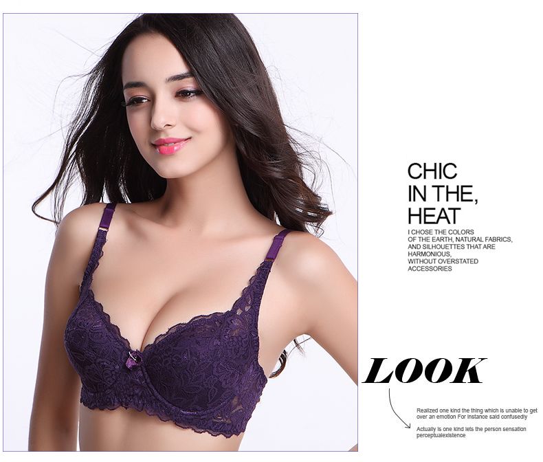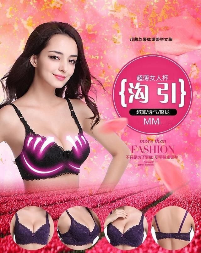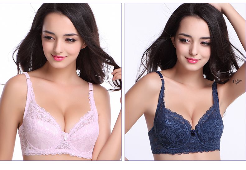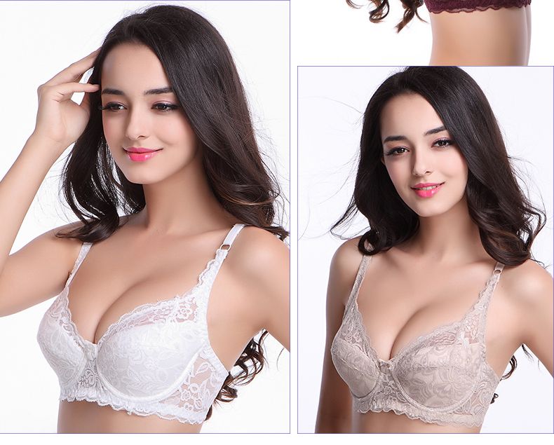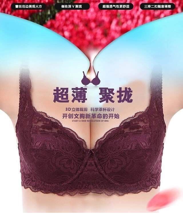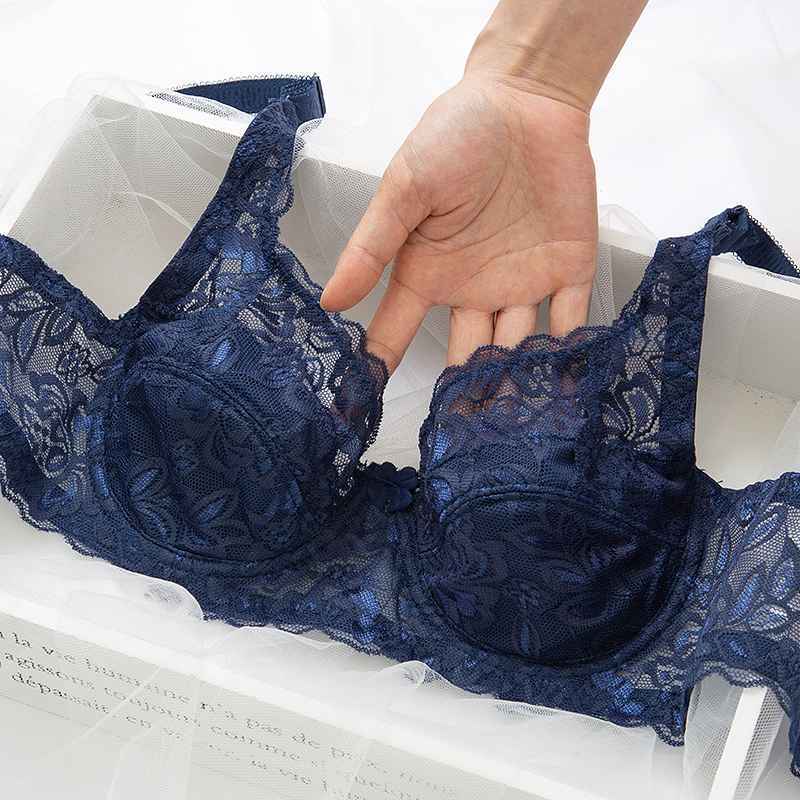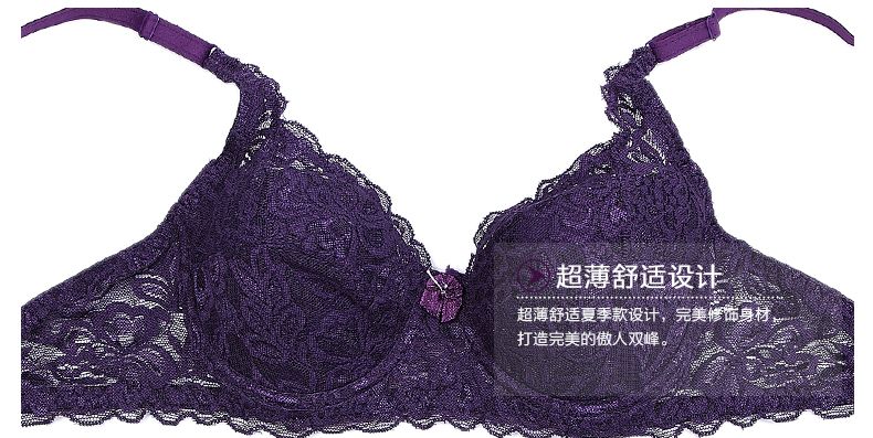 无钢圈超薄文胸薄款内衣女士聚拢蕾丝性感大胸显小无海绵大码胸罩