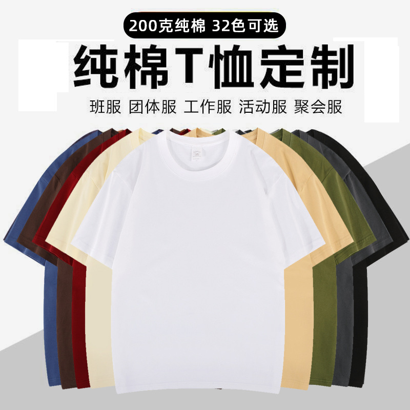 200克精梳纯棉短袖男女纯色T恤团队服活动服文化衫批发印logo文字