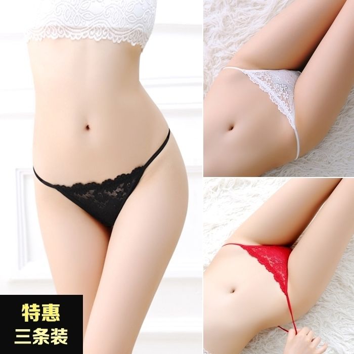 【1-4条装】纯棉镂空女式女士内裤低腰细带透明无痕蕾丝.丁字裤
