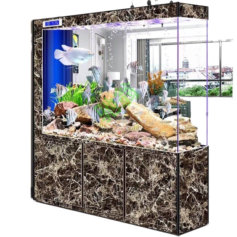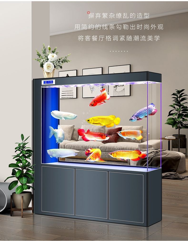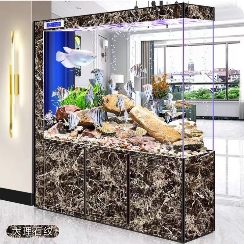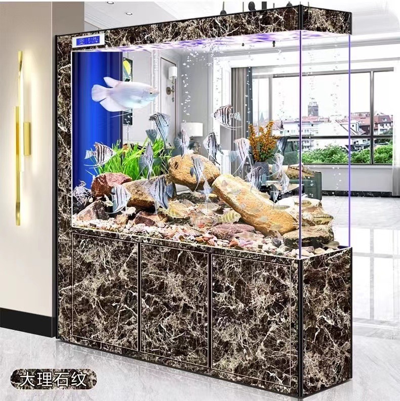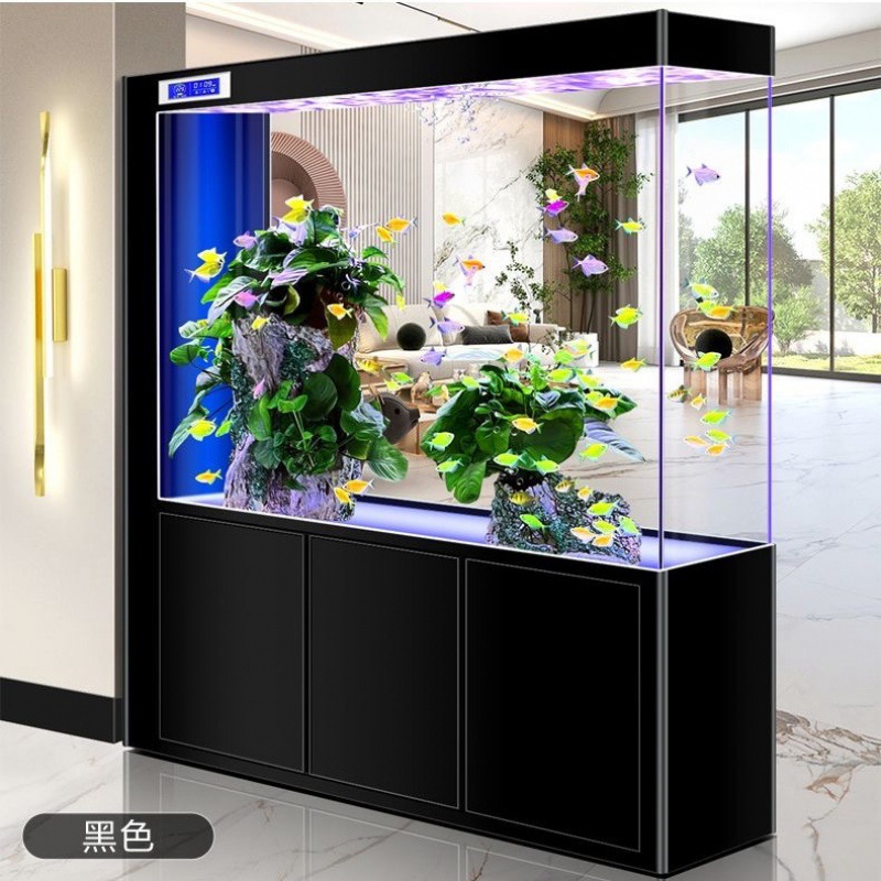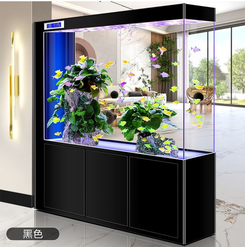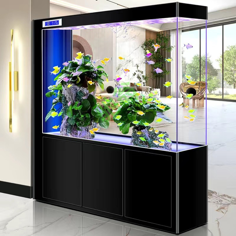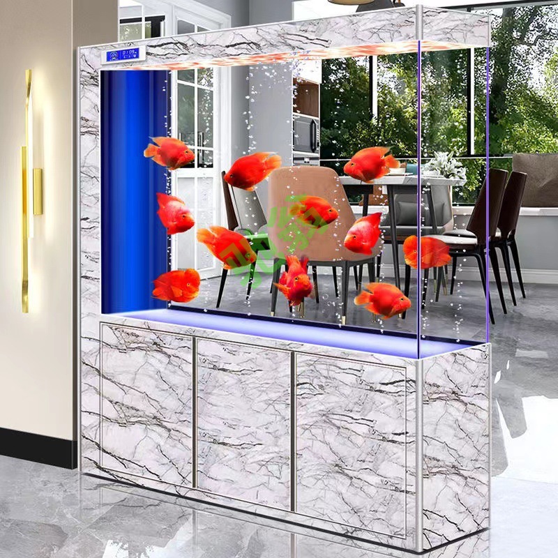 yut新款超白玻璃底滤鱼缸客厅中大小型玄关屏风隔断一体长方形水