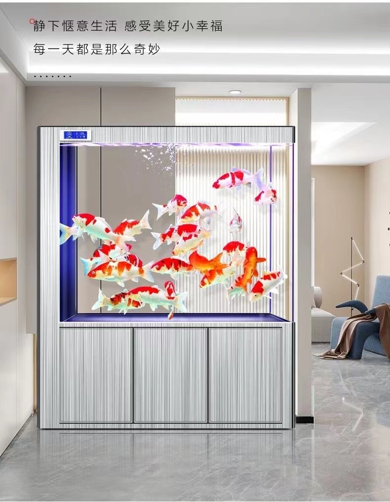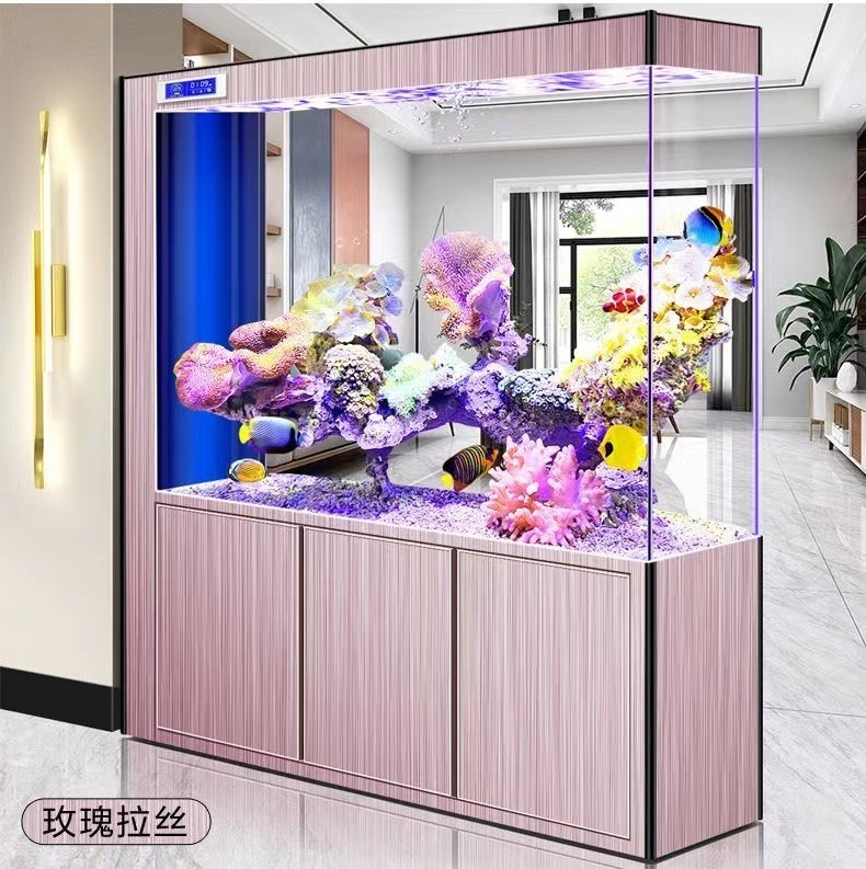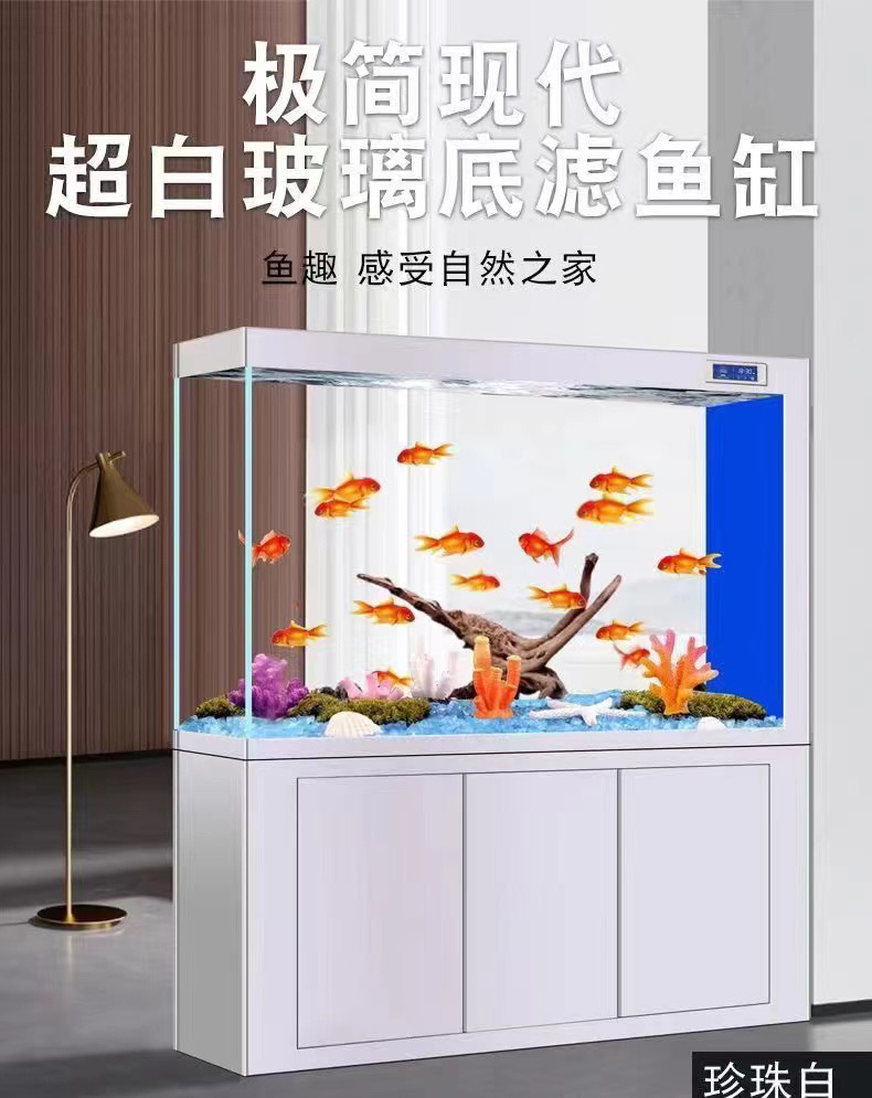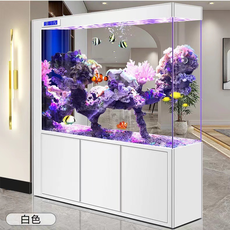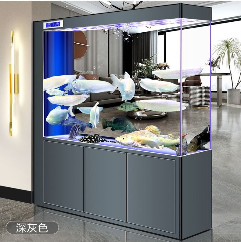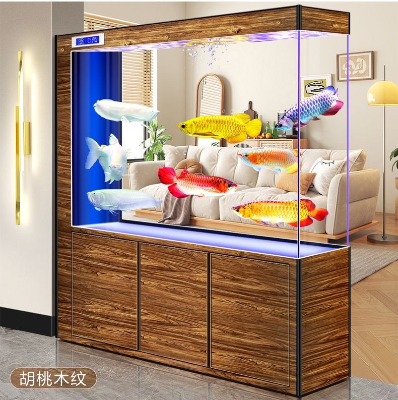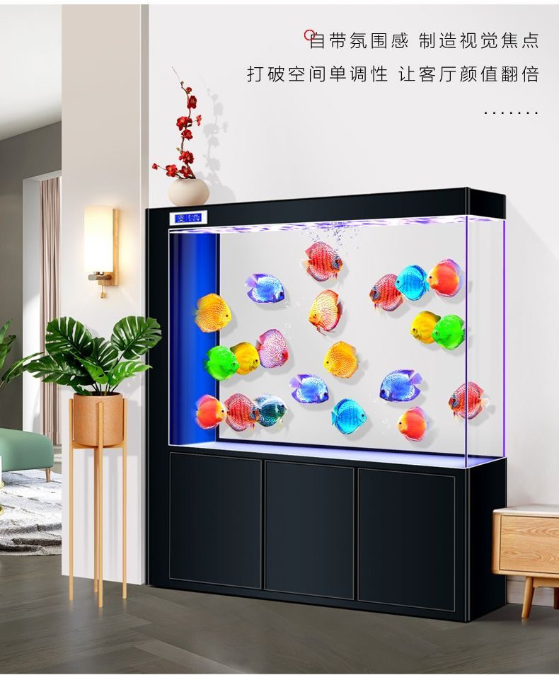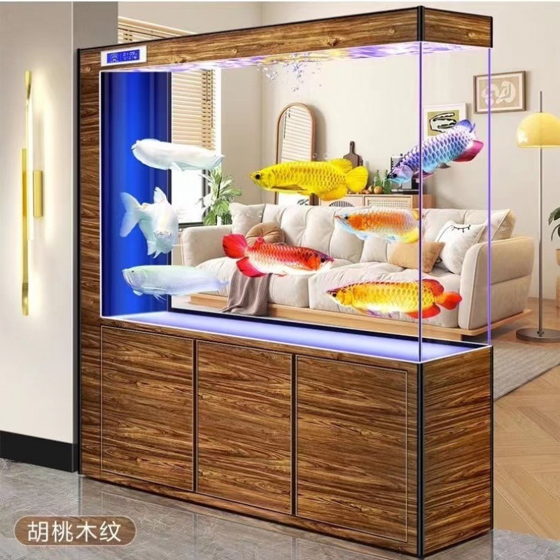 yut新款超白玻璃底滤鱼缸客厅中大小型玄关屏风隔断一体长方形水