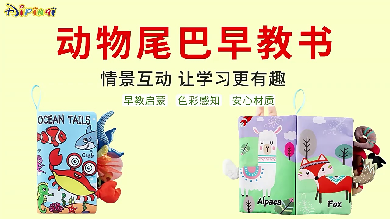 Aipinqi儿童尾巴布书 撕不烂响纸宝宝布书婴儿启蒙早教玩具书现货