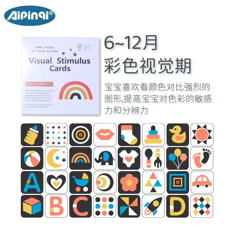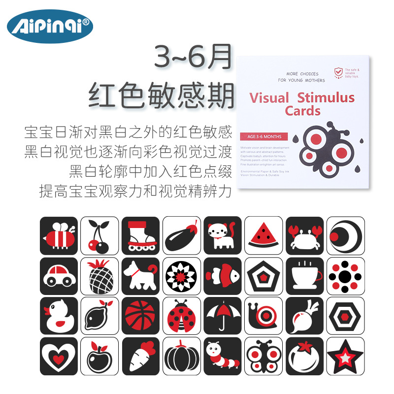 Aipinqi新品婴儿早教卡训练新生儿宝宝视觉激发卡黑白追视卡片