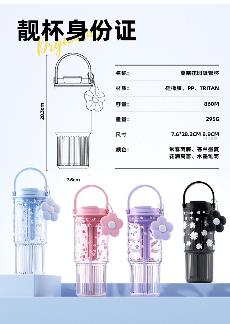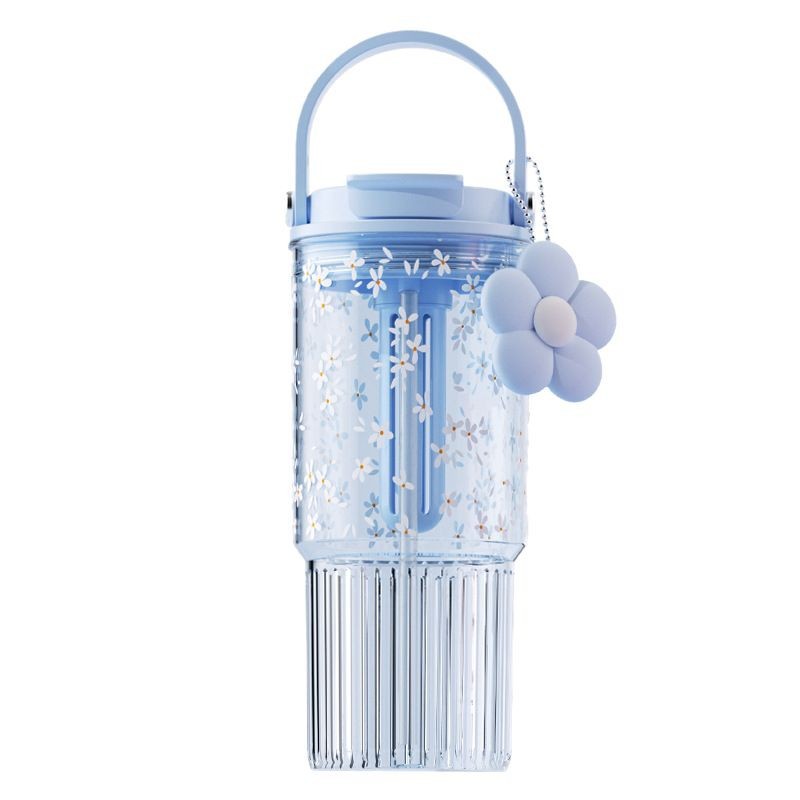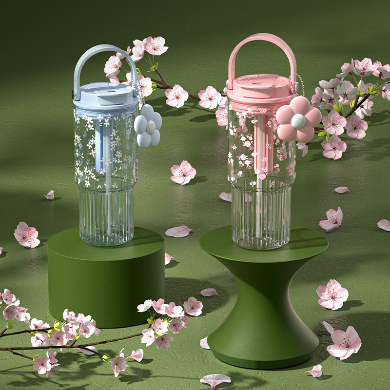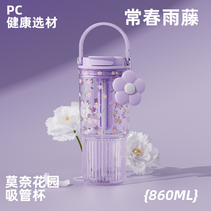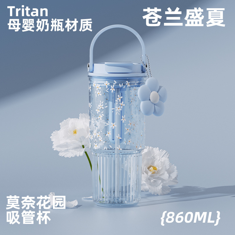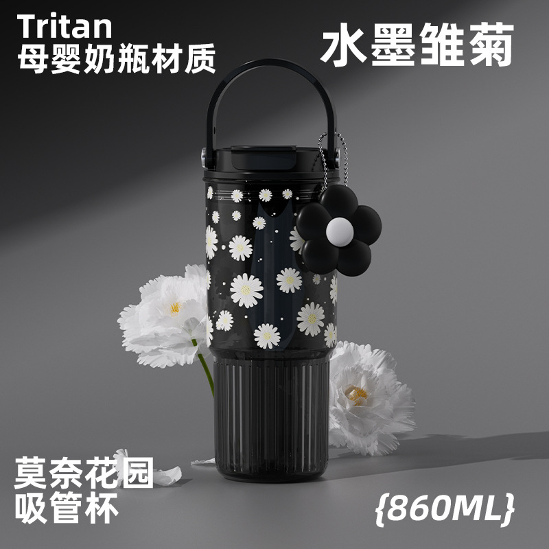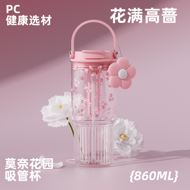 吸管杯2025新款大容量水杯夏季花茶杯女生高颜值便携成人塑料杯子