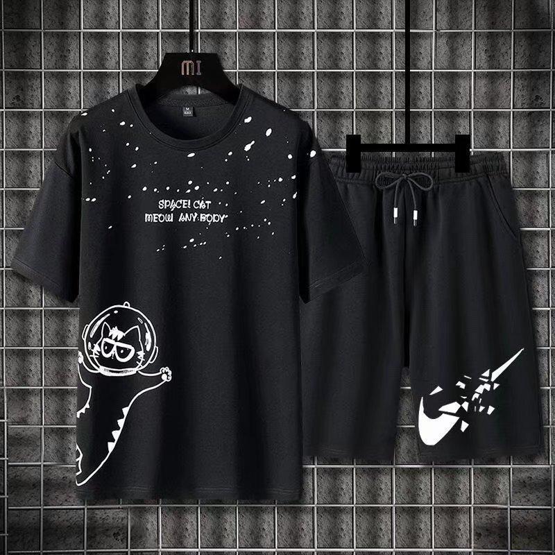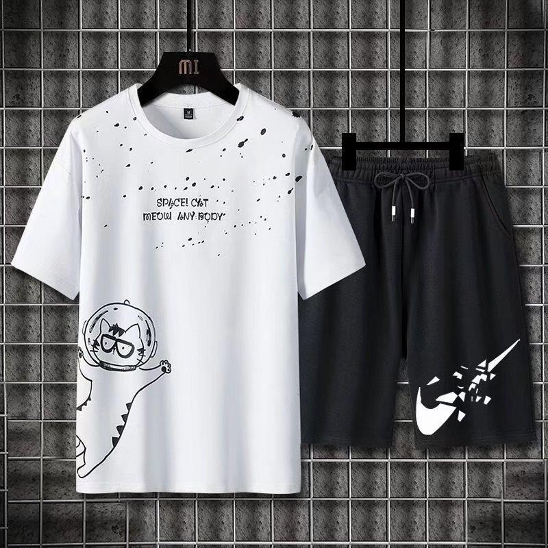 男士短袖宁李t恤上衣2023夏季新款时尚潮牌休闲薄款短裤套装男款