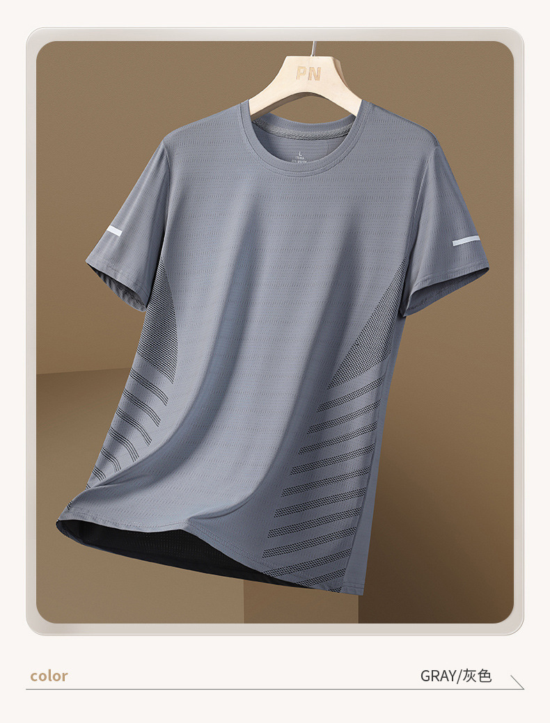 冰丝短袖t恤男士夏季薄款速干网眼运动健身半袖上衣休闲弹力T夏装