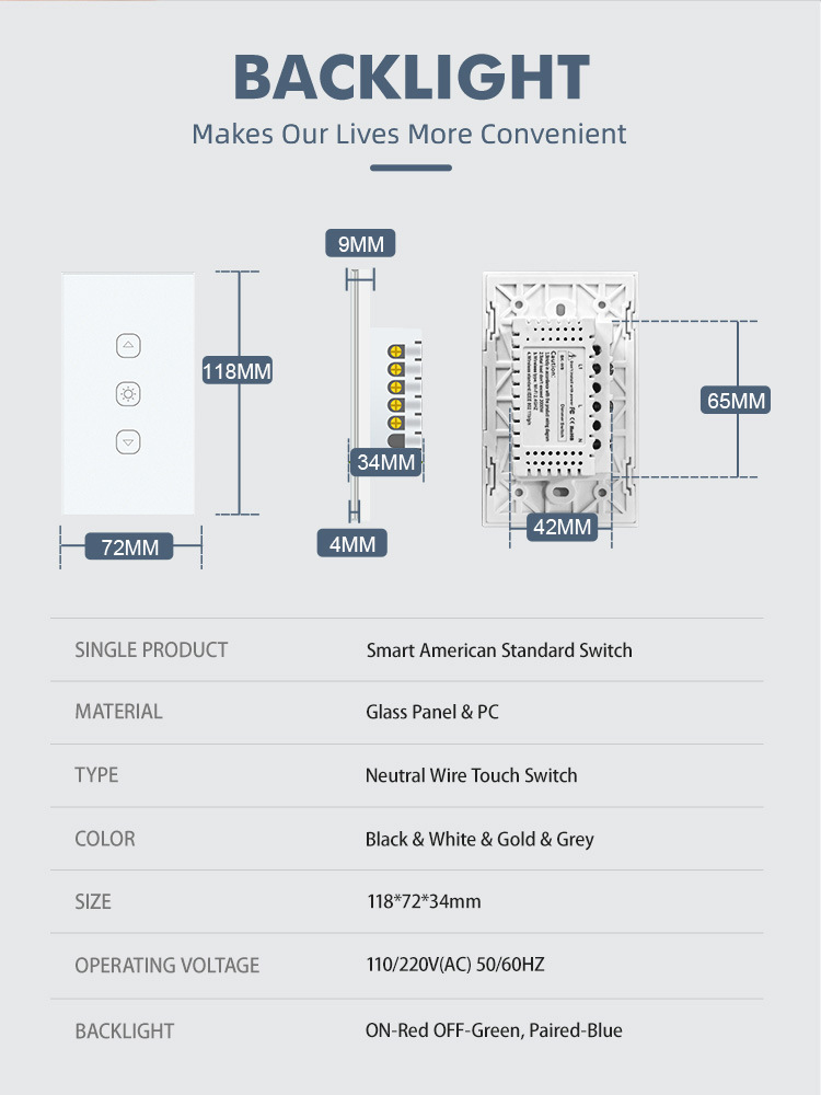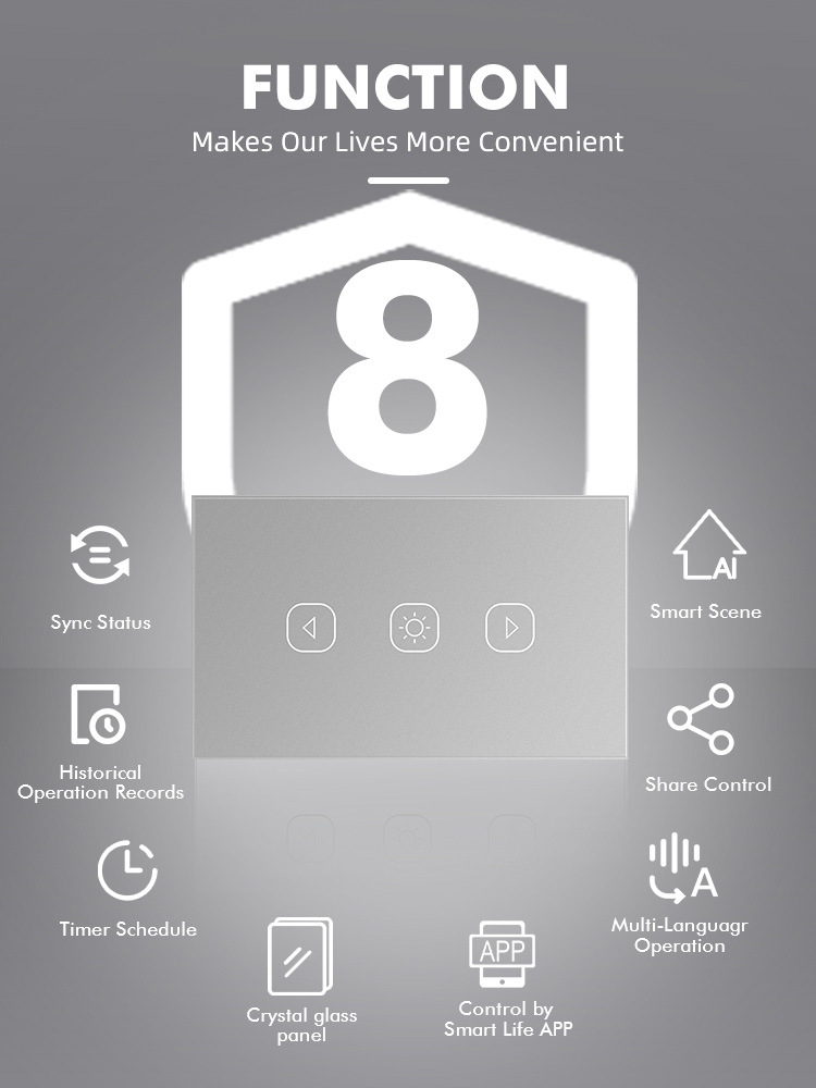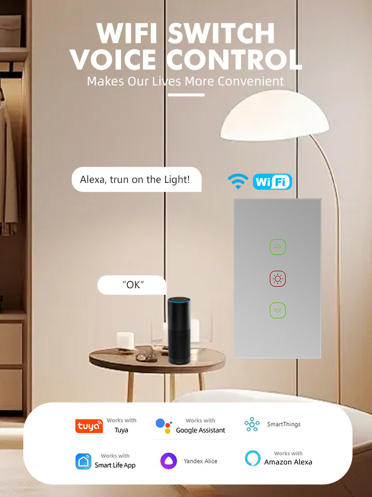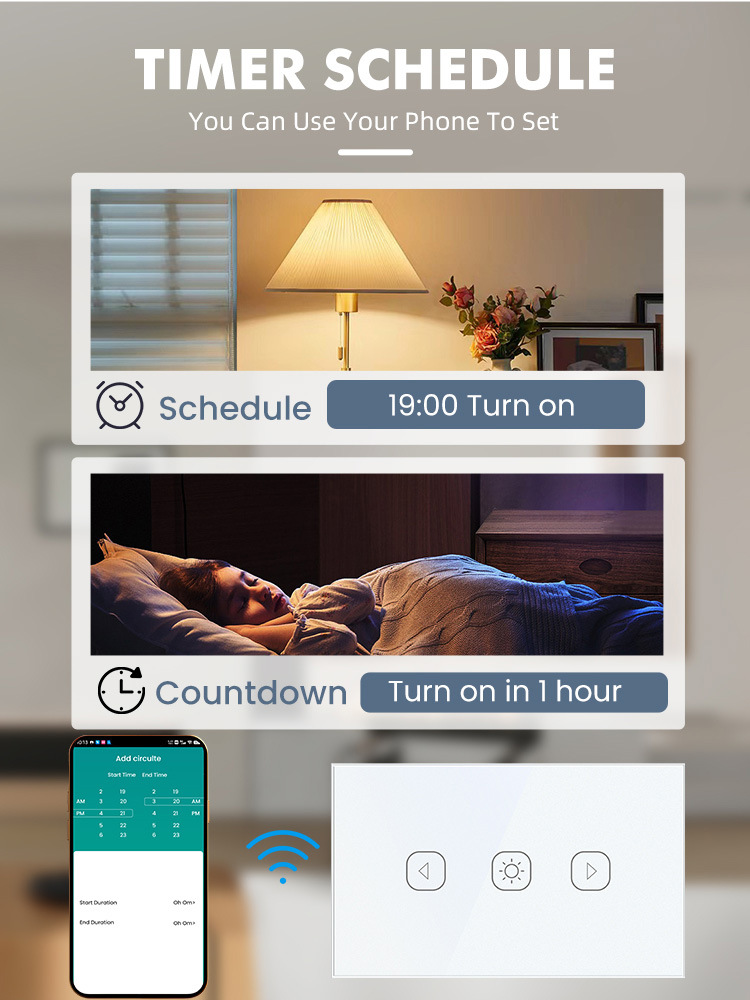 美规WiFi智能触摸调光开关面板alexa语音远程控制涂鸦APP智能开关