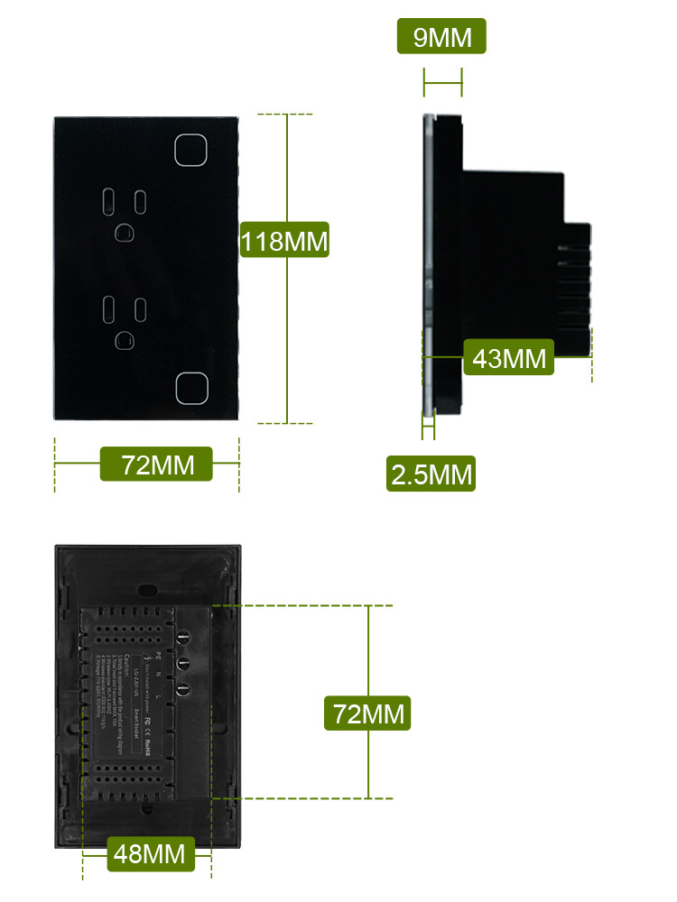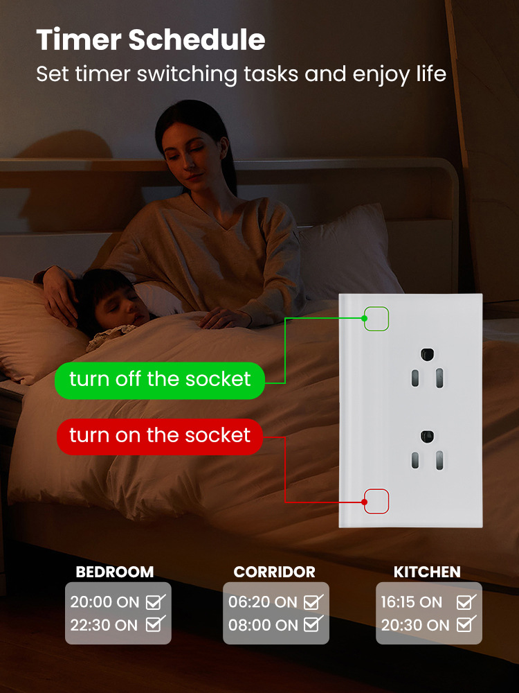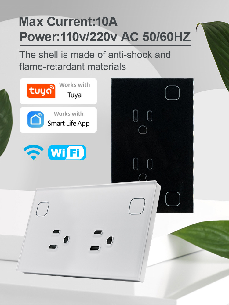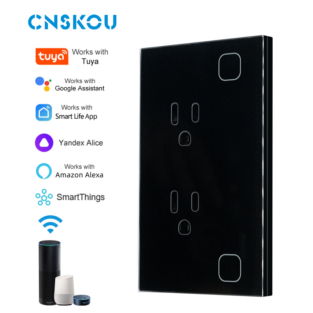 118型美标插座WIFI/Zigbee涂鸦智能插座玻璃面板远程手机Tuya双插