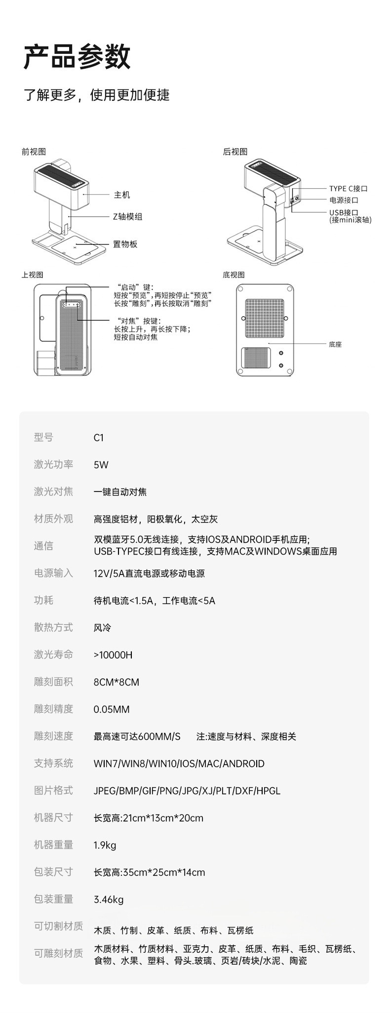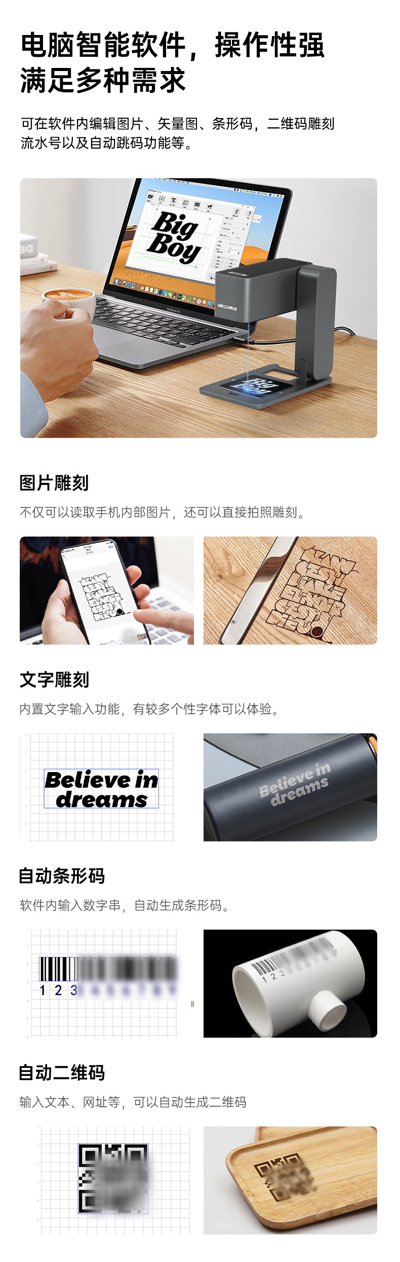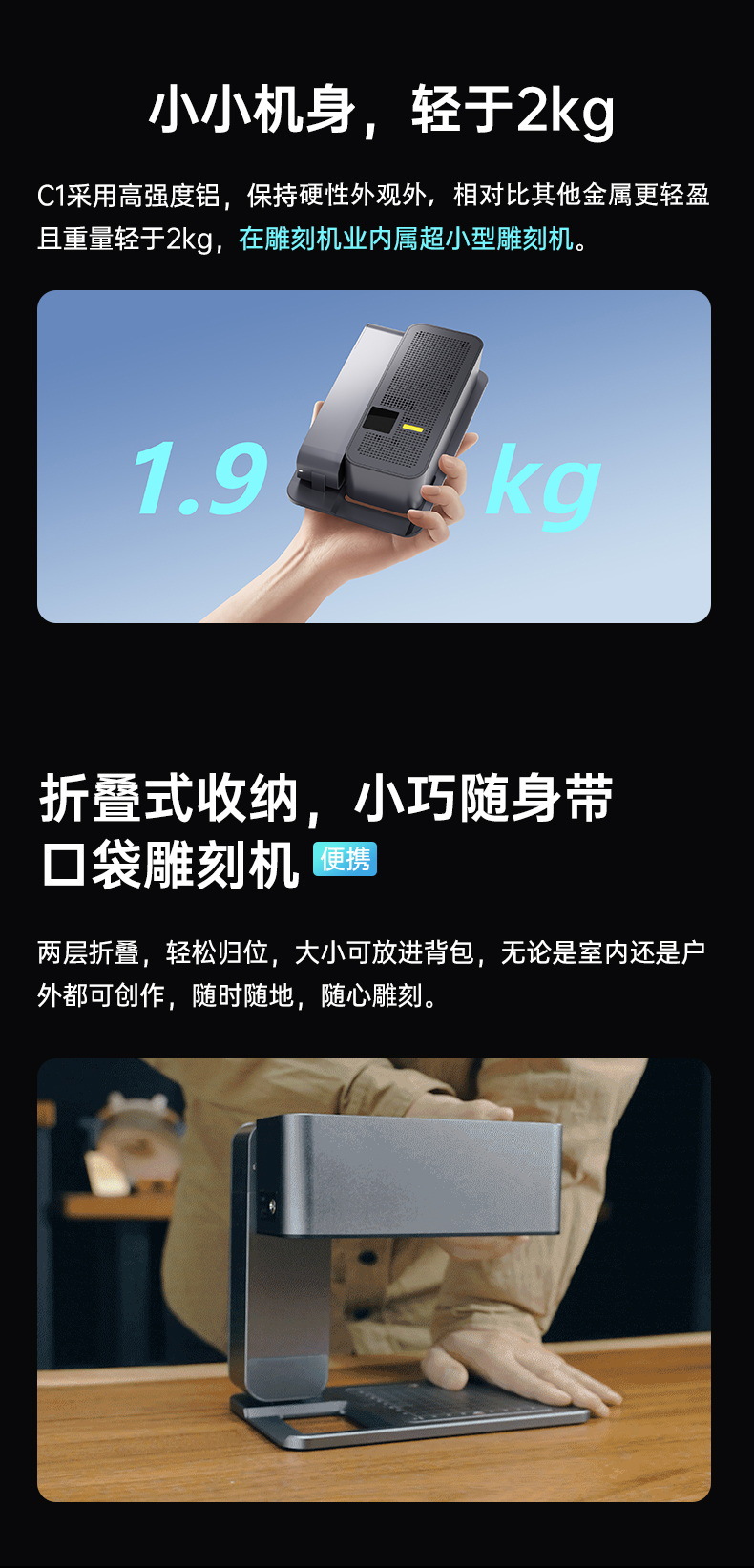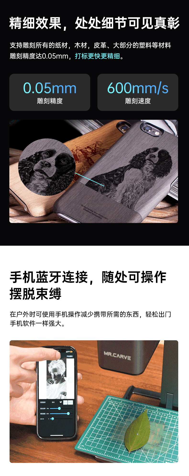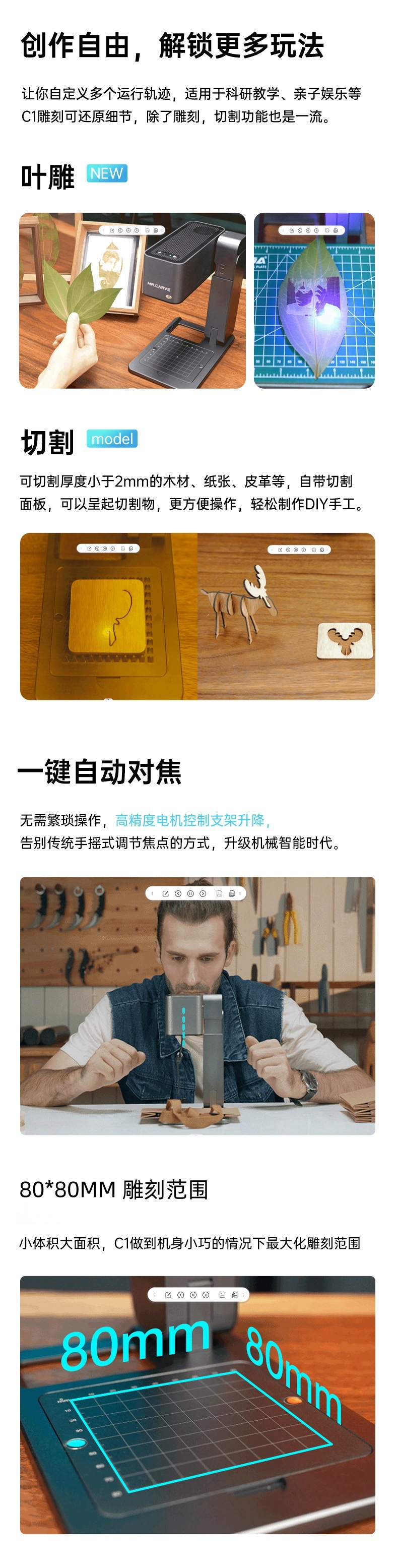 MRCARVE C1激光雕刻机迷你小型便携式可折叠叶雕机木头皮革切割机