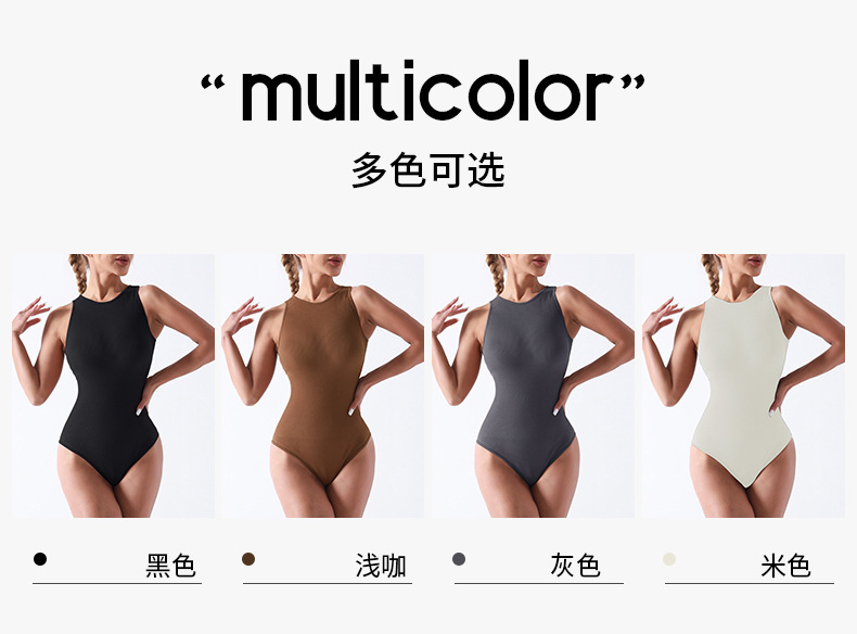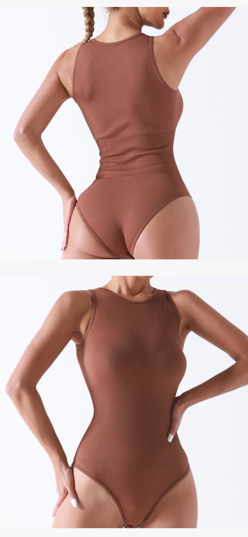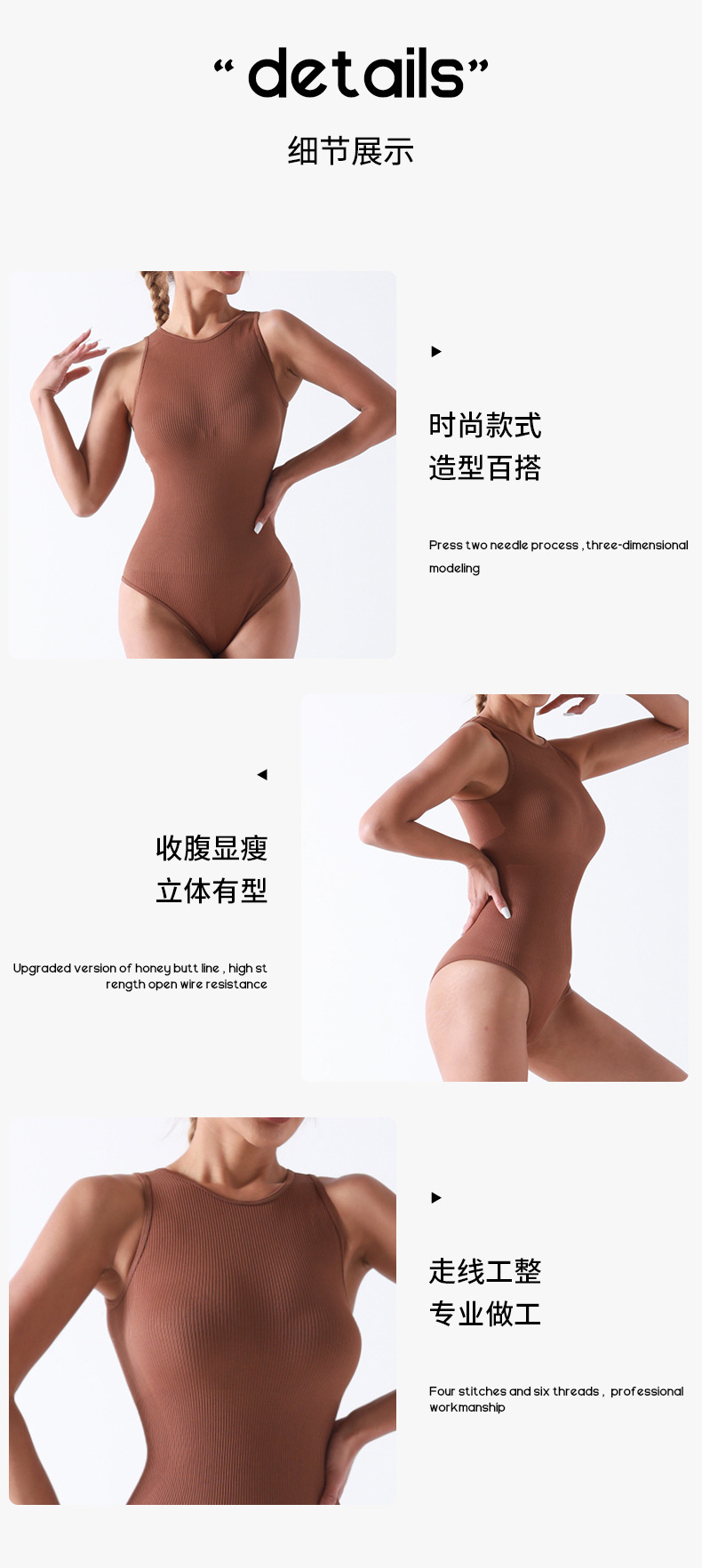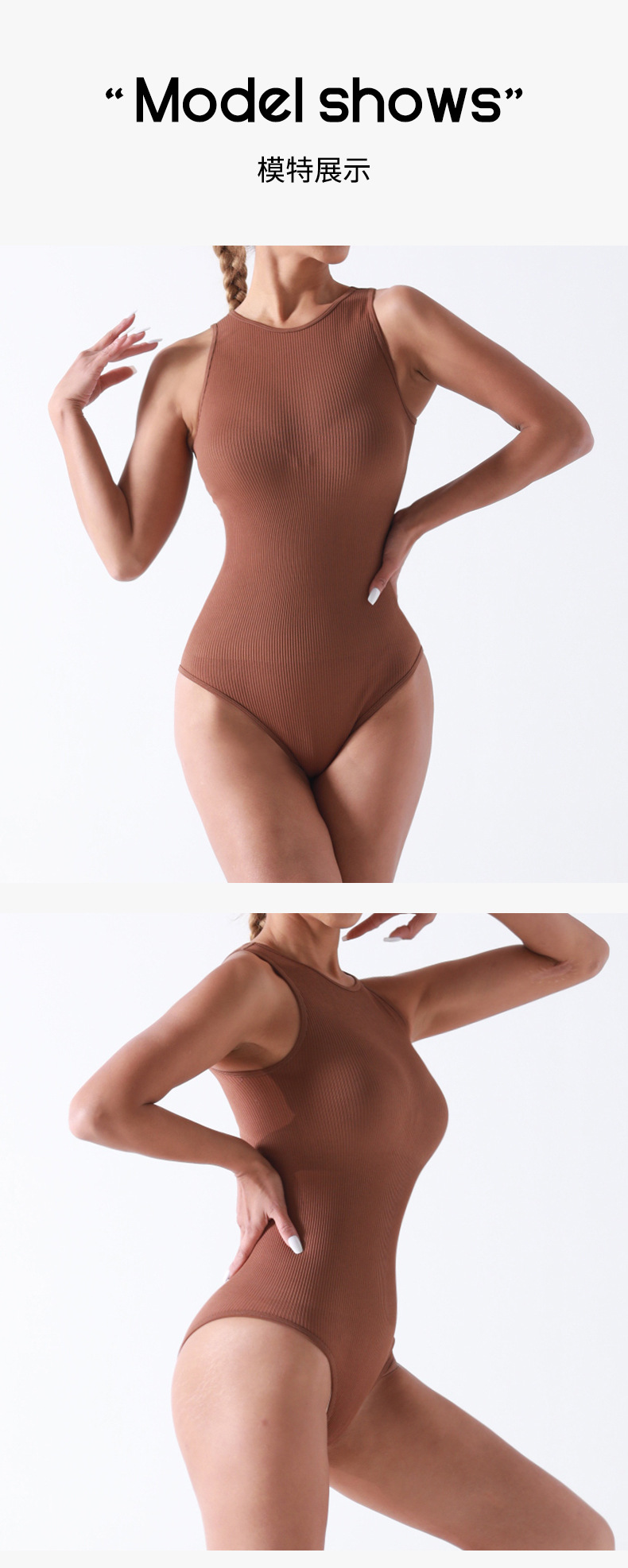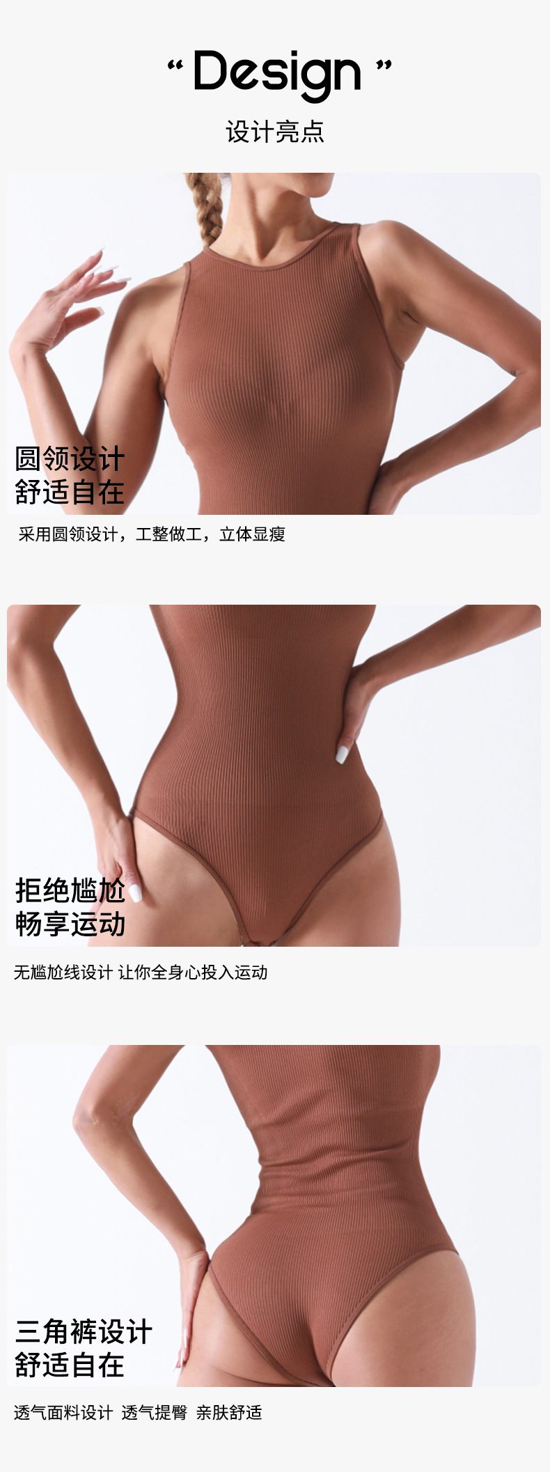 欧美无缝连体瑜伽服无袖连体塑身衣健身中强度训练瑜伽上衣连体服