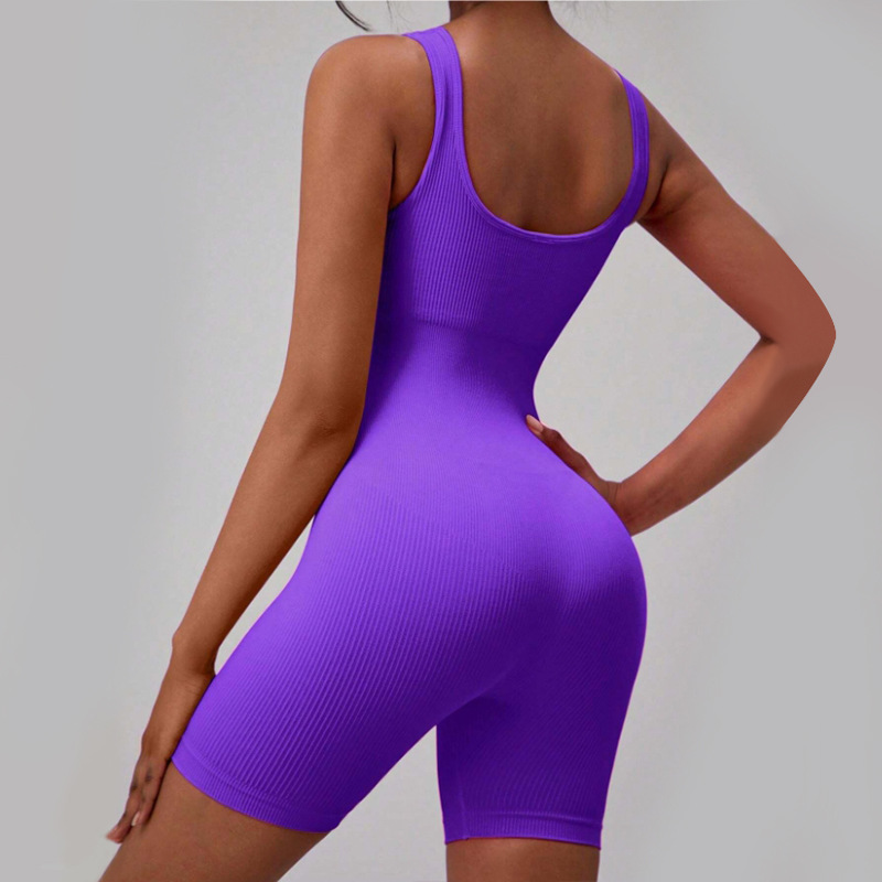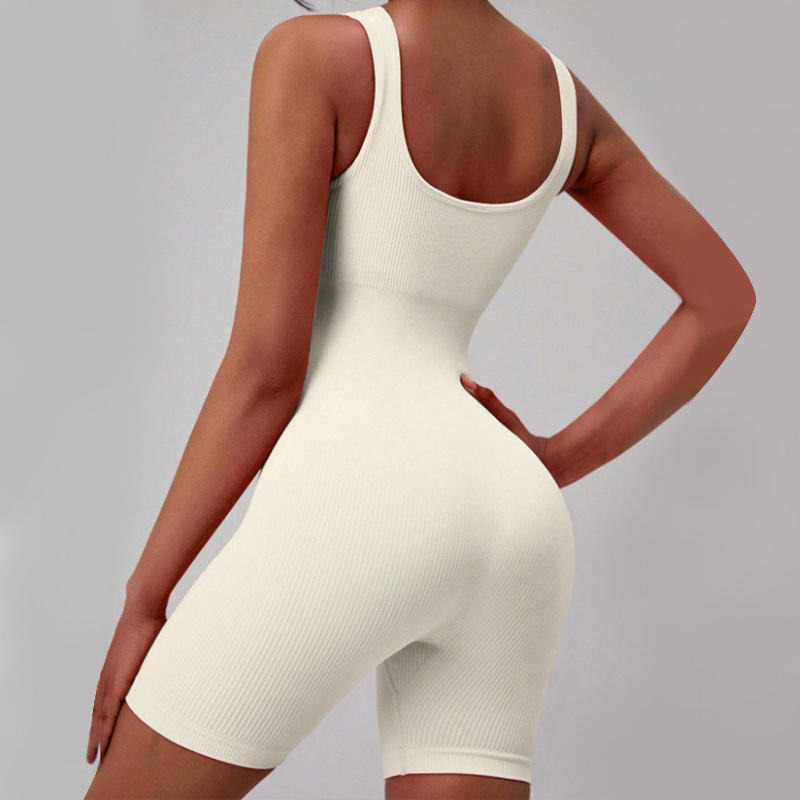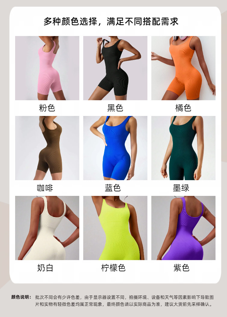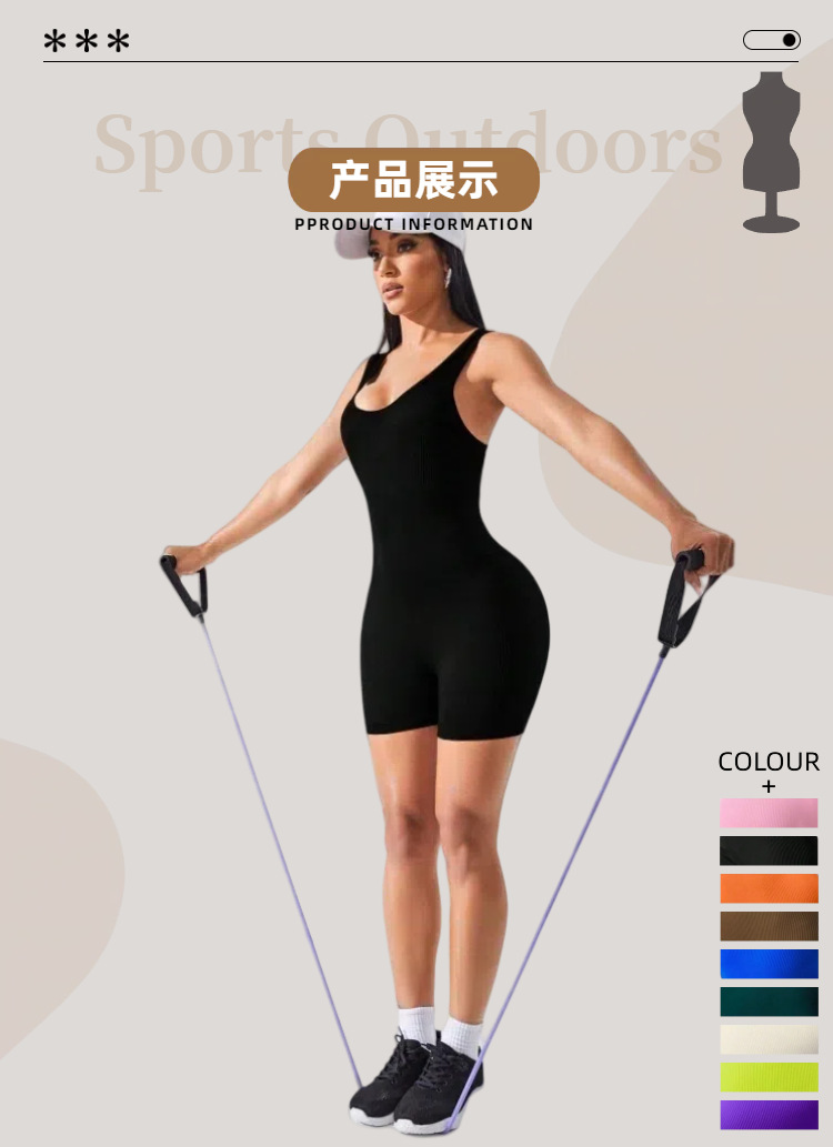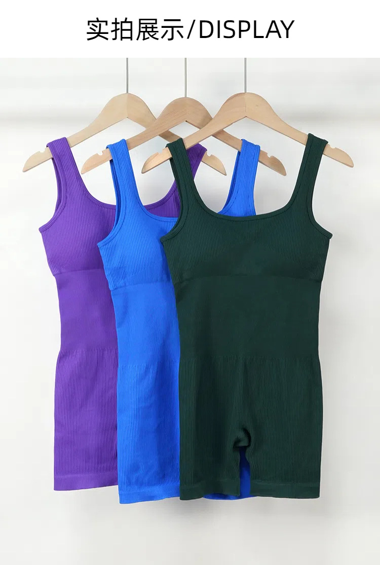 跨境无缝针织连体衣螺纹背心短裤瑜伽服健身套装欧美运动紧身衣女