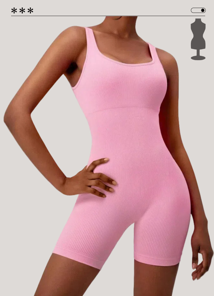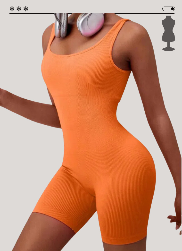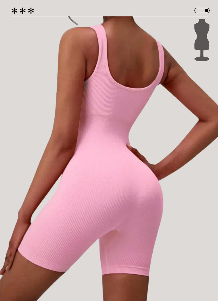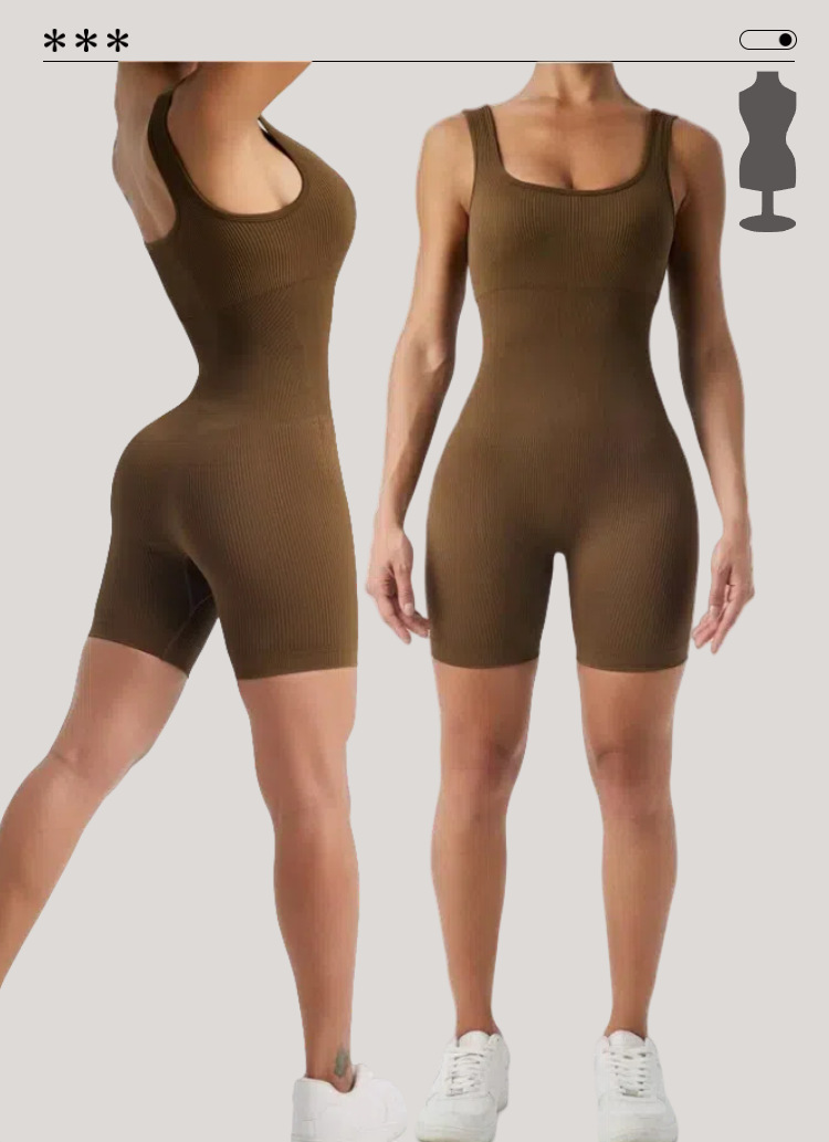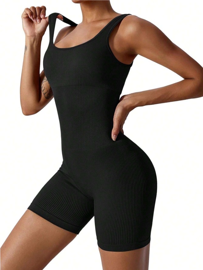 跨境无缝针织连体衣螺纹背心短裤瑜伽服健身套装欧美运动紧身衣女