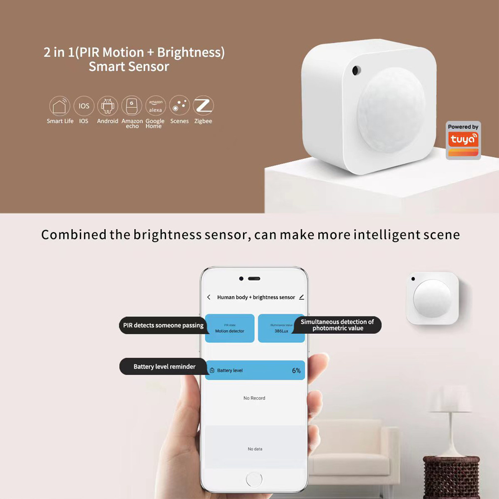 涂鸦智能光度传感器智能家居人体移动感应探测器红外光感探测器