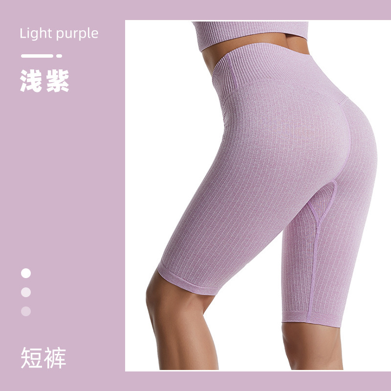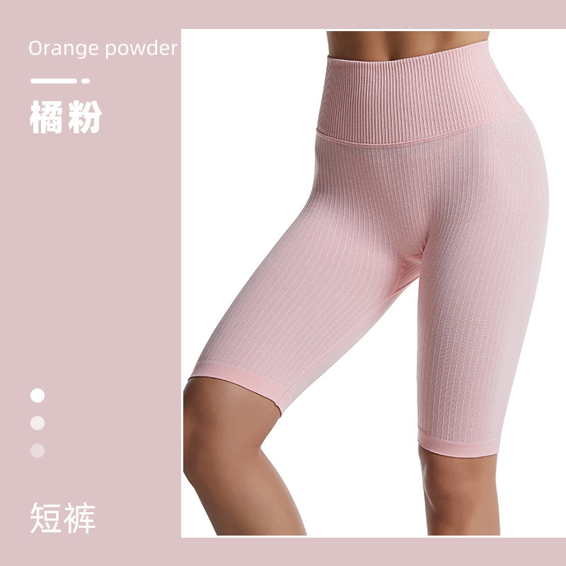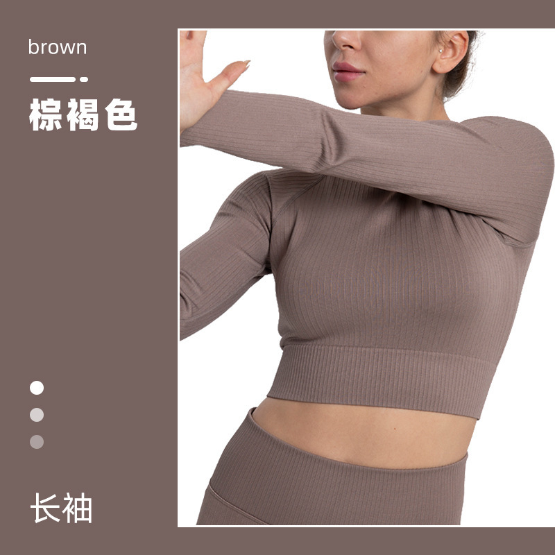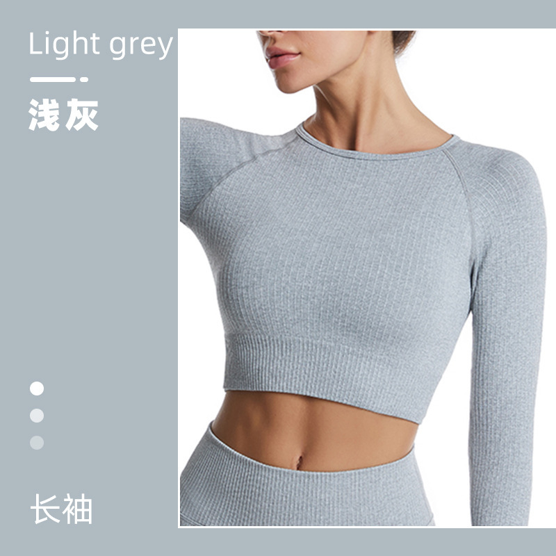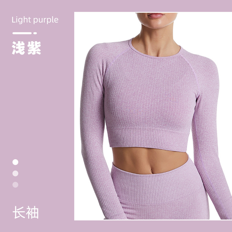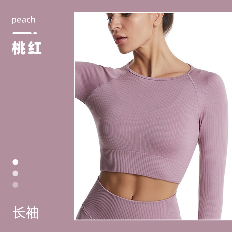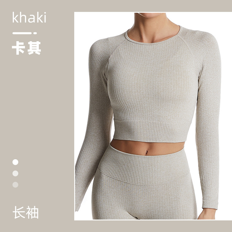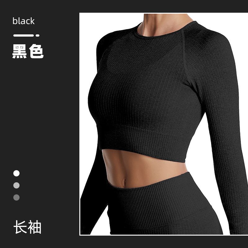 跨境螺纹瑜伽服女运动上衣夏季紧身速干衣女跑步健身短袖套装批发