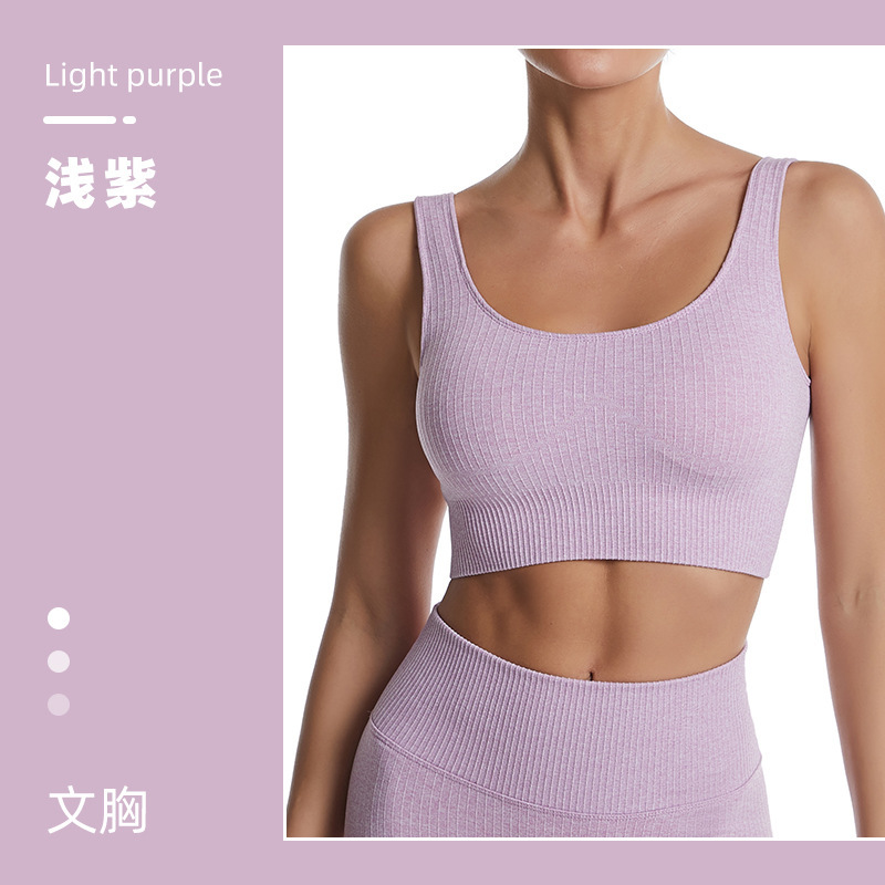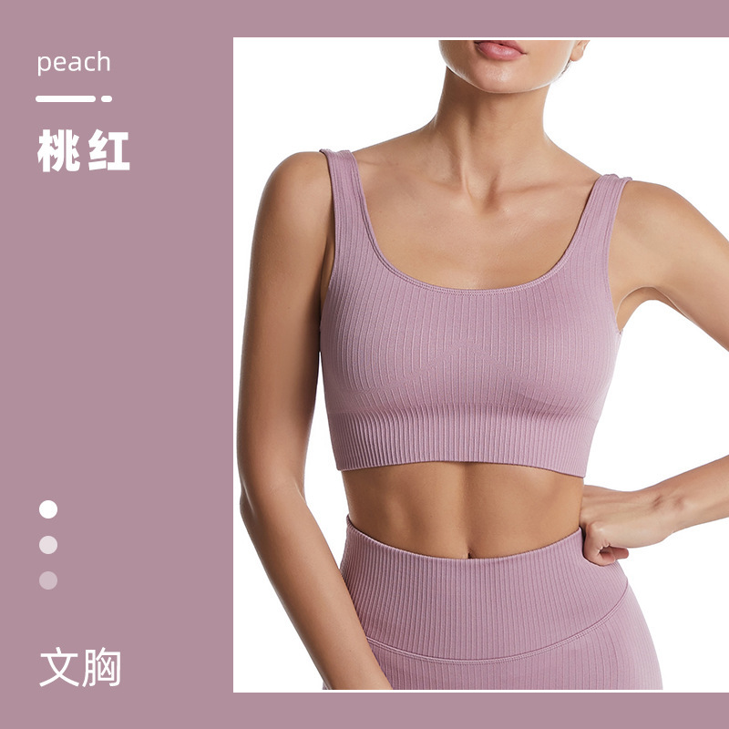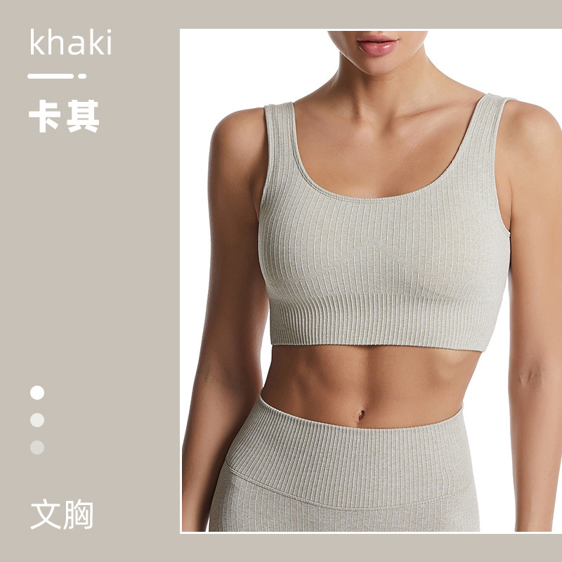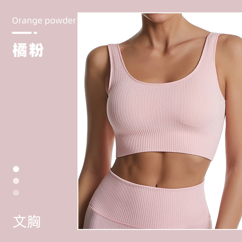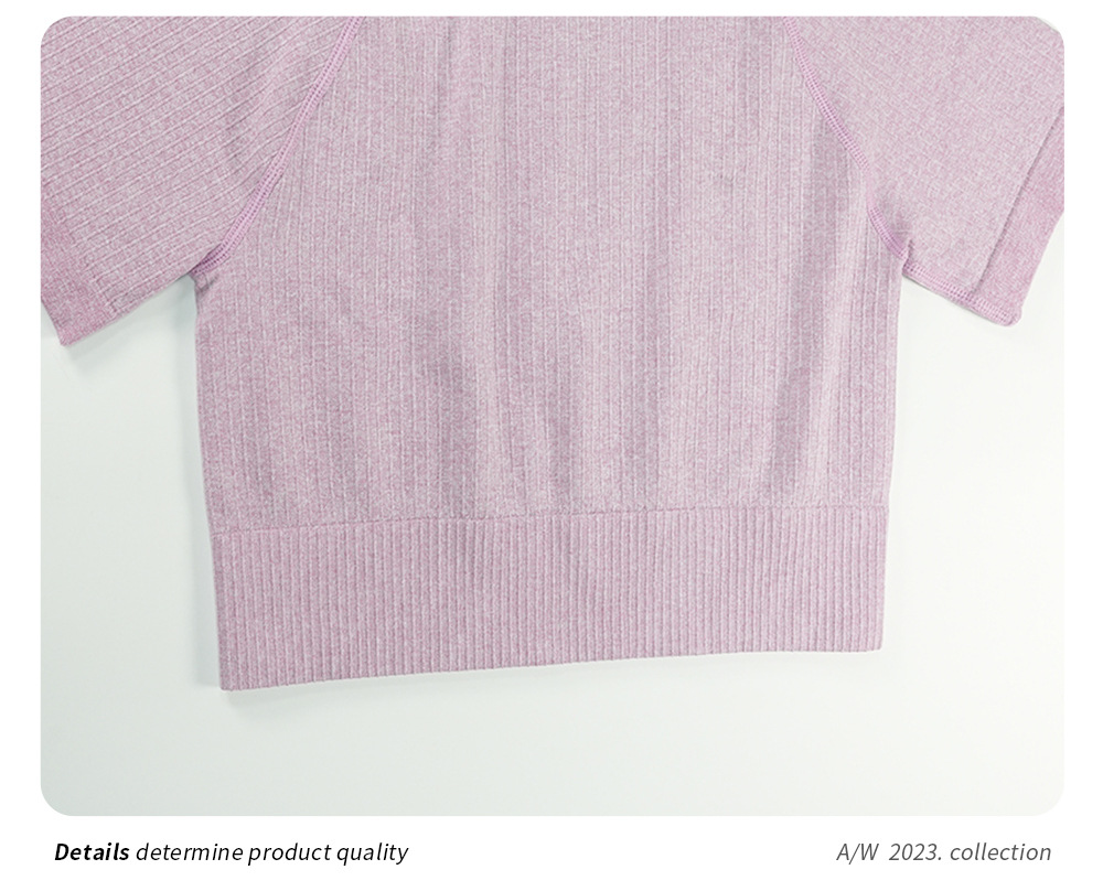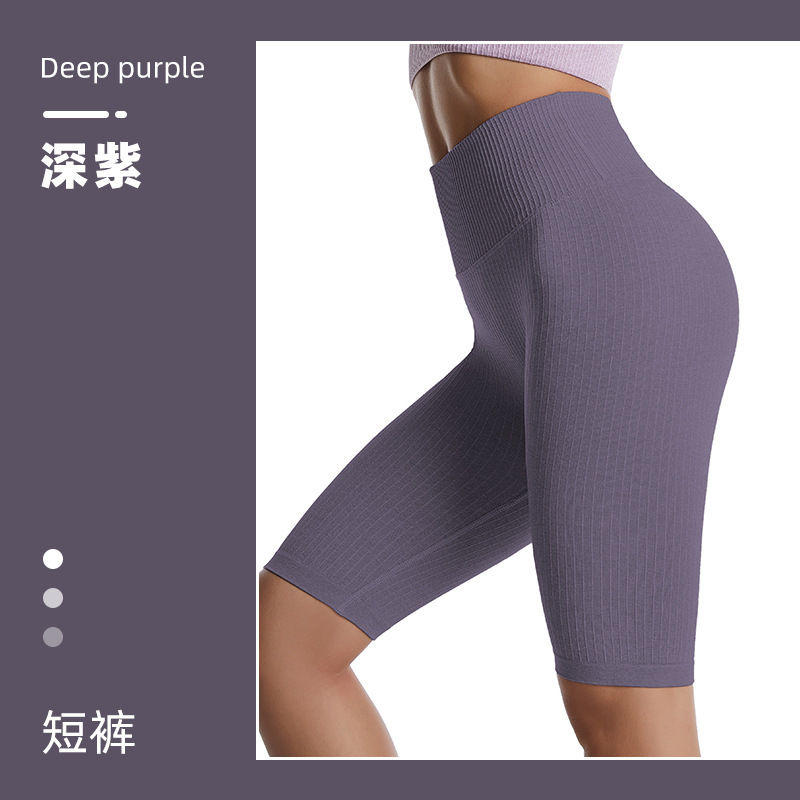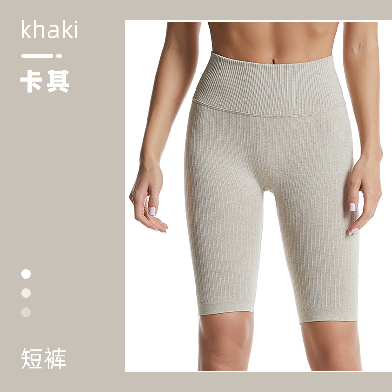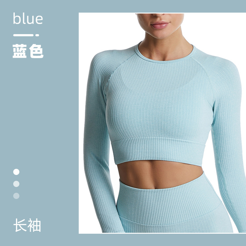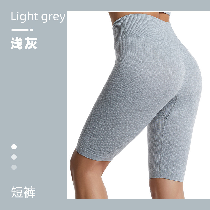 跨境螺纹瑜伽服女运动上衣夏季紧身速干衣女跑步健身短袖套装批发
