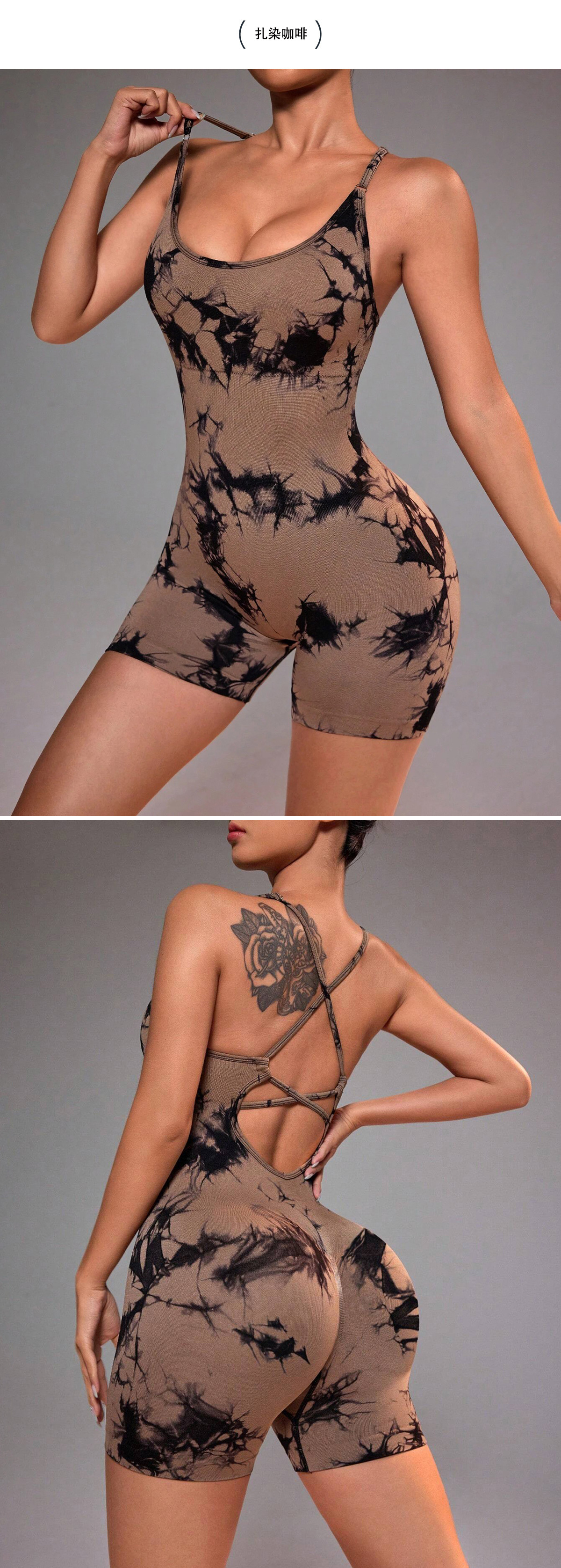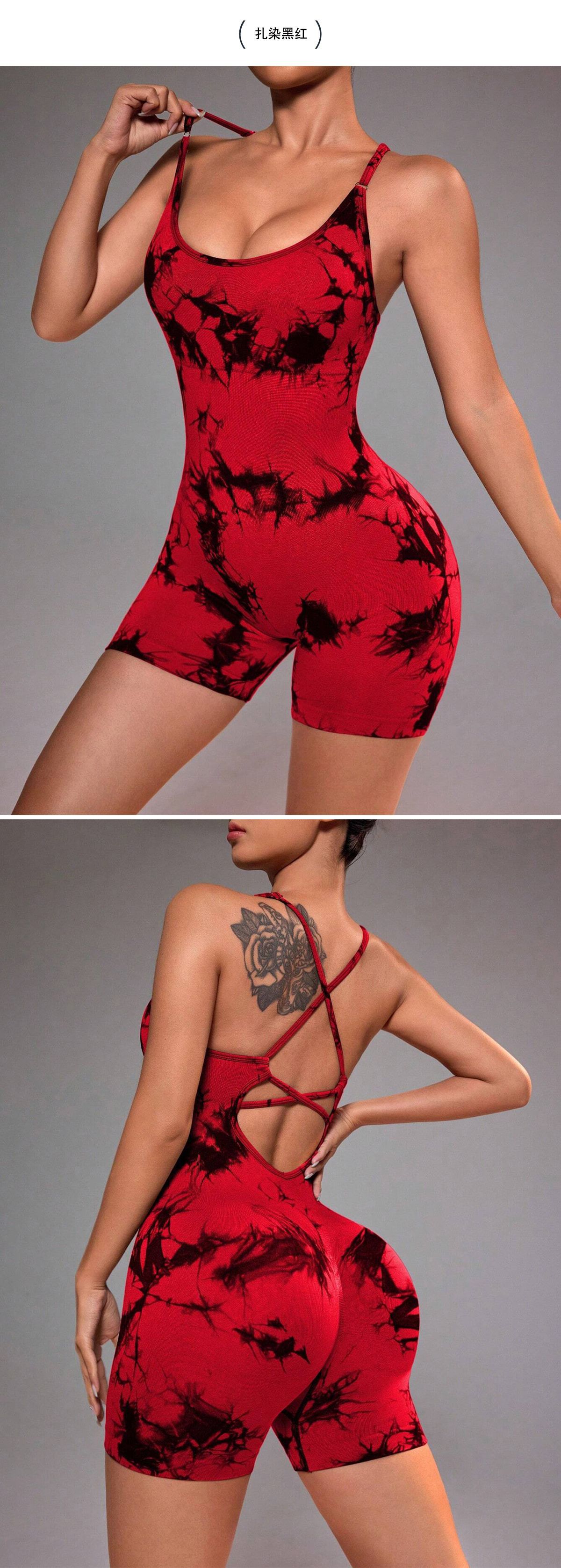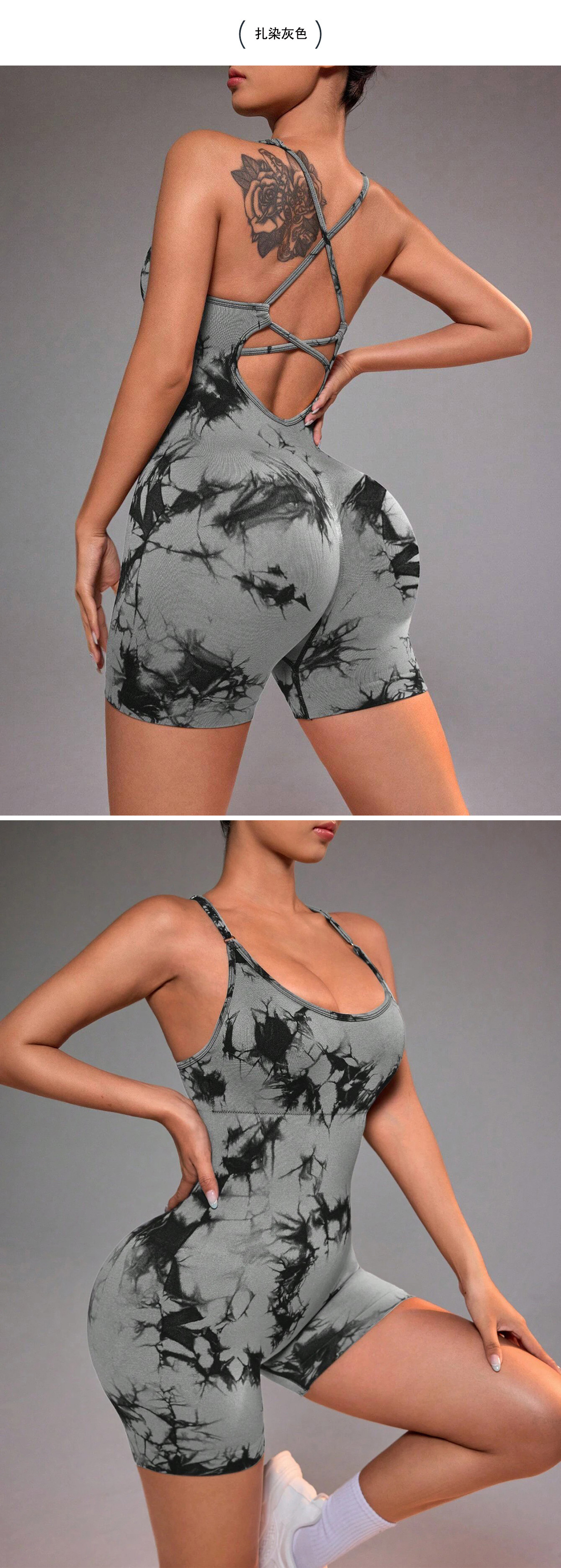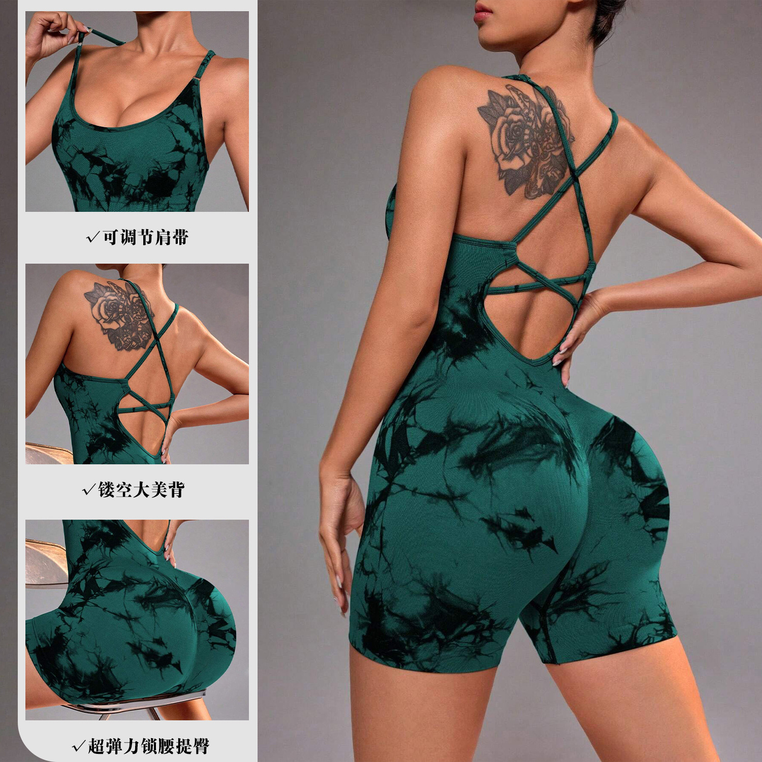 跨境无缝扎染细带美背瑜伽服吊带高腰提臀紧身一体衣运动健身服女