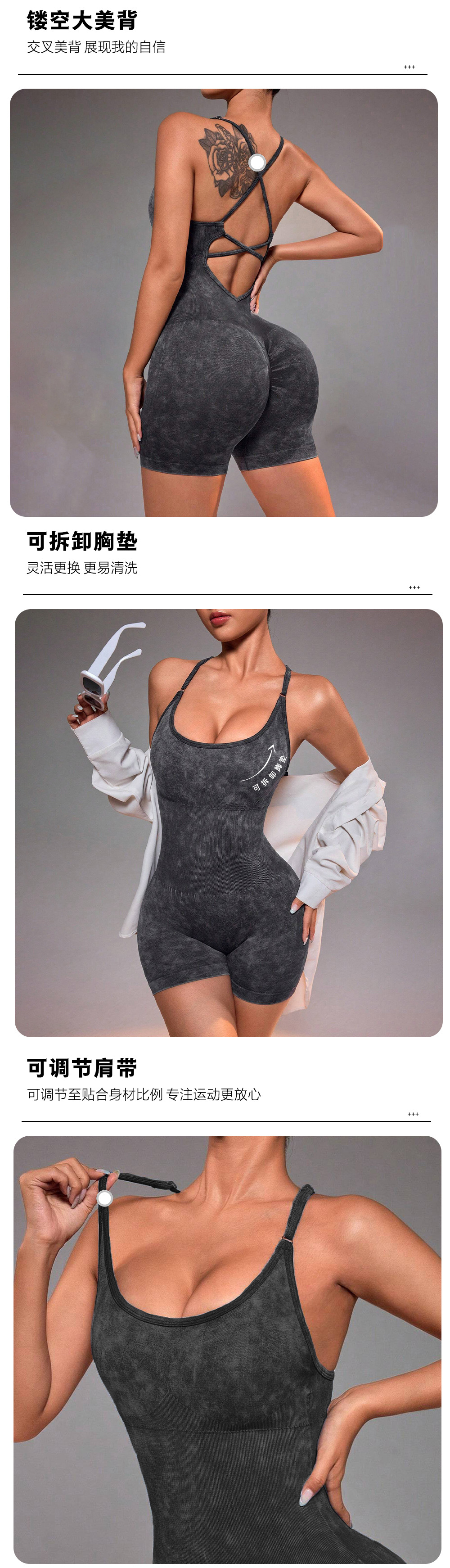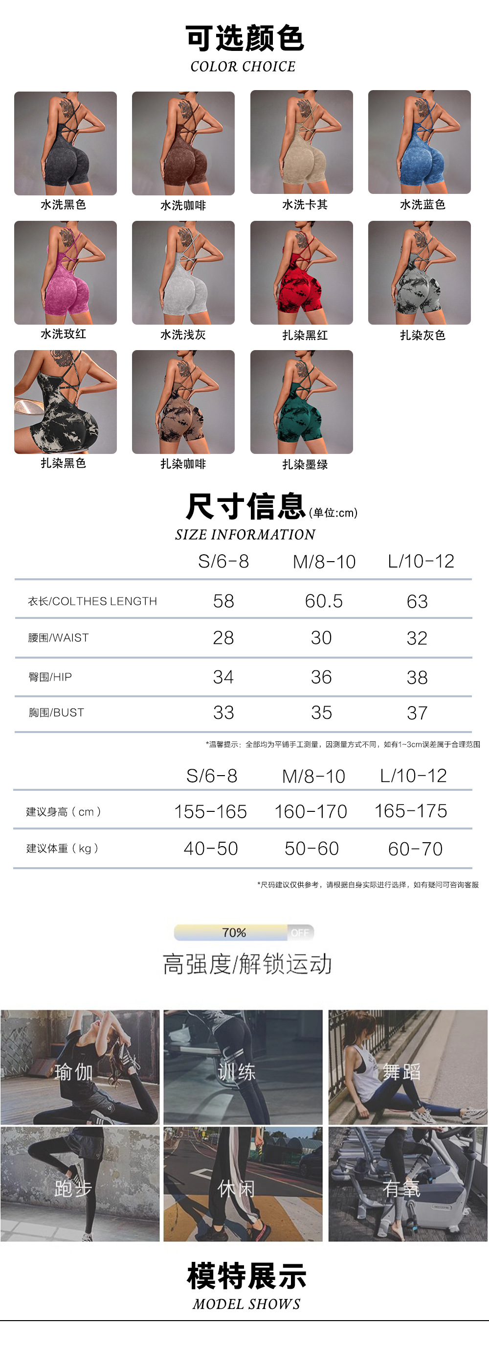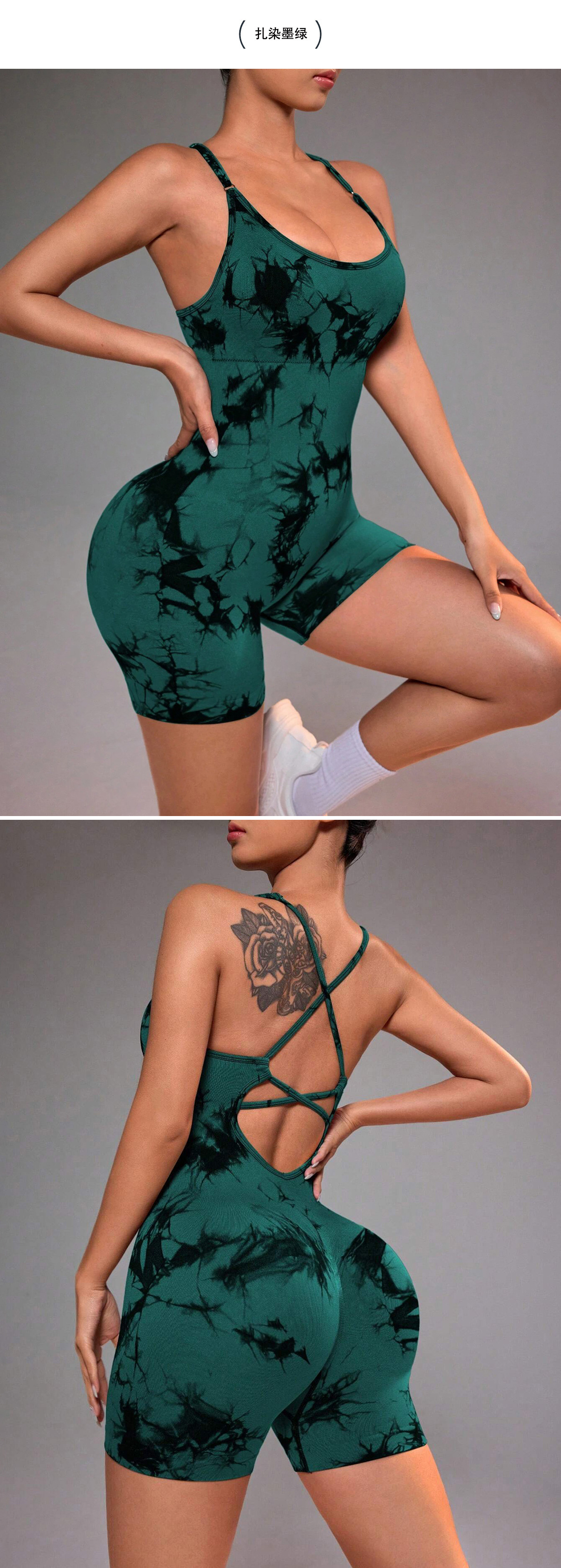 跨境无缝扎染细带美背瑜伽服吊带高腰提臀紧身一体衣运动健身服女