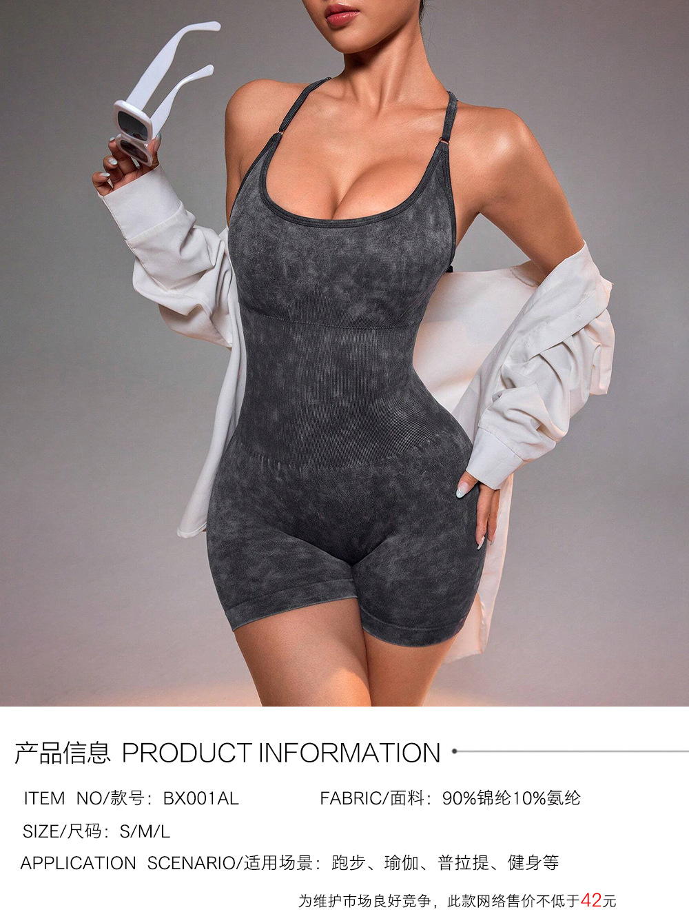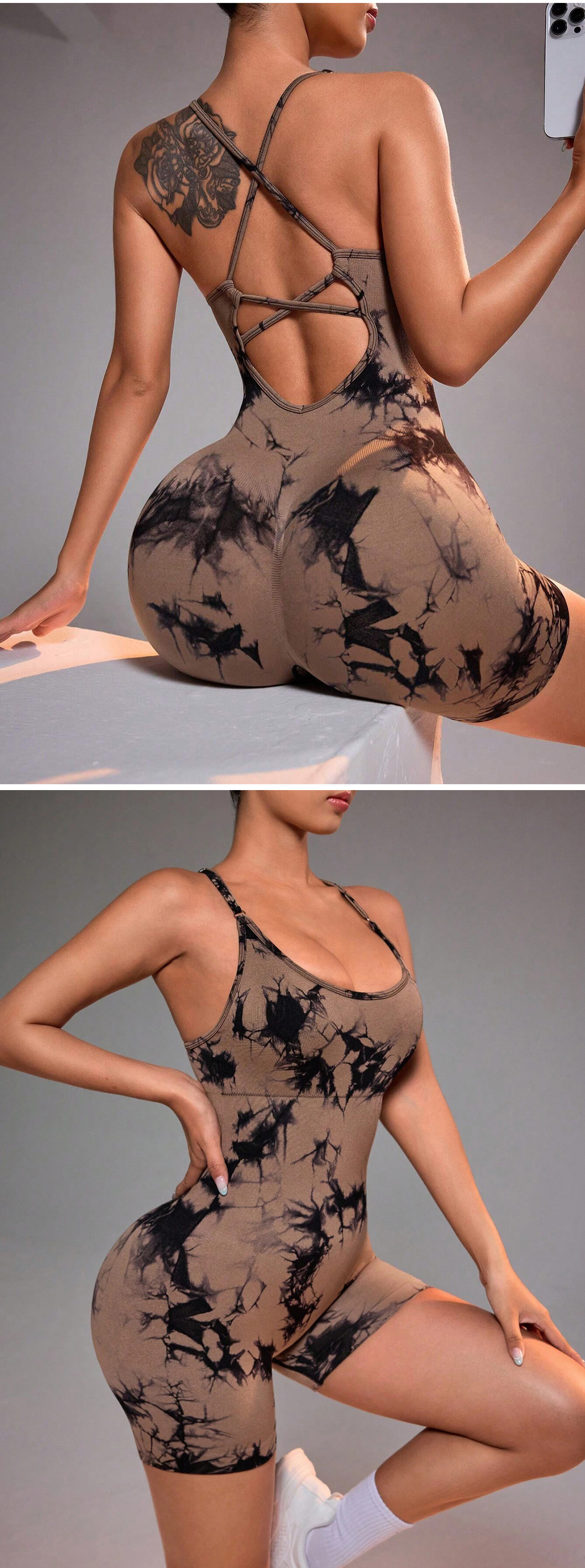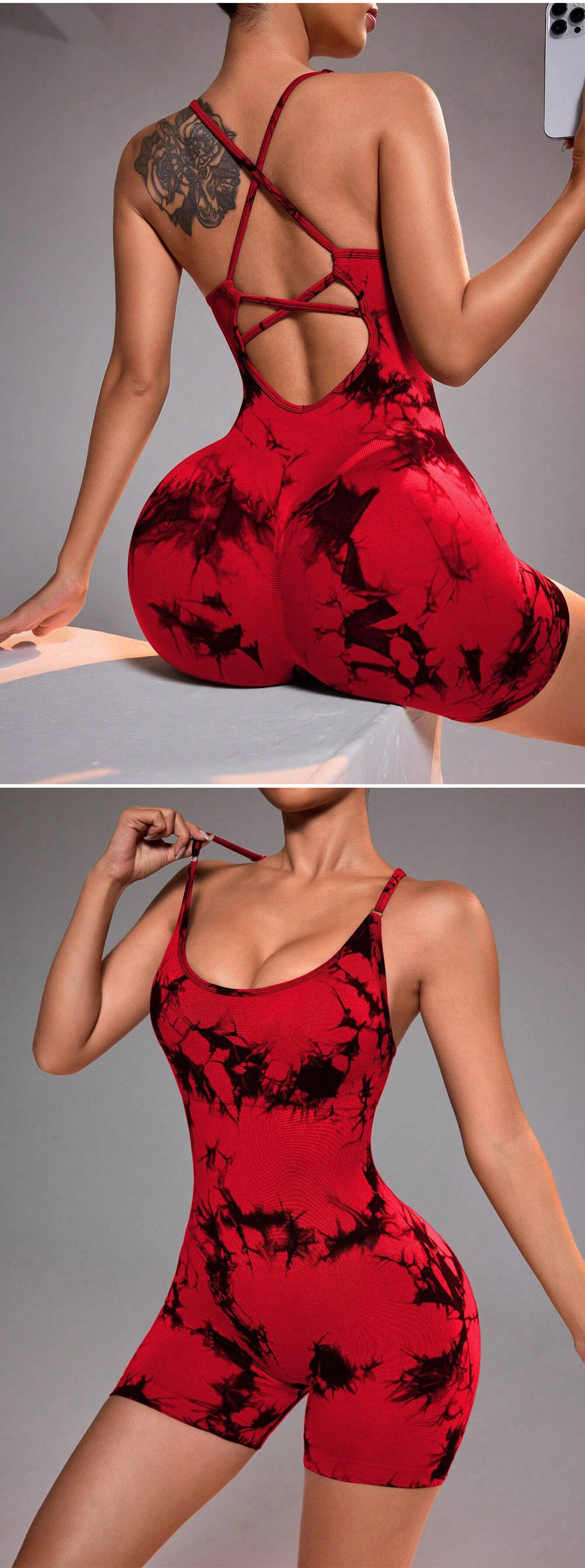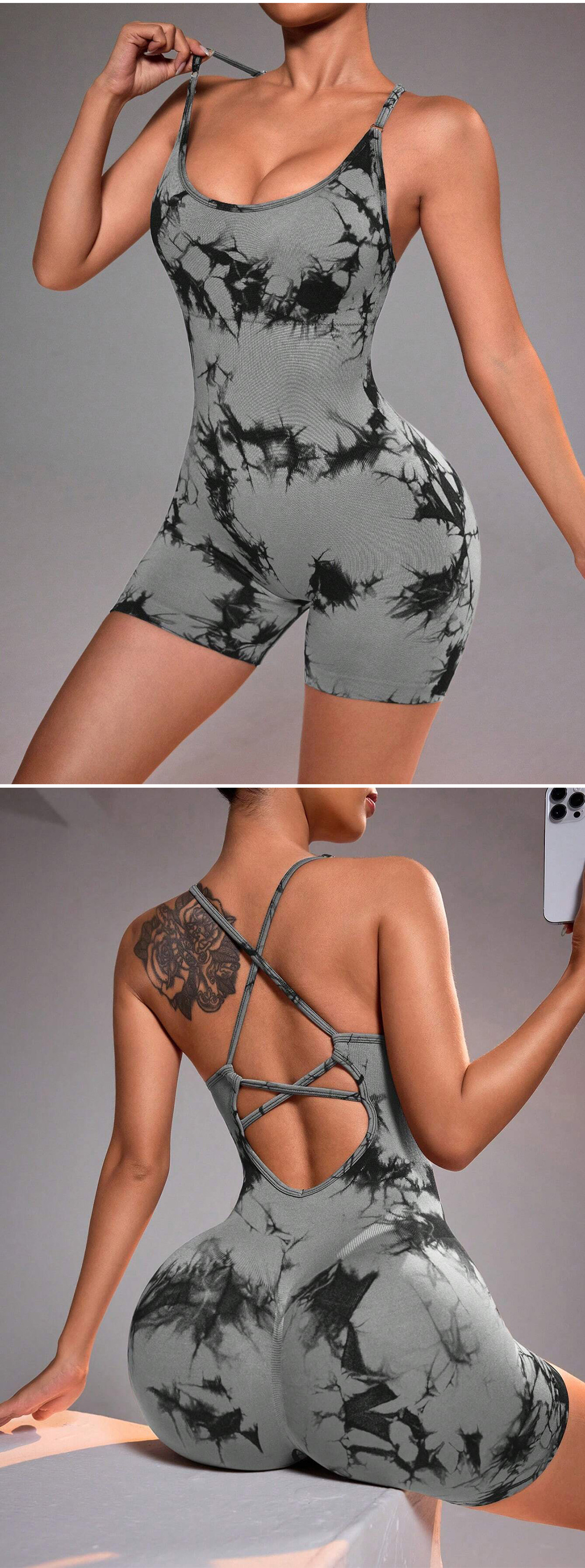 跨境无缝扎染细带美背瑜伽服吊带高腰提臀紧身一体衣运动健身服女