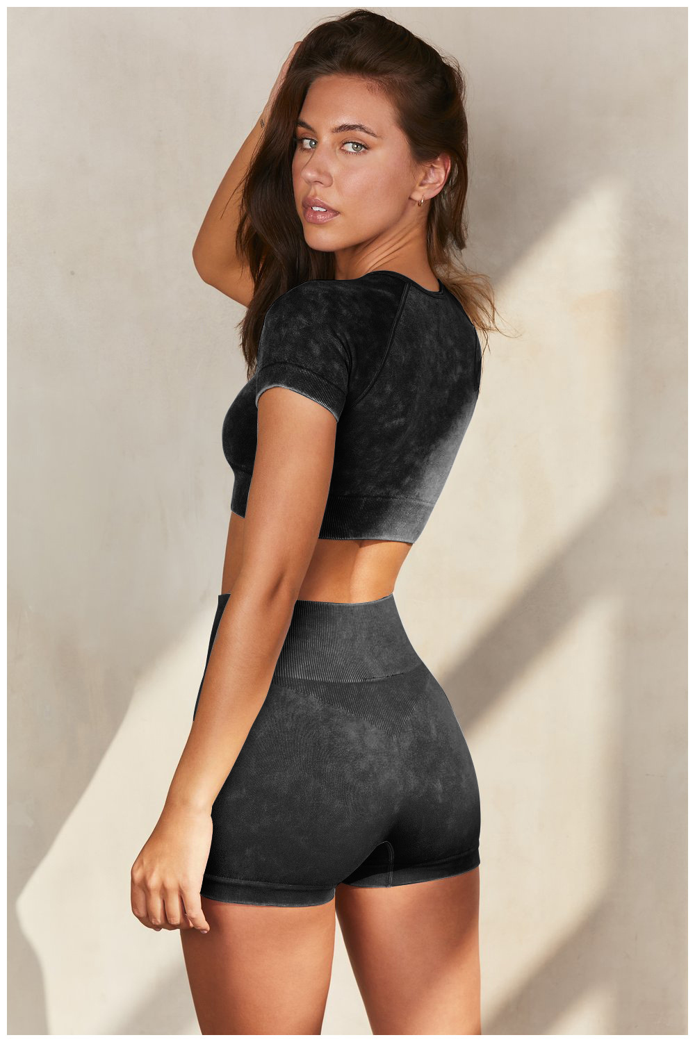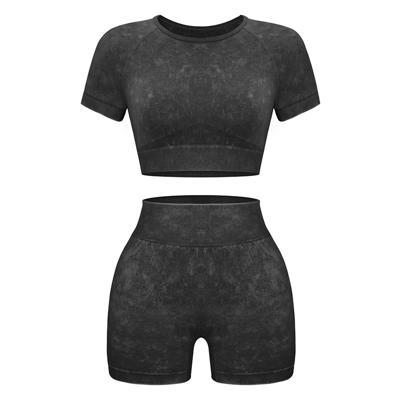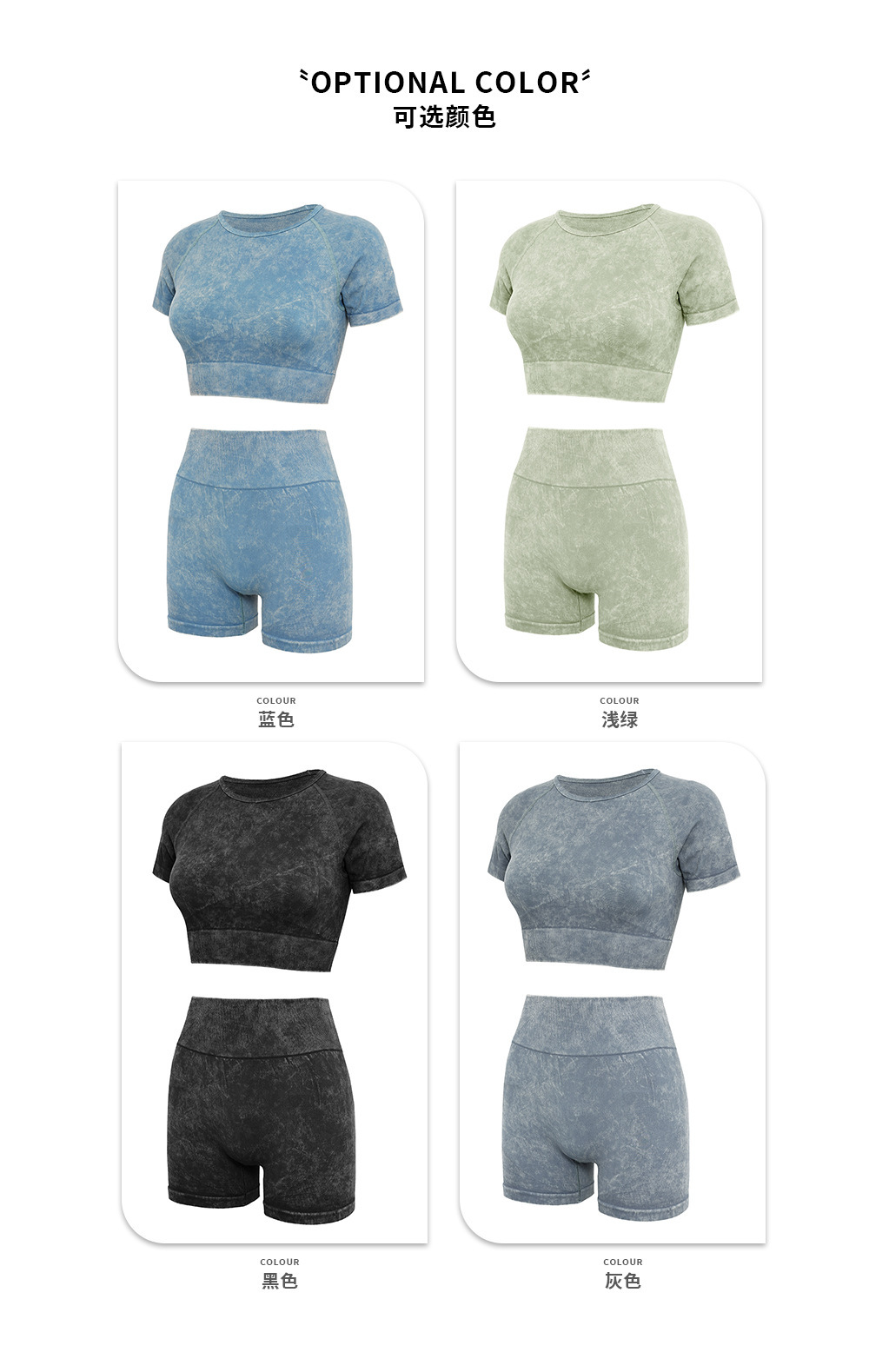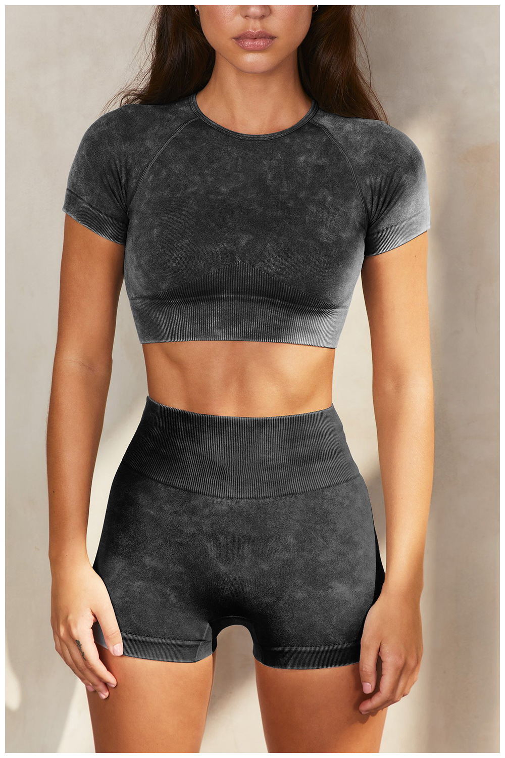 跨境欧美瑜伽服套装女两件套高级短袖夏季运动短裤健身服装女套装