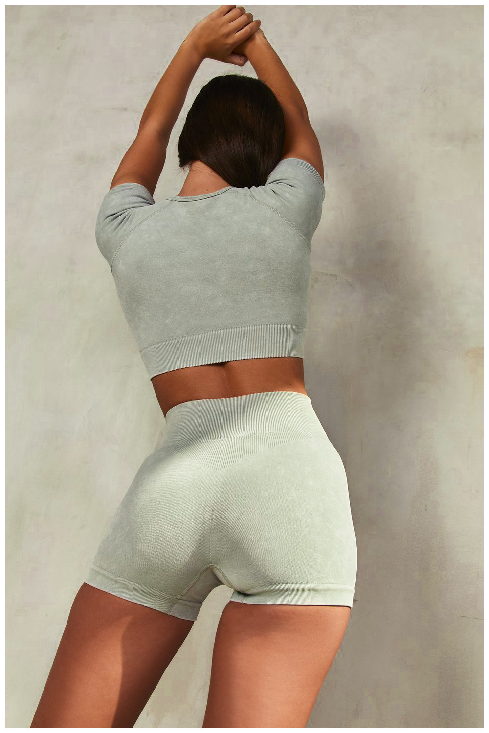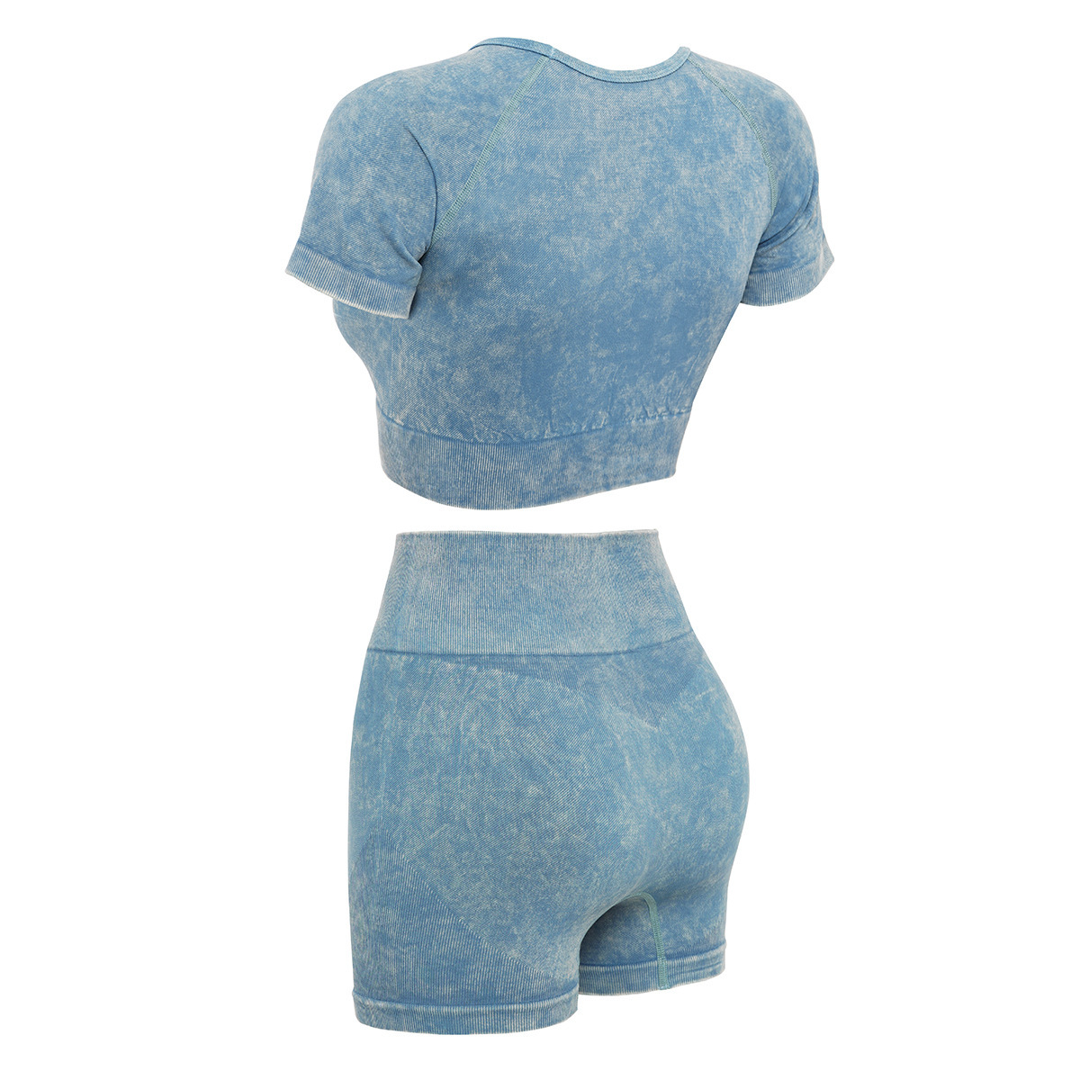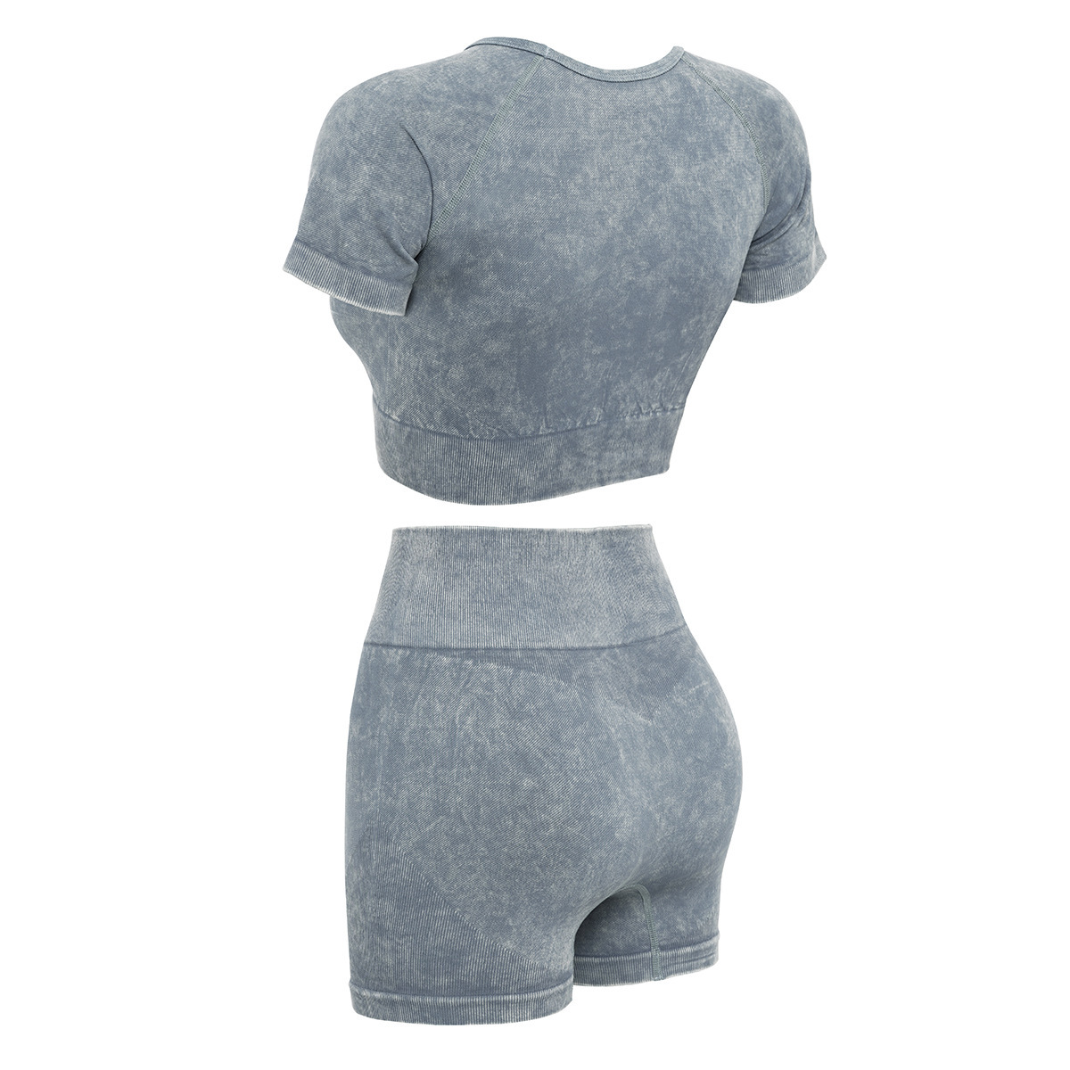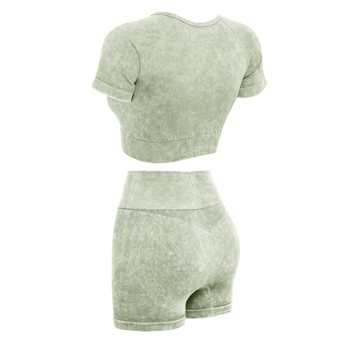 跨境欧美瑜伽服套装女两件套高级短袖夏季运动短裤健身服装女套装