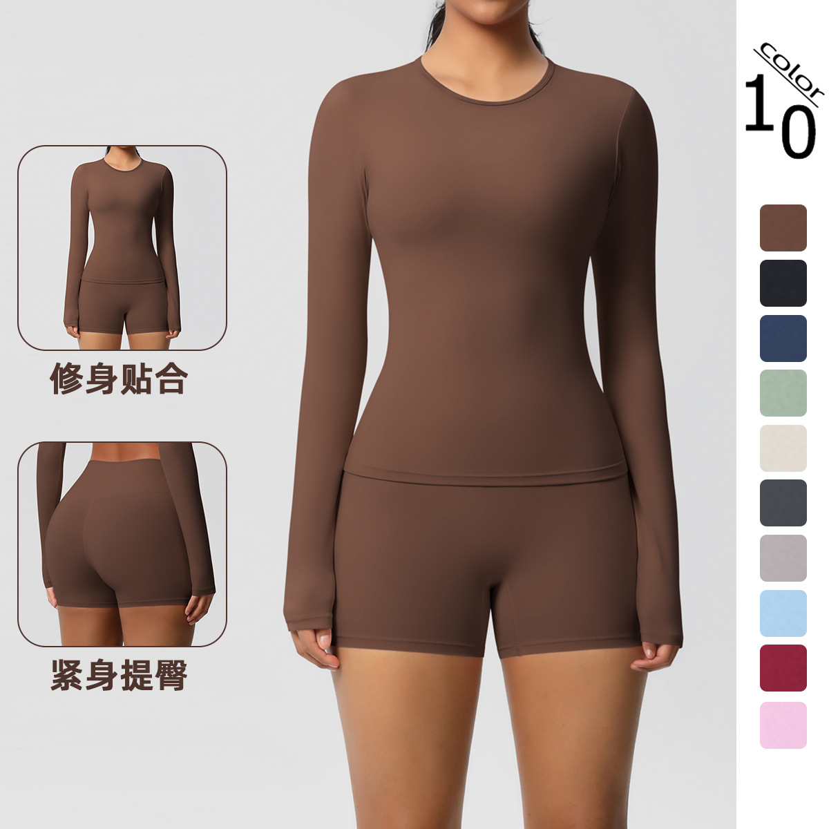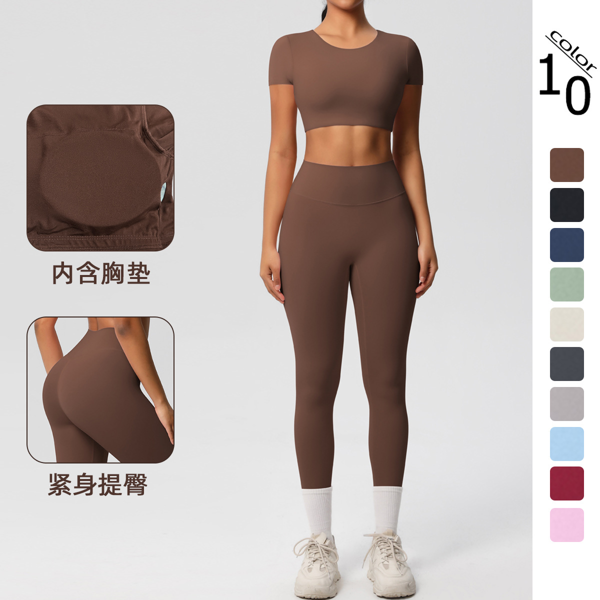 新款跨境欧美纯色双面磨毛透气紧身瑜伽服套装运动跑步健身八件套