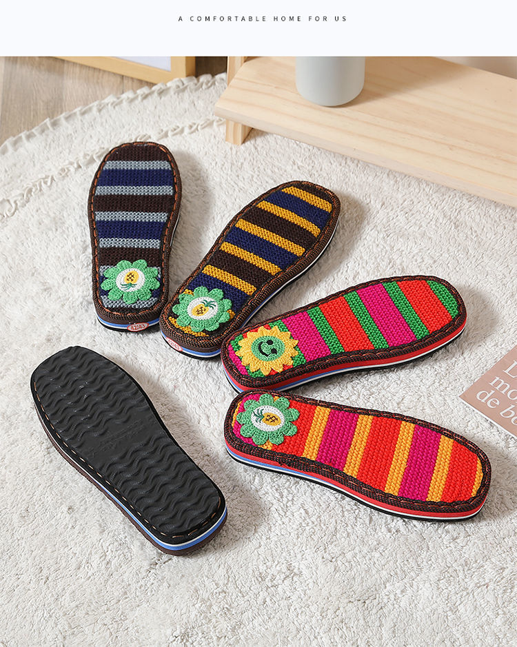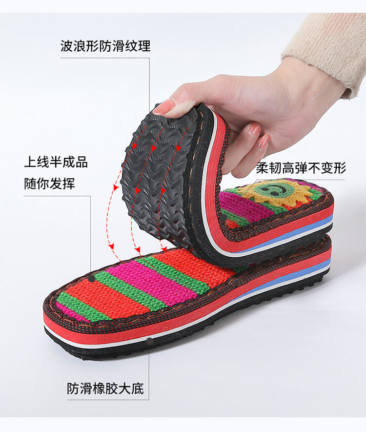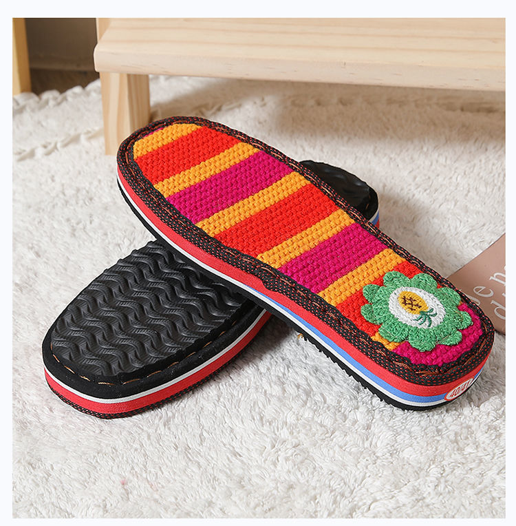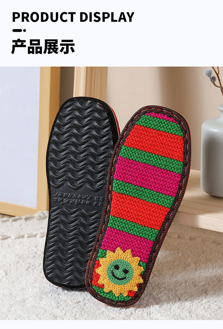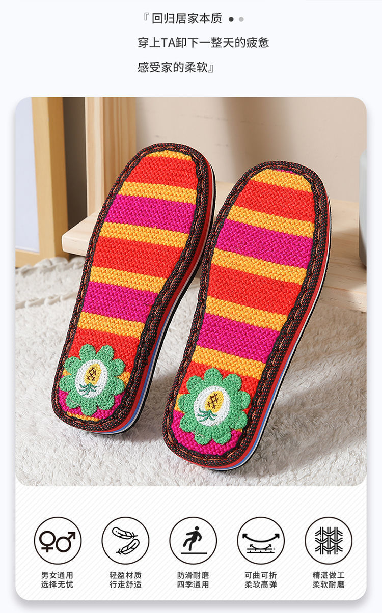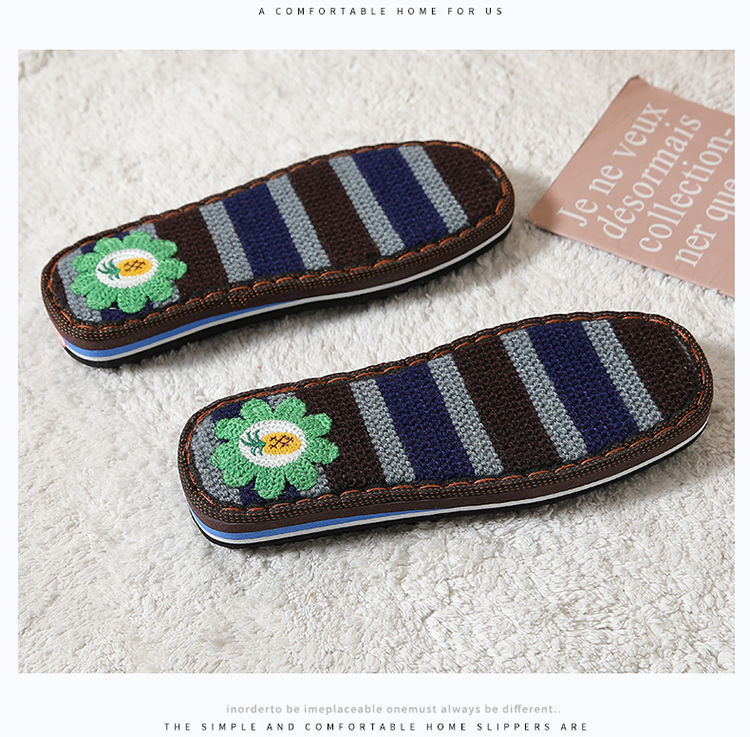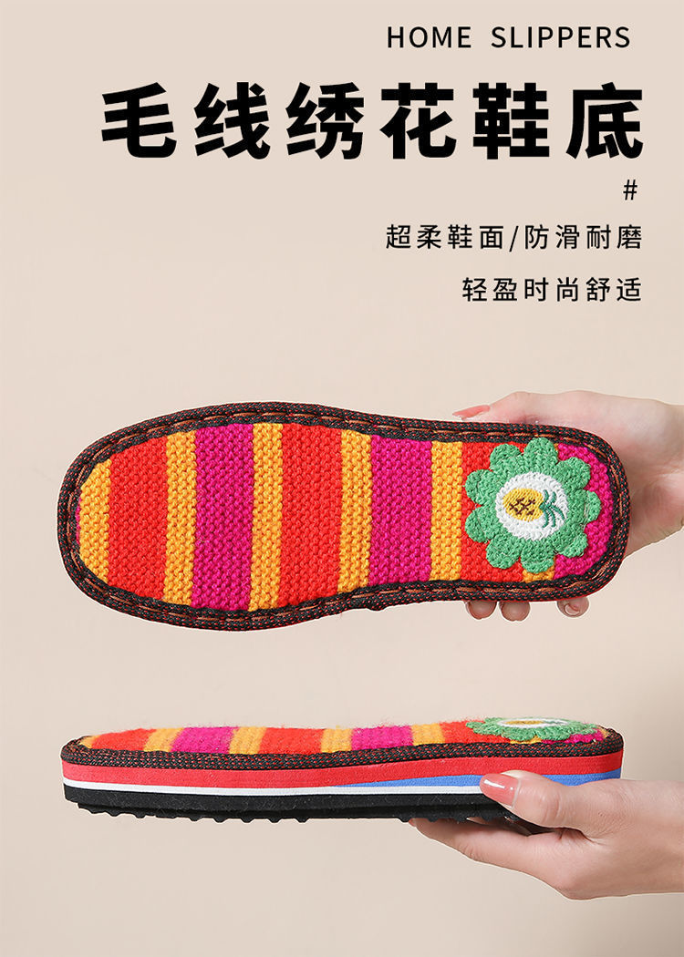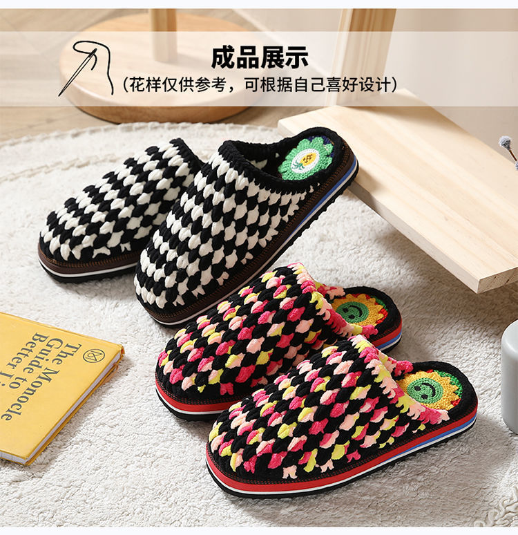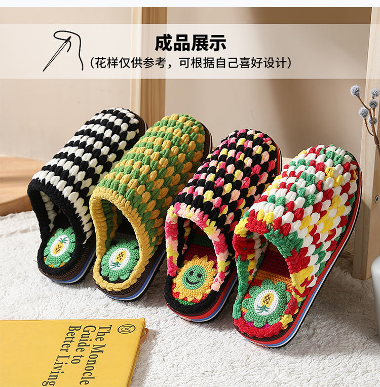 新款毛线绣花底秋冬款DIY手工编织毛线拖鞋居家保暖防滑勾鞋底