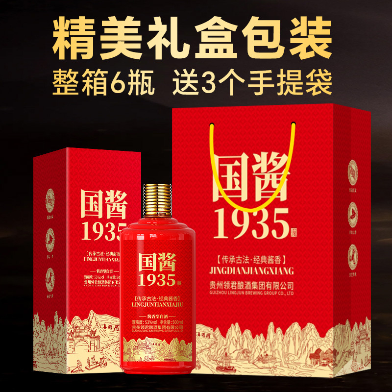 国酱1935整箱批发礼盒套装酱香型53度贵州茅台镇白酒整箱喜宴白酒