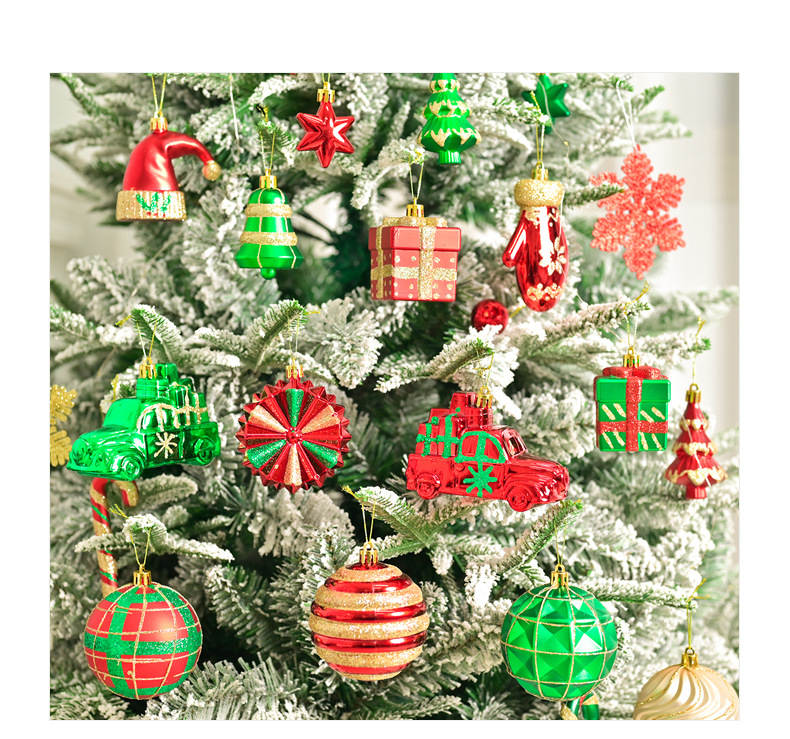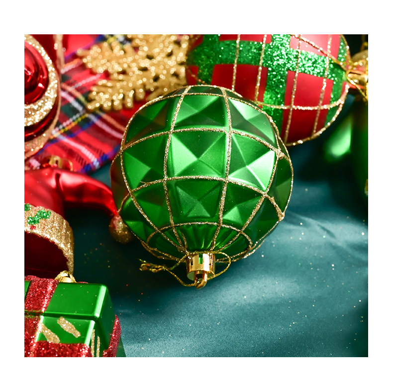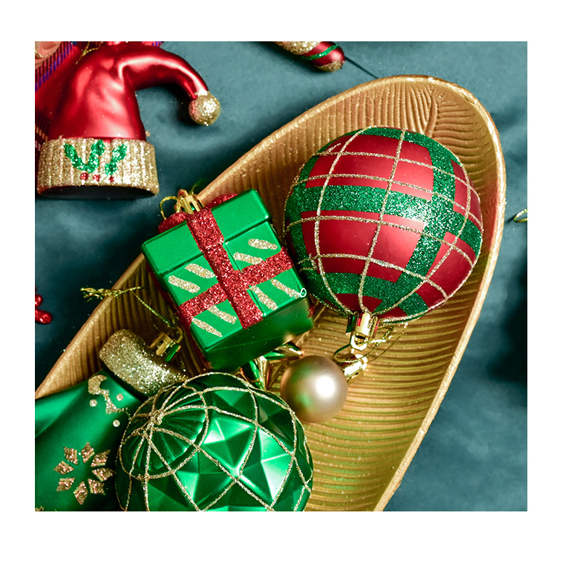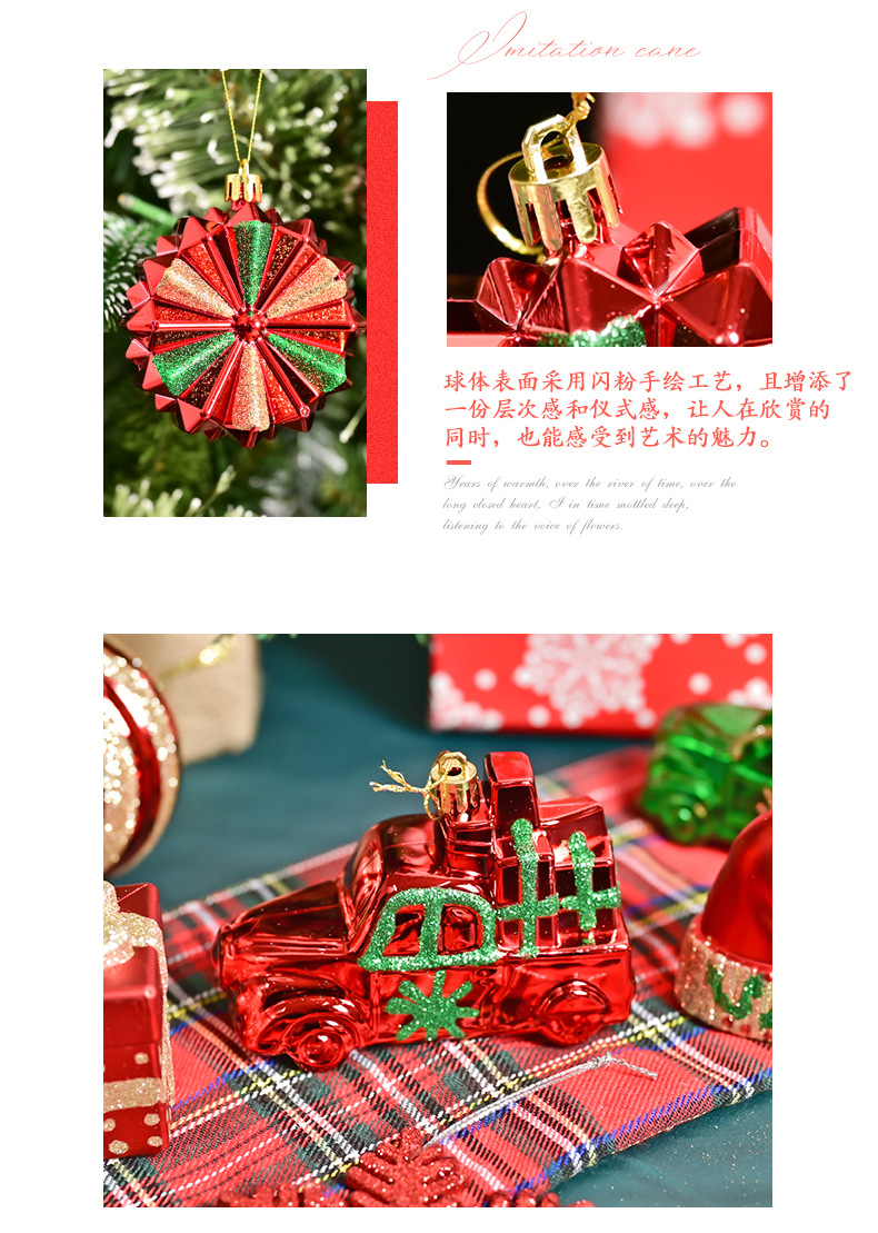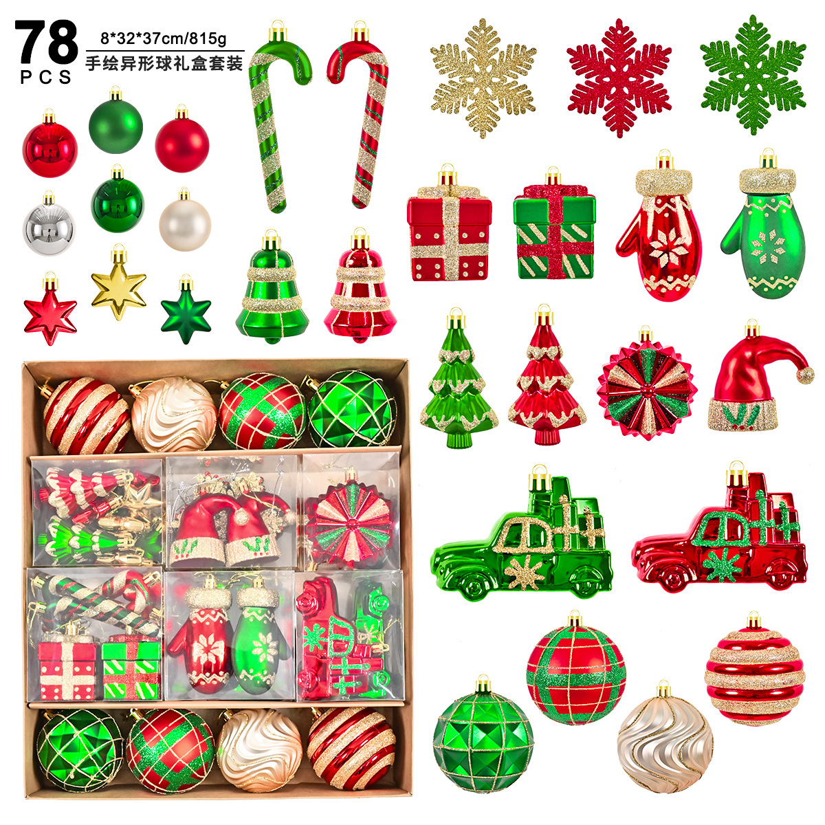 跨境热销78PCS圣诞装饰品礼盒异形手绘塑料球圣诞树挂饰挂件