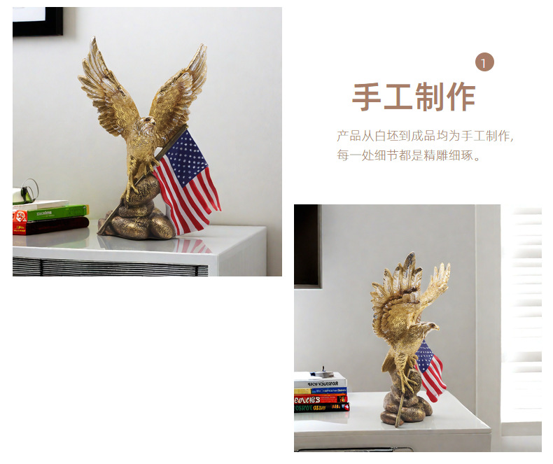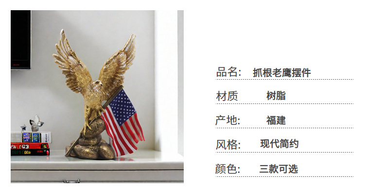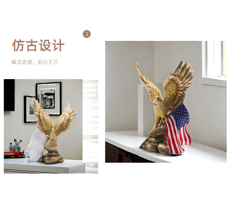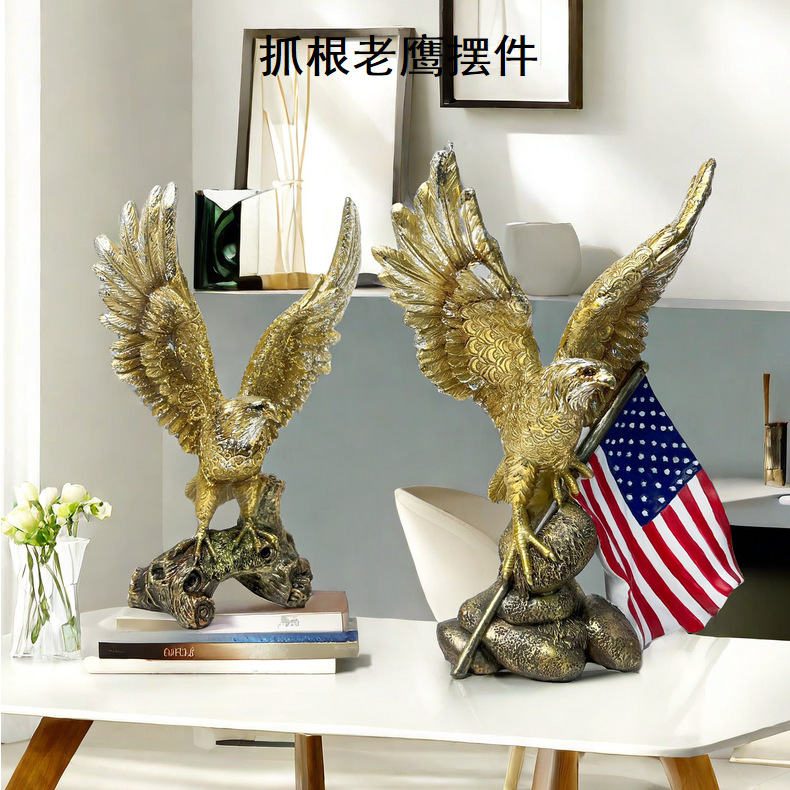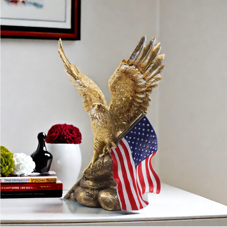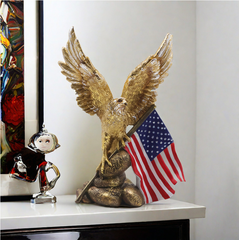 跨境新品美国国旗老鹰摆件客厅家居树脂工艺品样板房装饰乔迁礼物