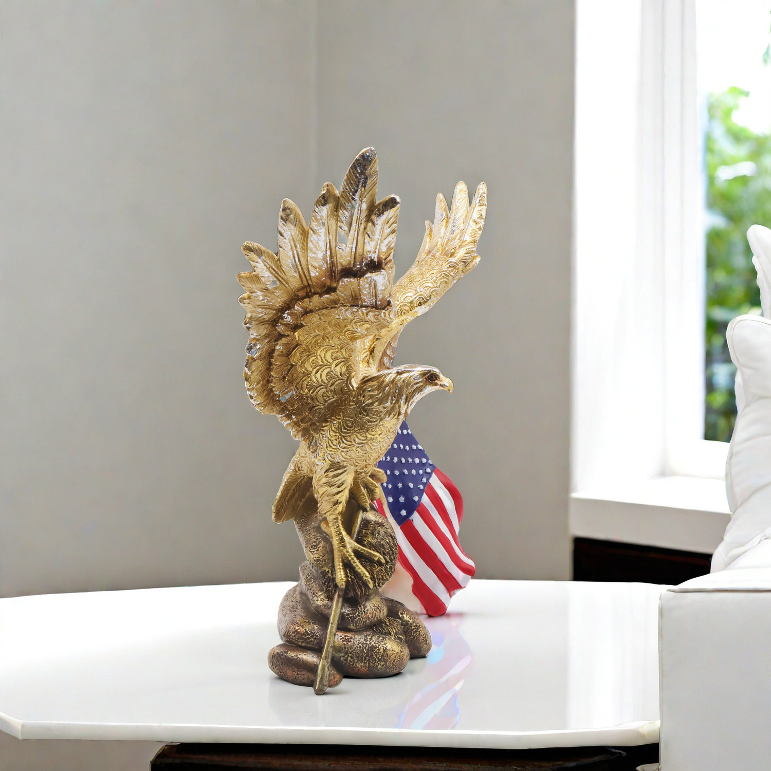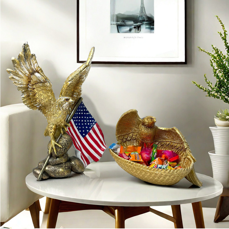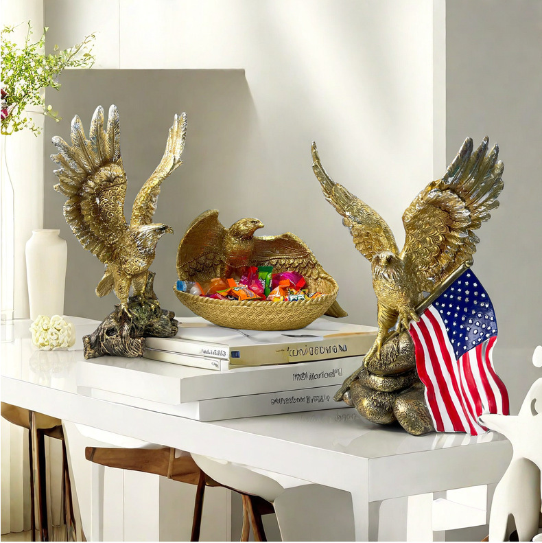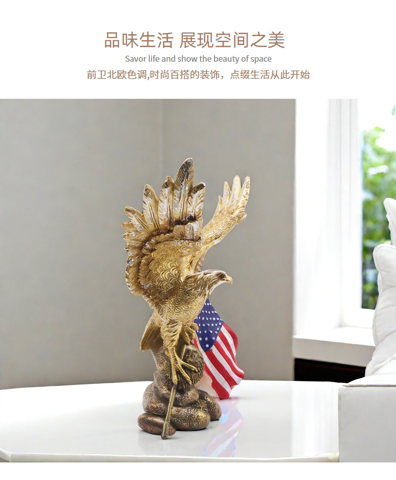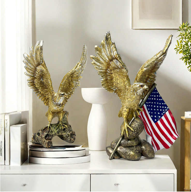 跨境新品美国国旗老鹰摆件客厅家居树脂工艺品样板房装饰乔迁礼物