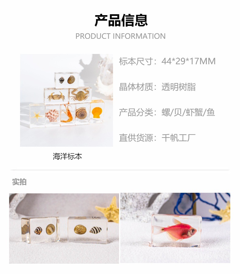 真实贝壳海洋标本热带鱼水晶创意桌面树脂工艺品摆摊小礼品玩具