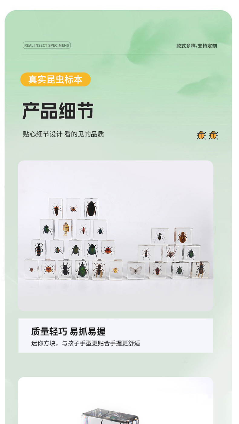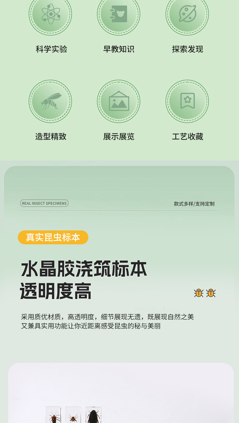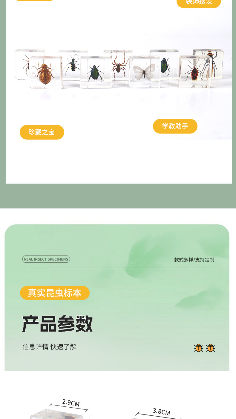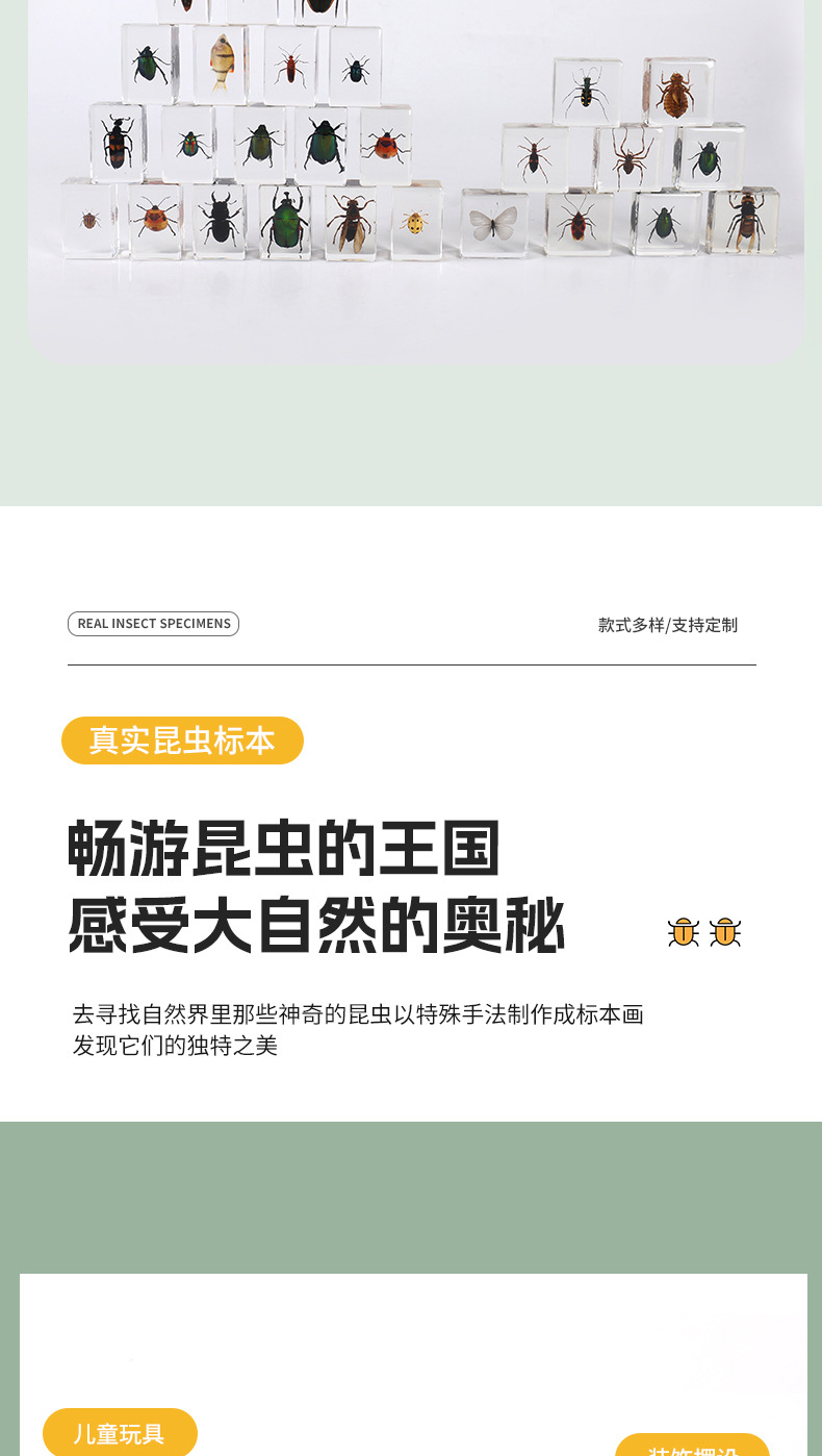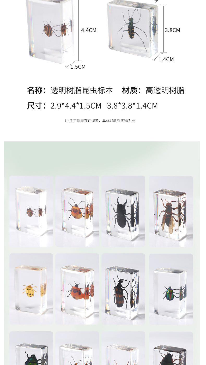 透明树脂真实昆虫标本工艺科普教学文创玩具个性家居装饰小摆件
