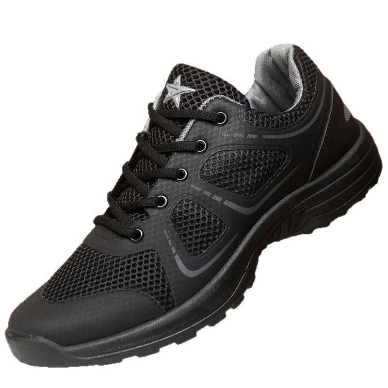 2025春夏款体能训练鞋圆头低帮网面透气黑色系带户外运动鞋登山鞋